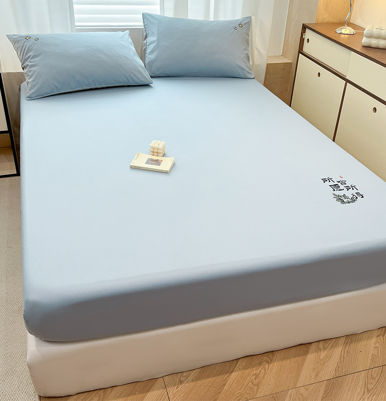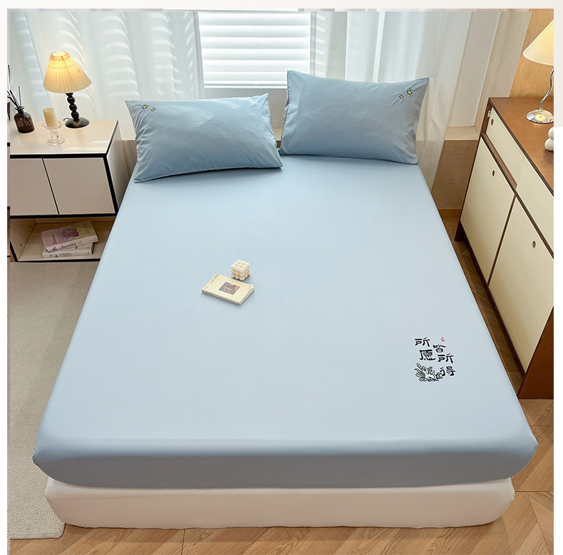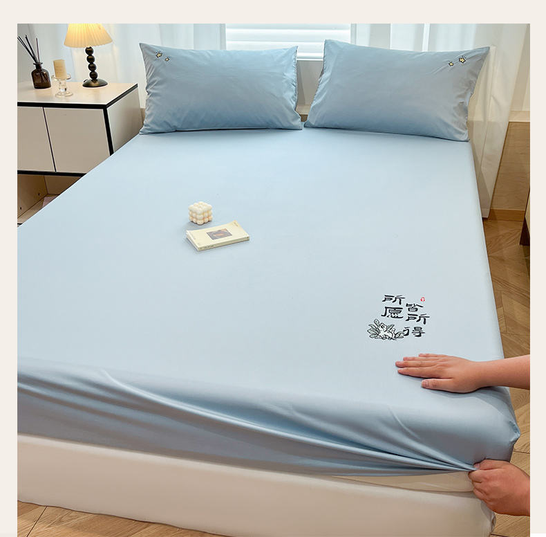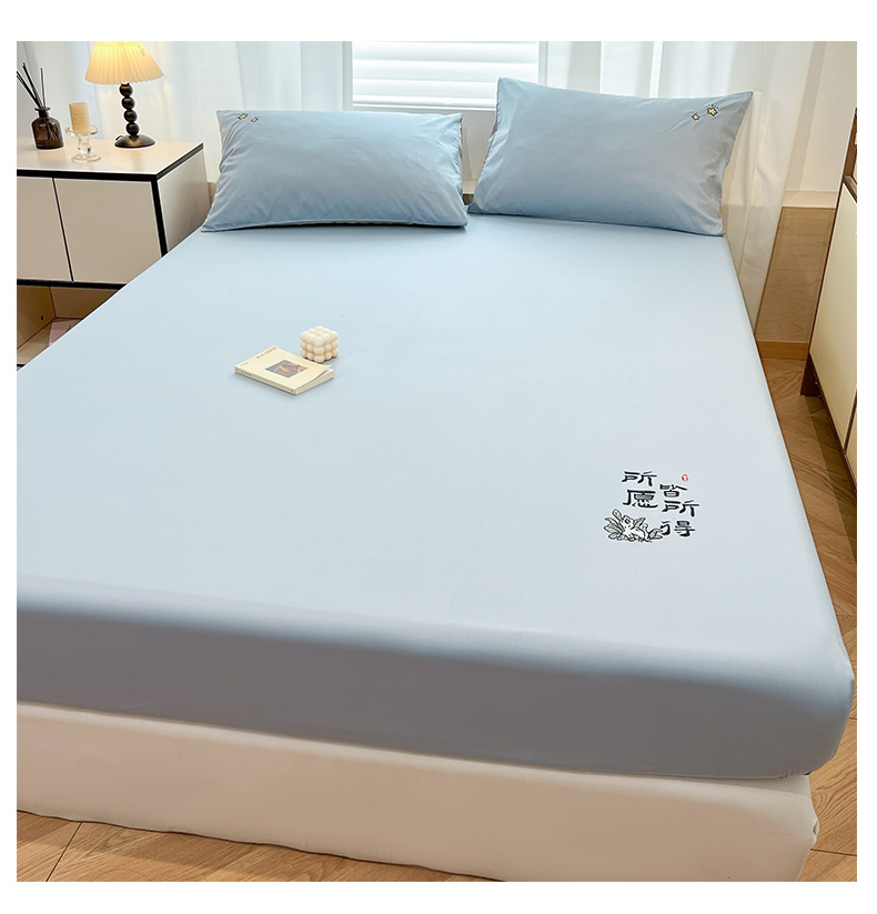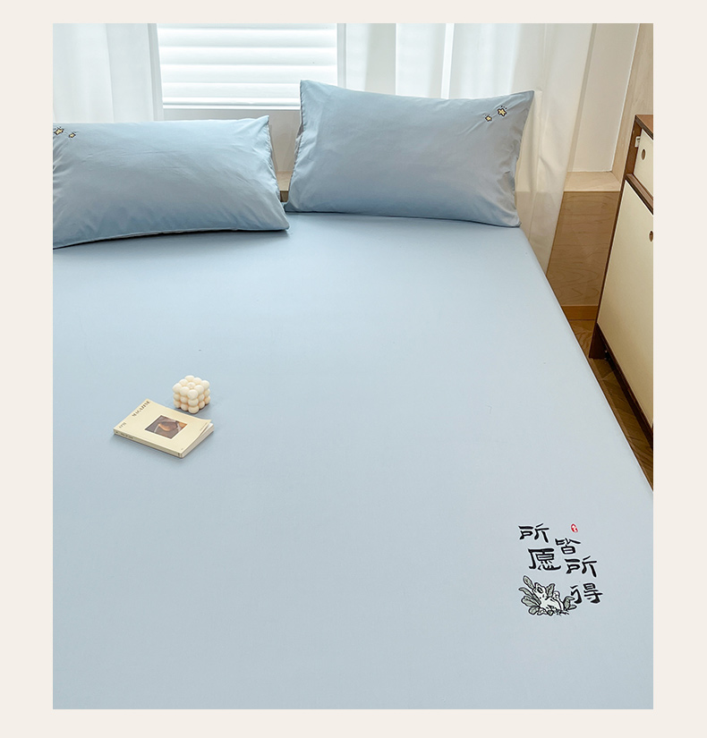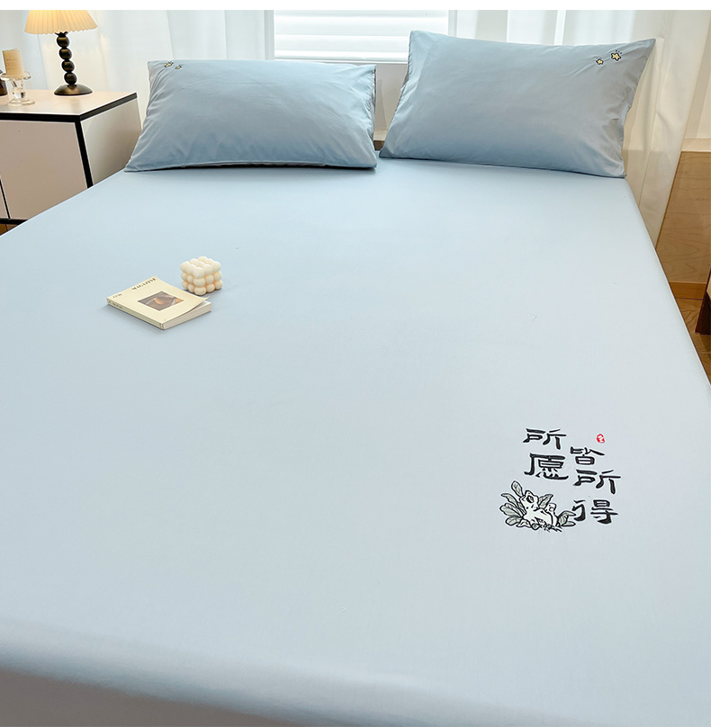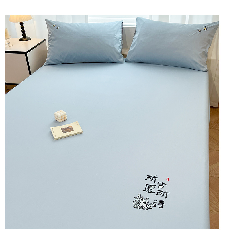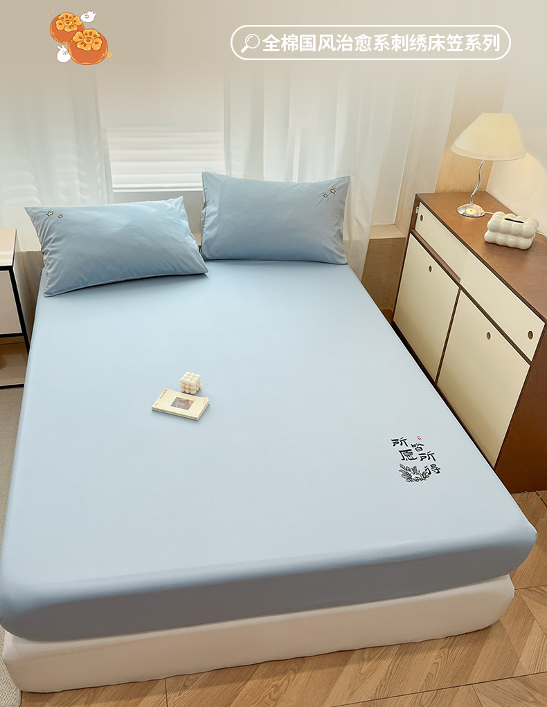 泽西家纺+V17798841158发大图 2026新品A类13376治愈系国风刺绣纯棉床笠全棉床笠枕套三件套 国风-水雾蓝