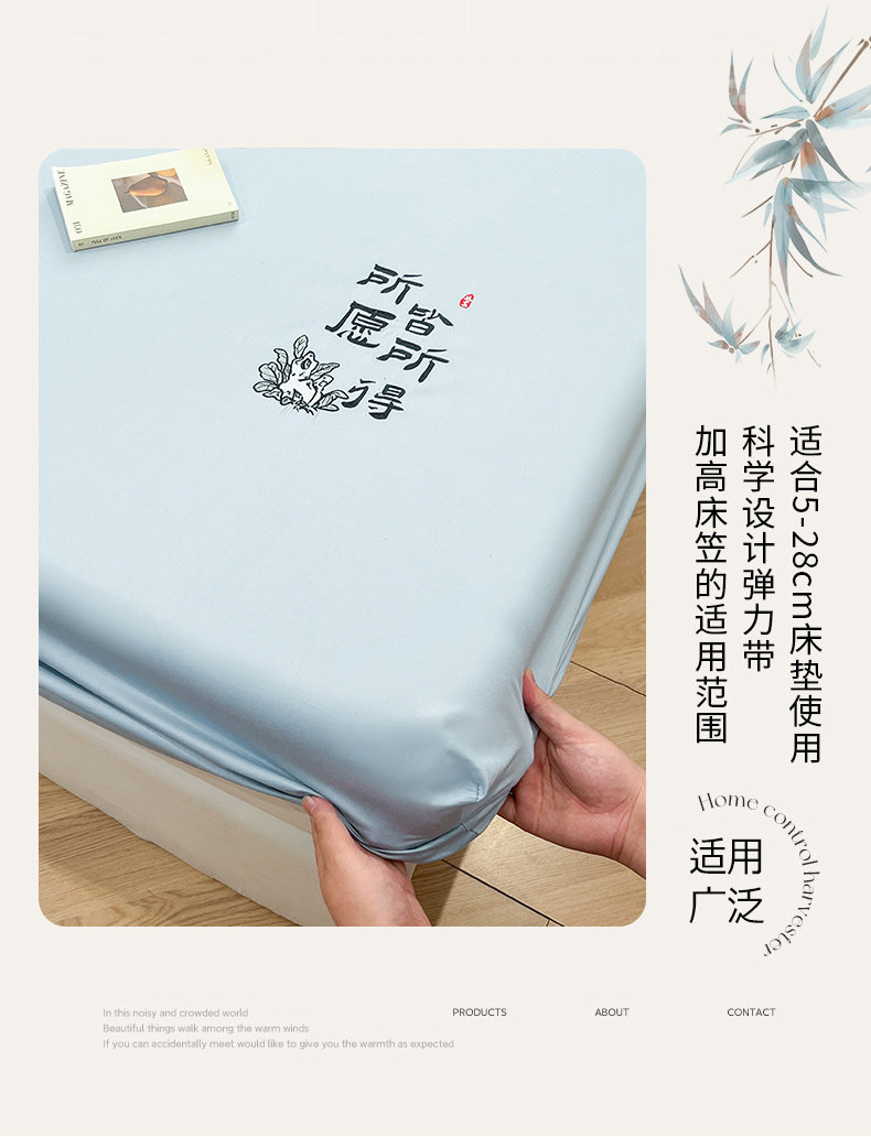 • 91家纺网 家纺一手货源 找家纺 泽西家纺+V17798841158发大图 2026新品A类13376治愈系国风刺绣纯棉床笠全棉床笠枕套三件套 国风-水雾蓝