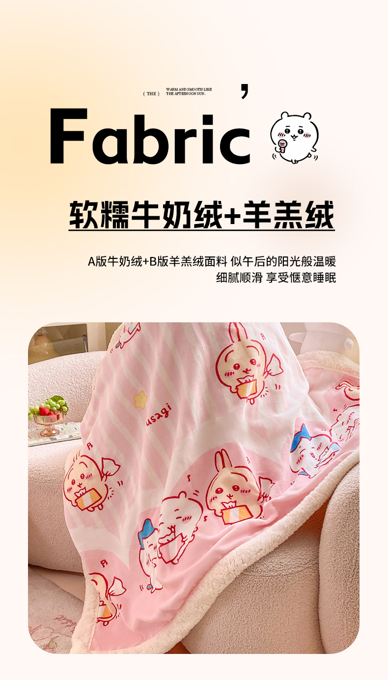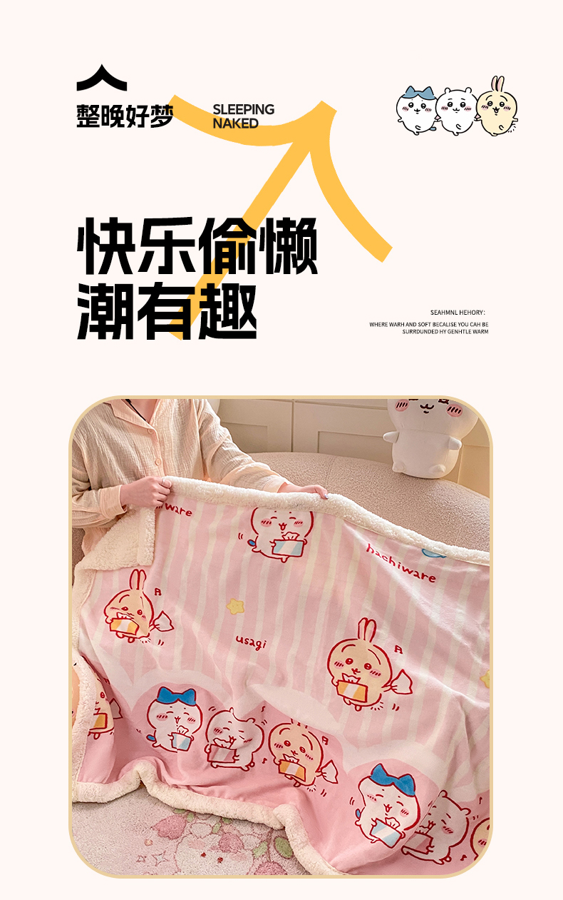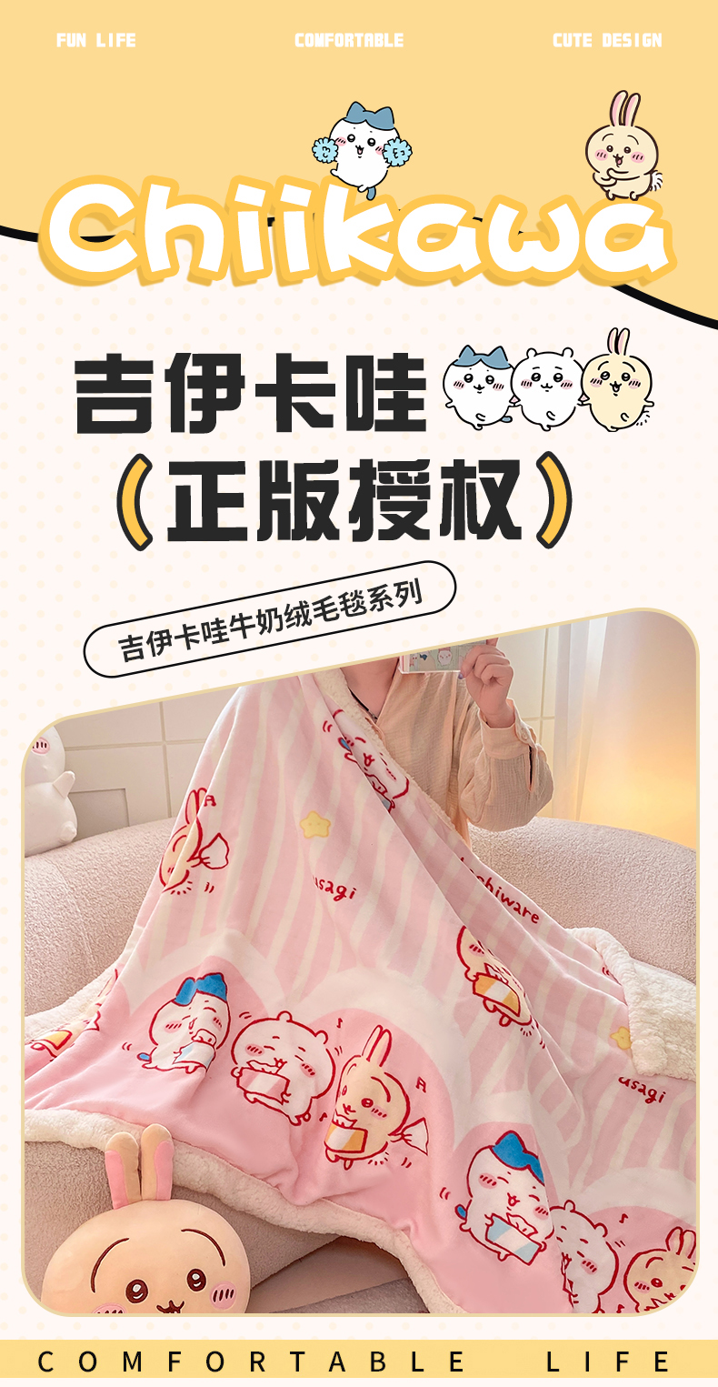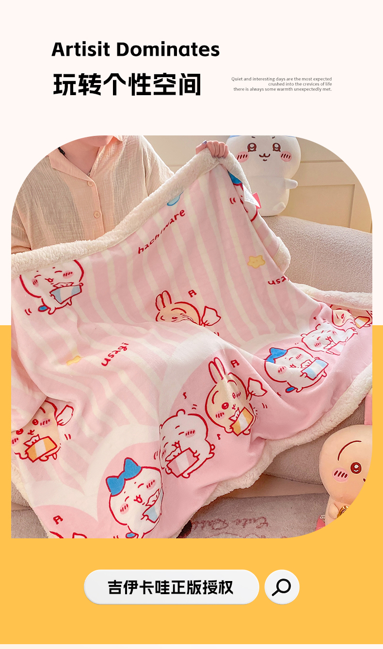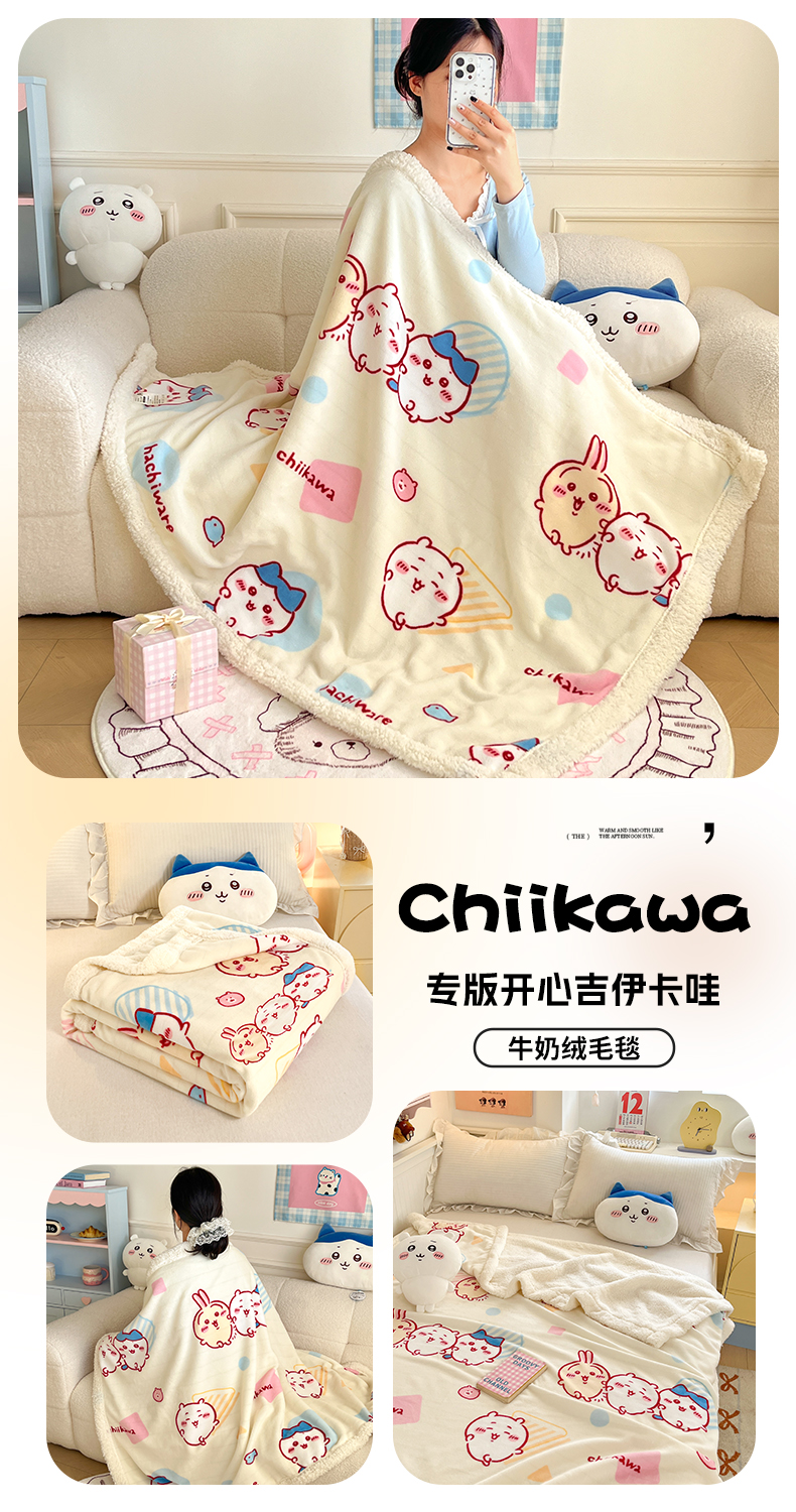 (总)博雅 2025新款吉伊卡哇正版授权高克重牛奶绒羊羔绒毛毯-开心吉伊卡哇,开心吉伊卡哇(含标)