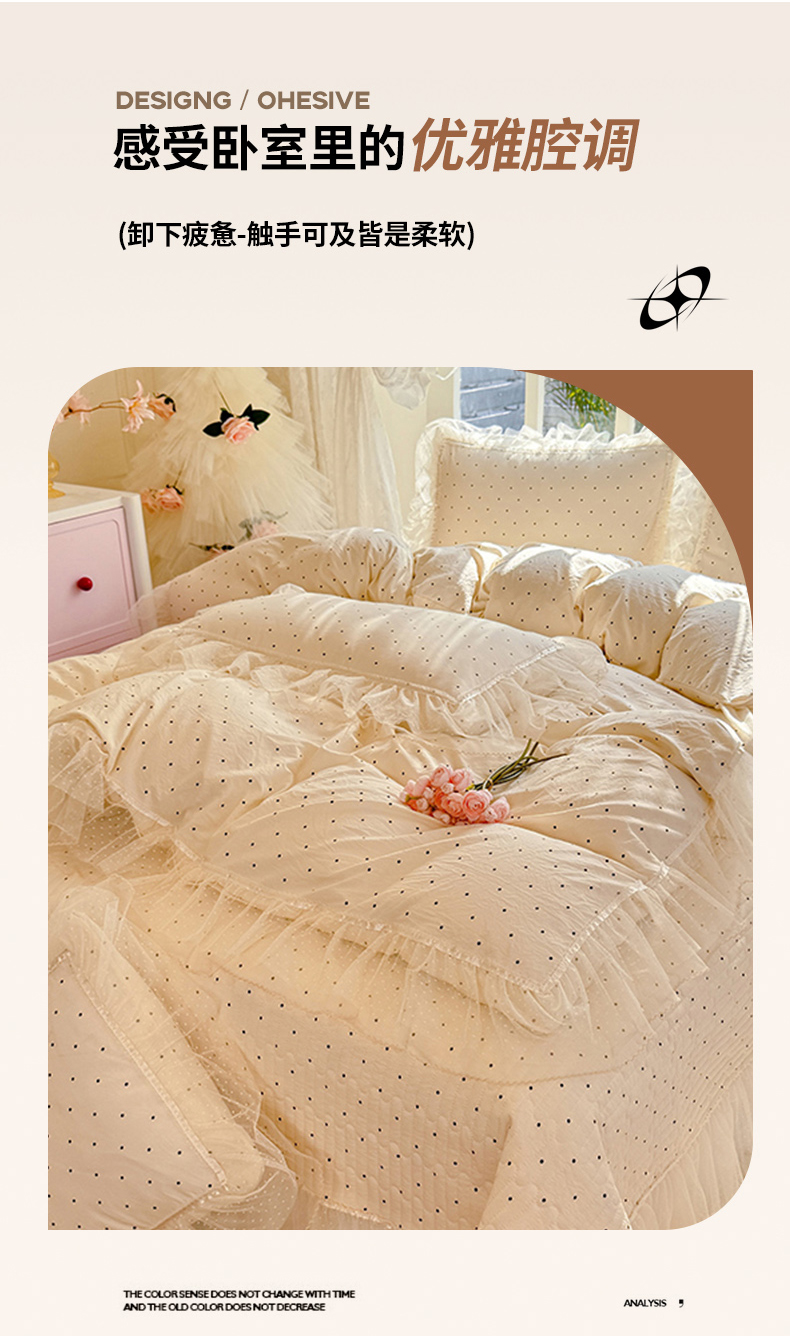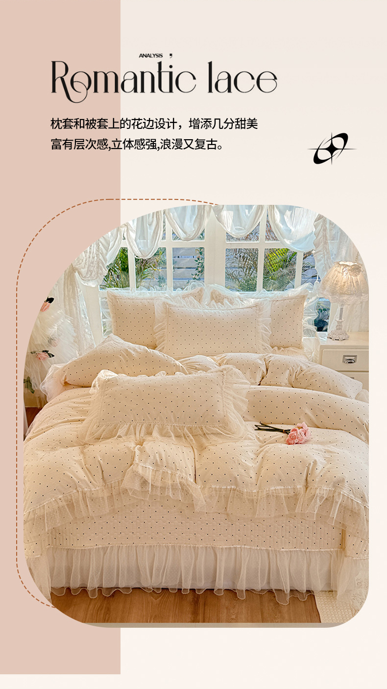当前位置: 91家纺网 > 商品网购 > 床品套件 > 四件套 > 其它四件套 > 韩约家纺 2026新款法式双层蕾丝花边古法棉感四件套 浅浅