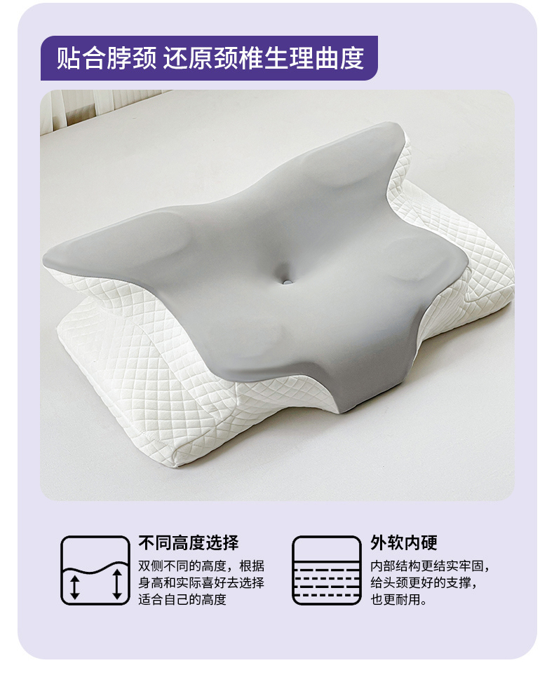 森一洋记忆棉 2025新款跨境支撑性牛角枕飞机枕碟形枕枕头枕芯(量大价格可谈) 牛角枕-灰色