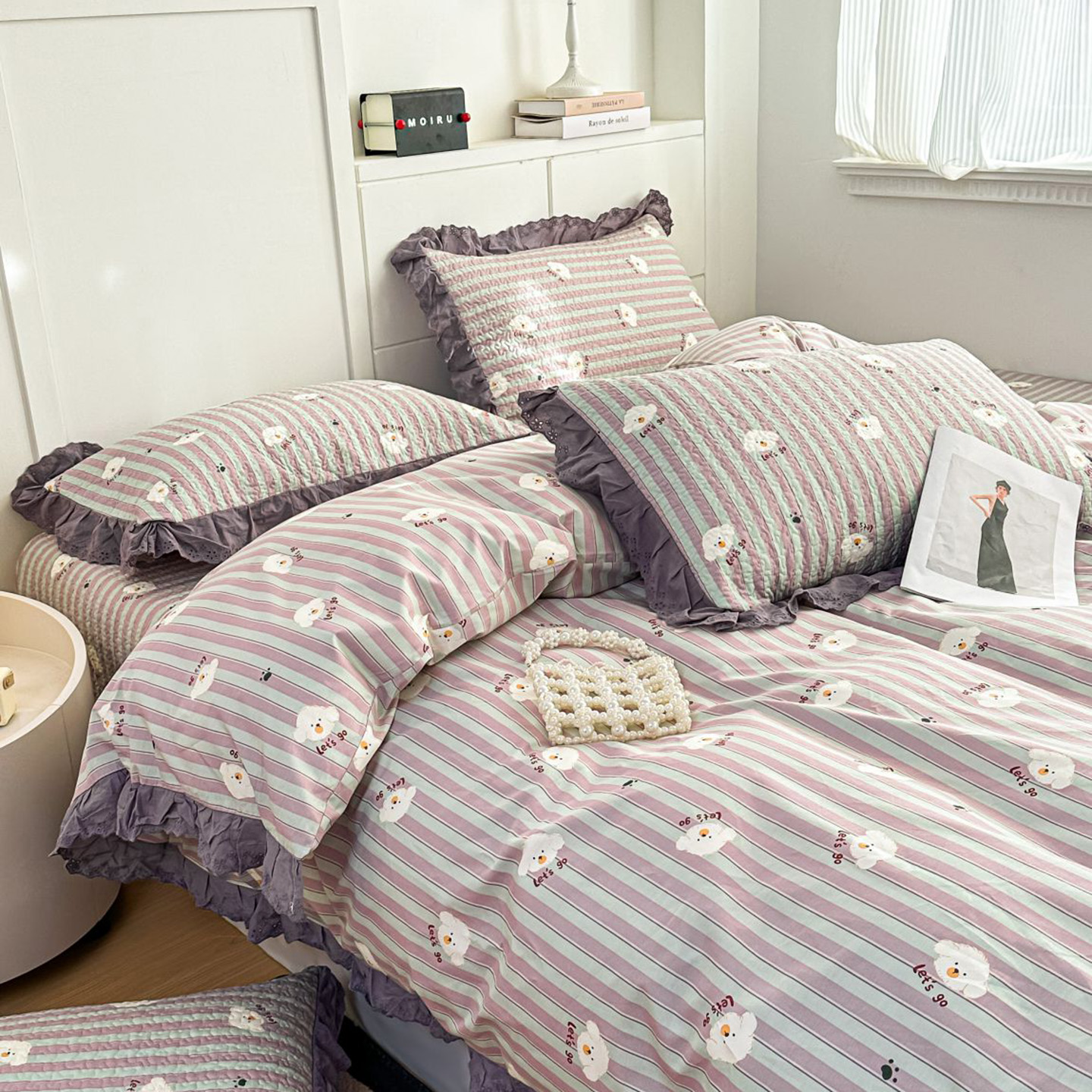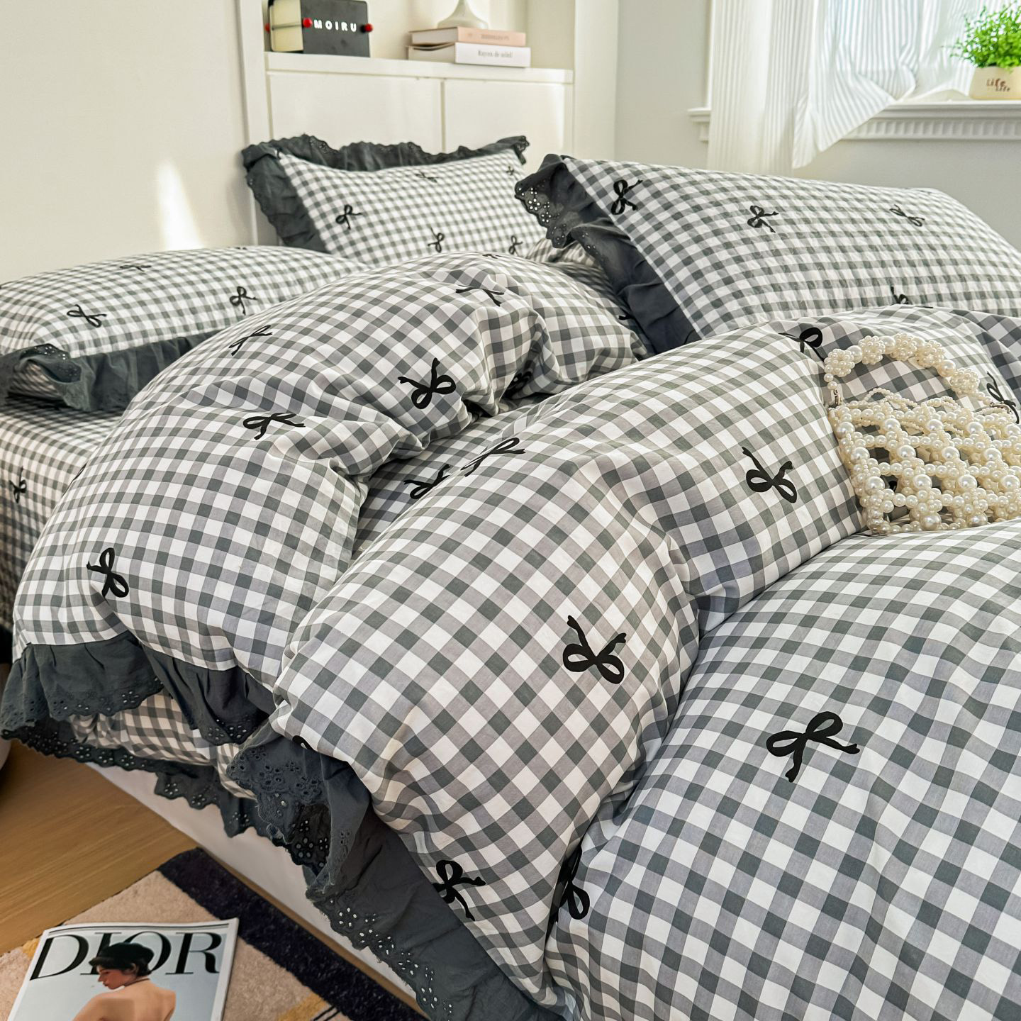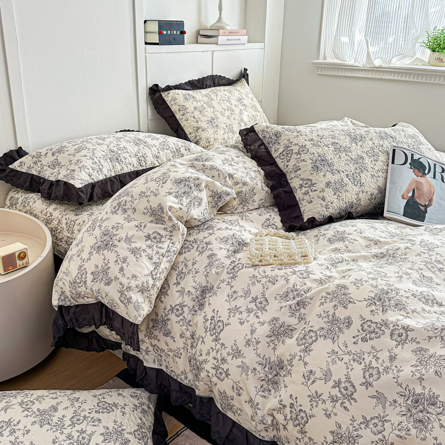 (总)暖居 2026新款支持定制法式花边纯棉榻榻米四件套全棉大炕盖三件套四季通用