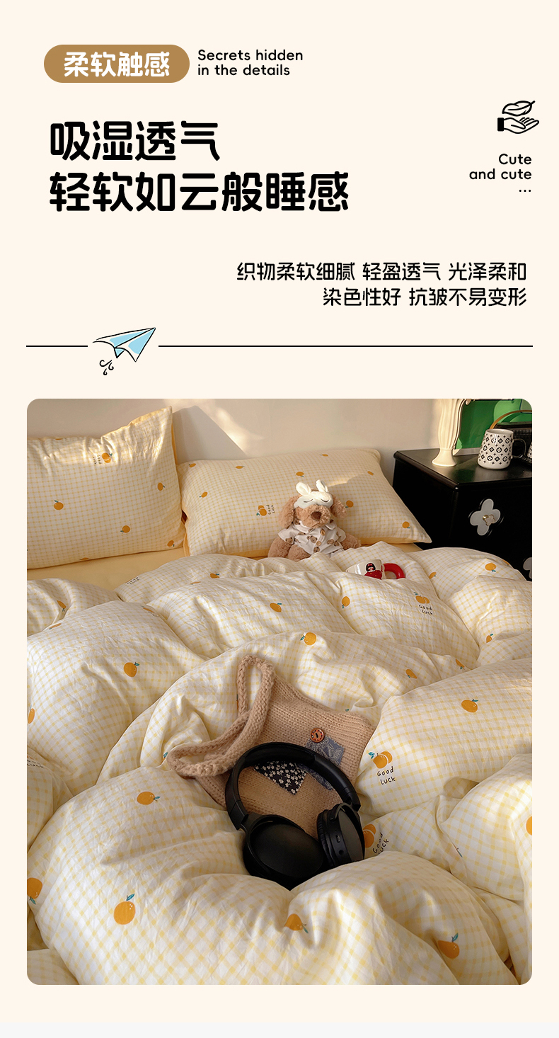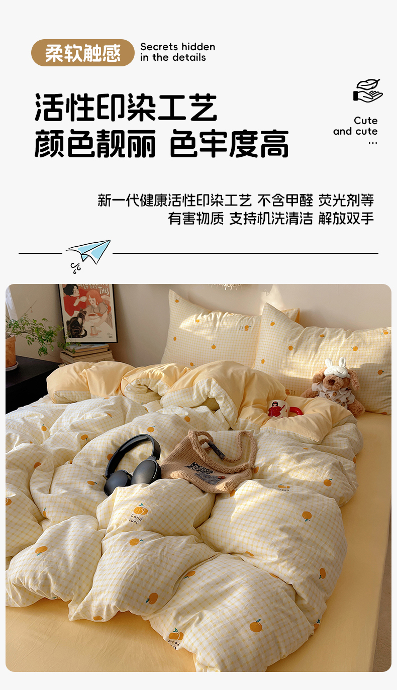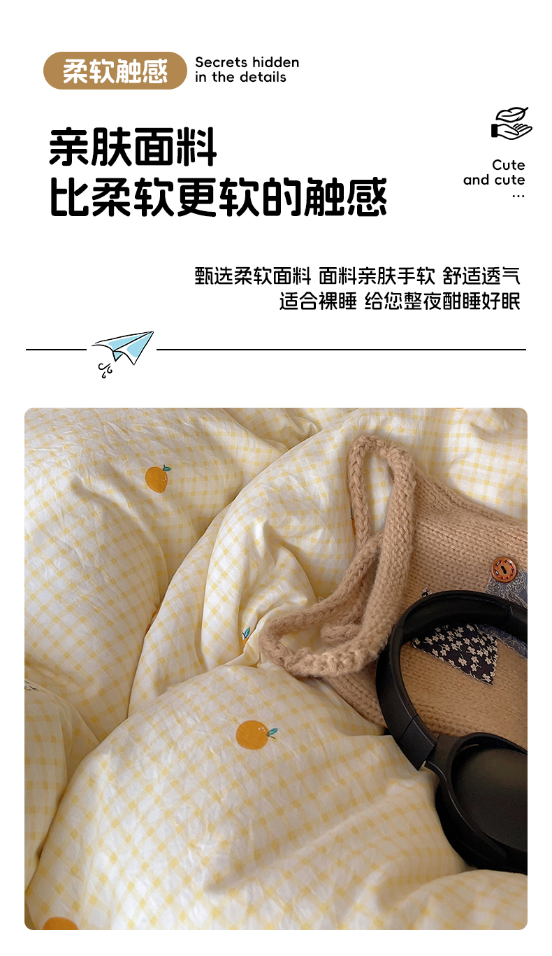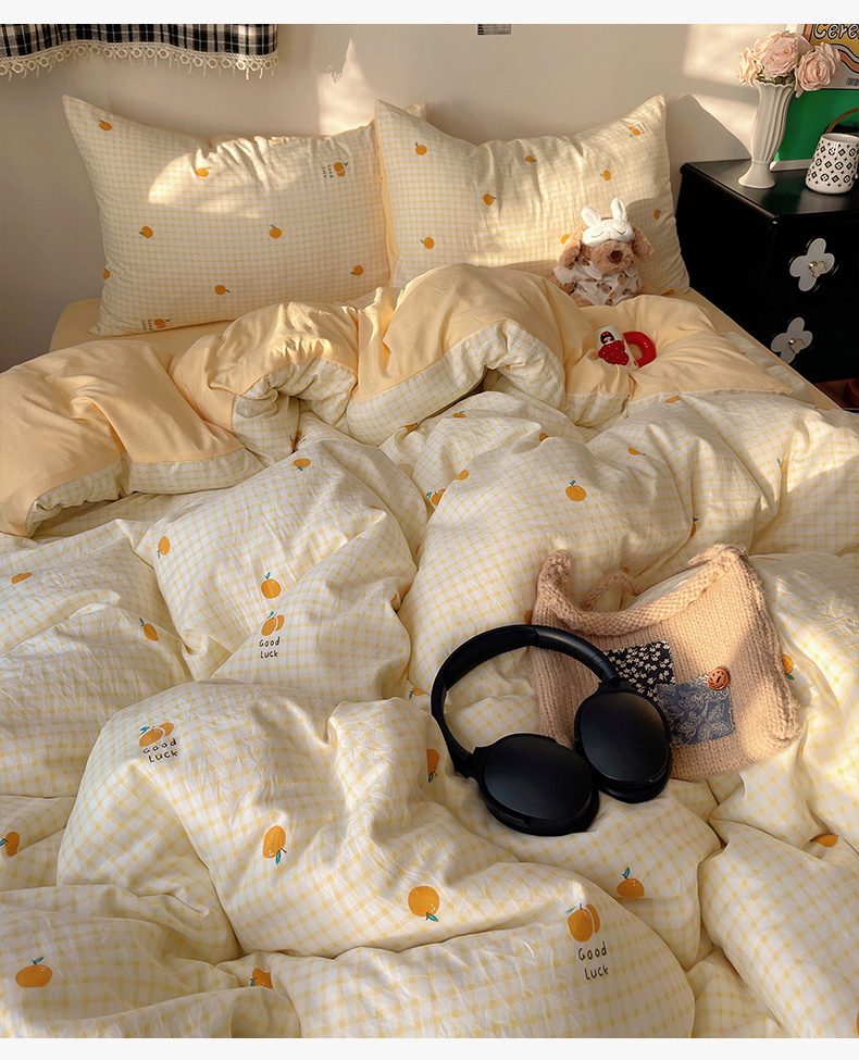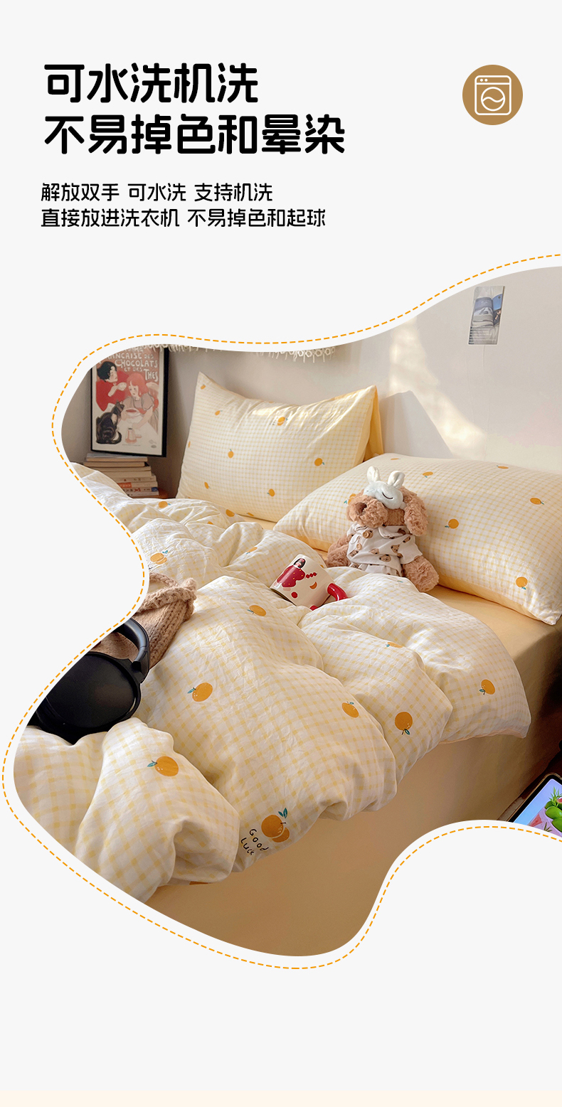 当前位置: 91家纺网 > 商品网购 > 床品套件 > 四件套 > 水洗棉四件套 > 沐芷 2026 【提供买家秀】A类软糯水洗棉四件套床上宿舍三件套床单被套 格子橘