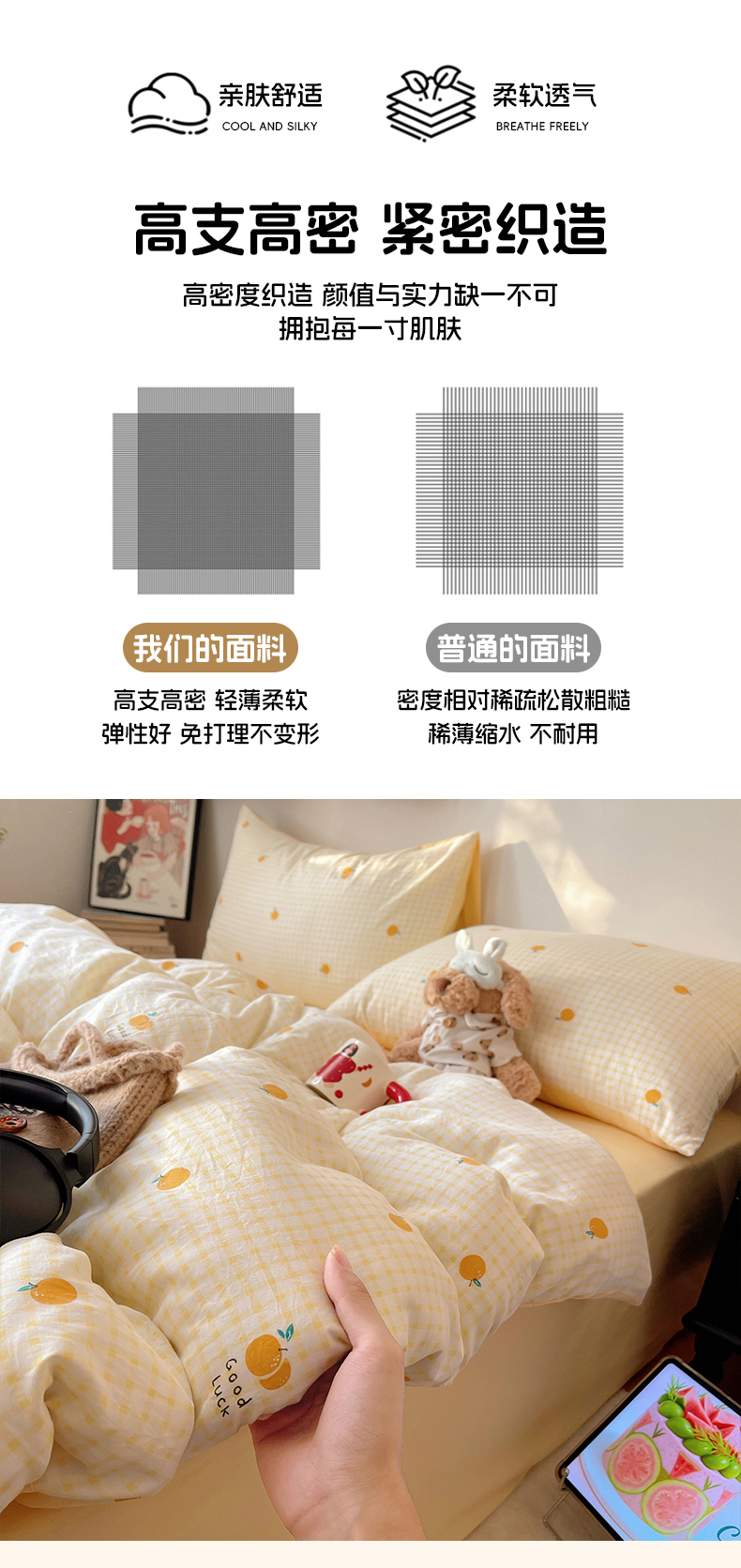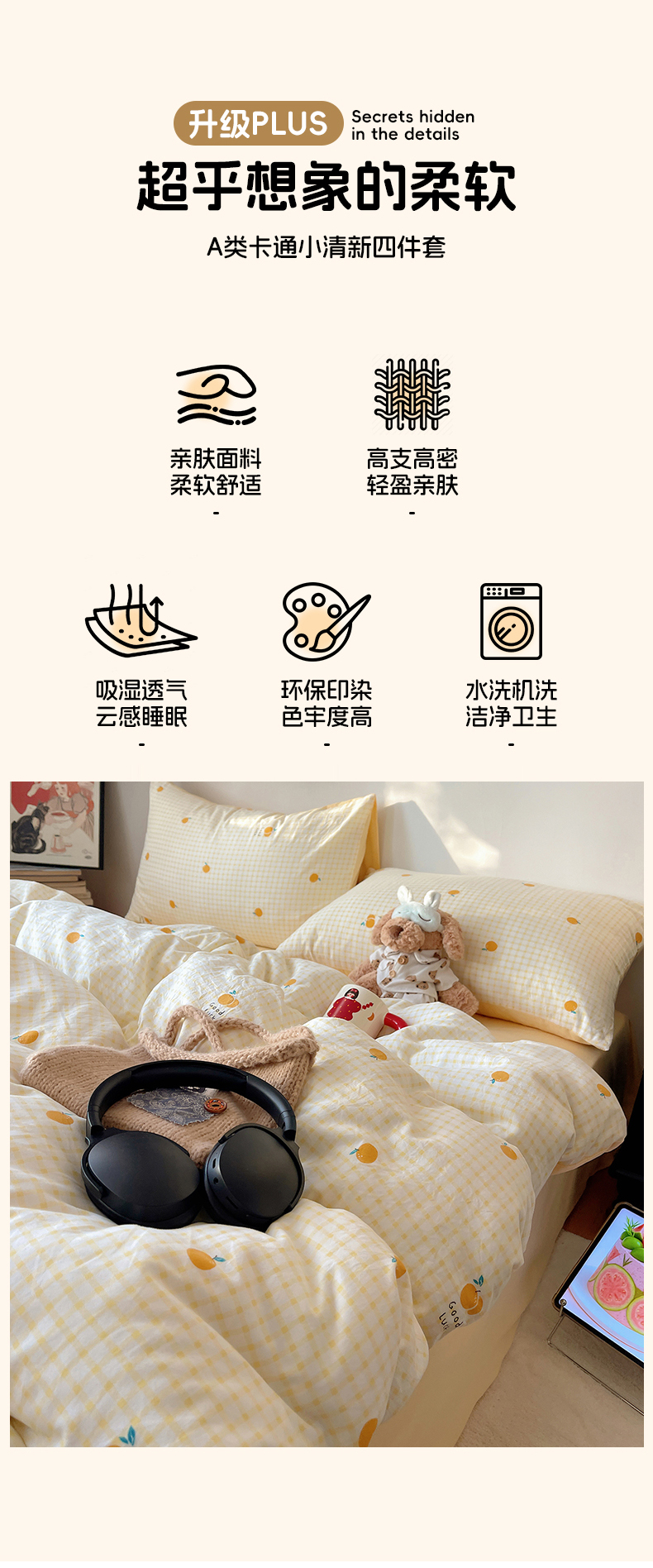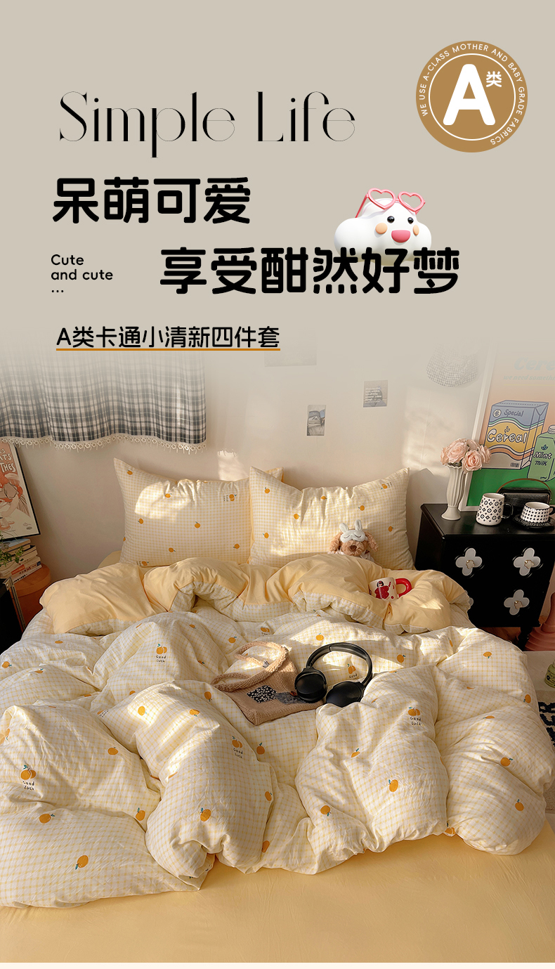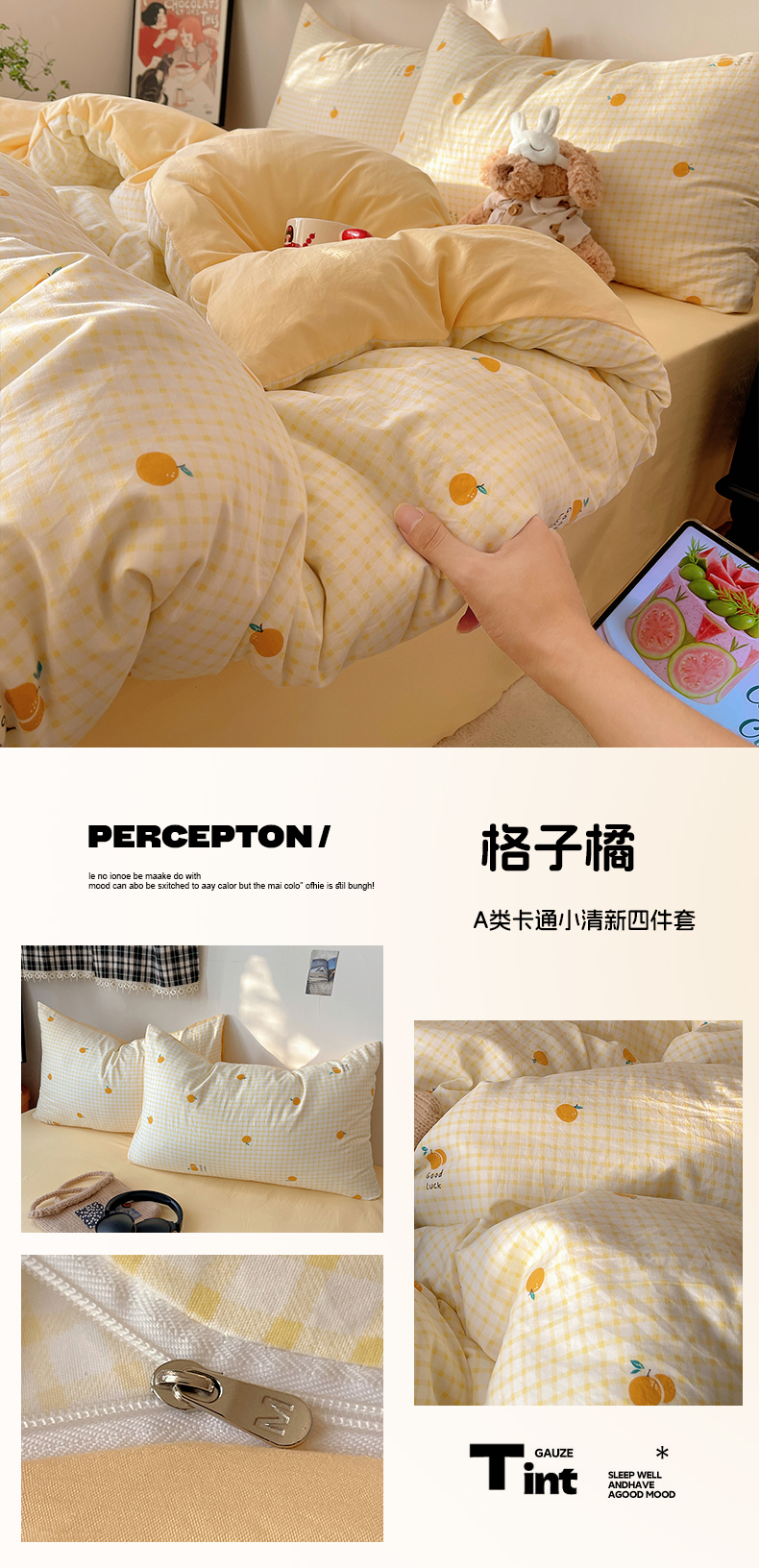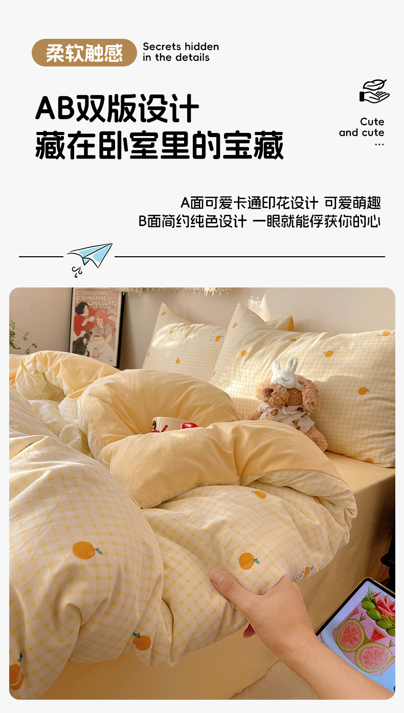 当前位置: 91家纺网 > 商品网购 > 床品套件 > 四件套 > 水洗棉四件套 > 沐芷 2026 【提供买家秀】A类软糯水洗棉四件套床上宿舍三件套床单被套 格子橘