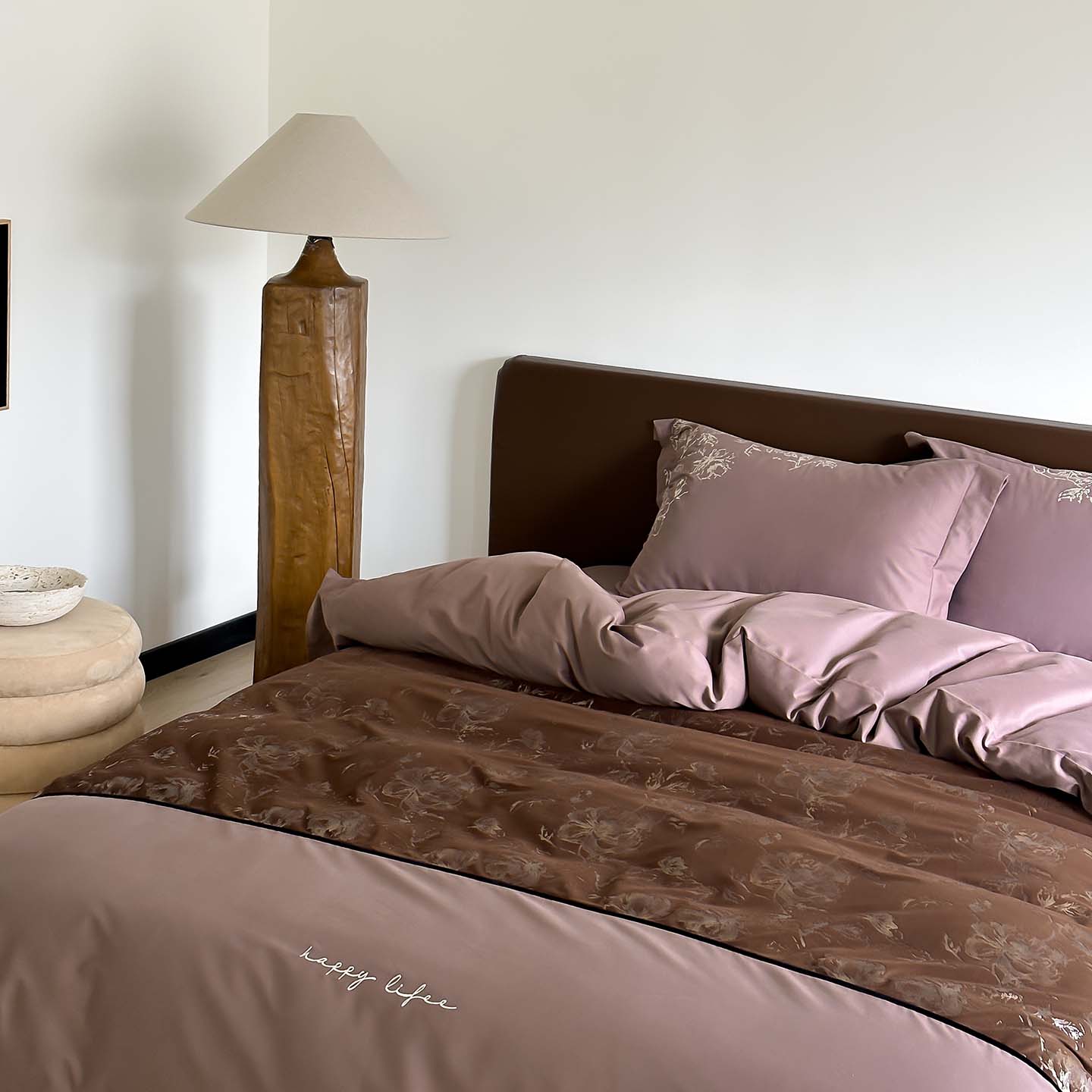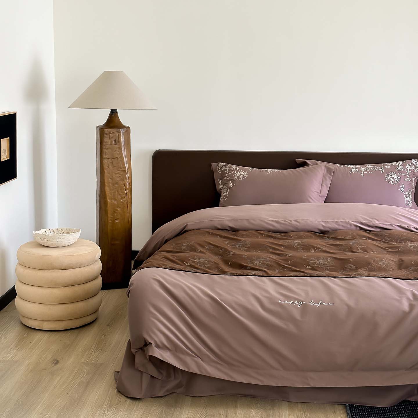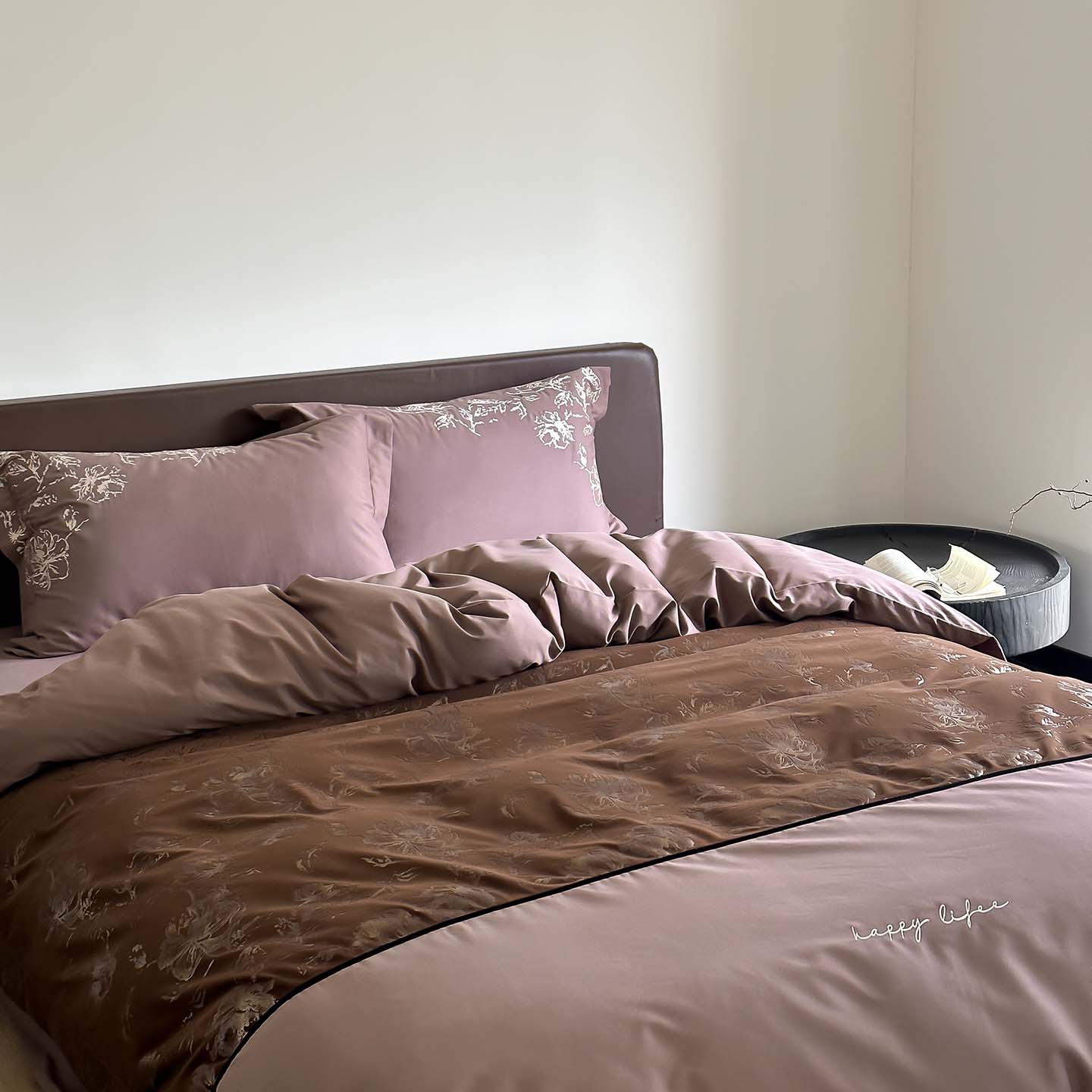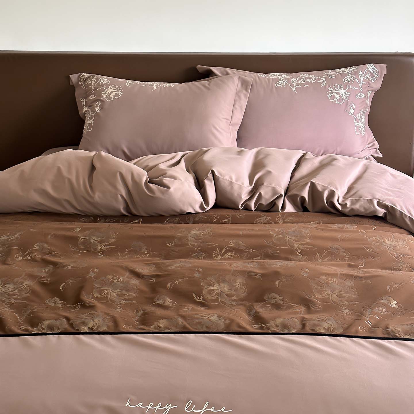 (总)赫帛 2026新款刺绣磨毛四件套-郁金香,郁金香-粉色,郁金香-棕色
