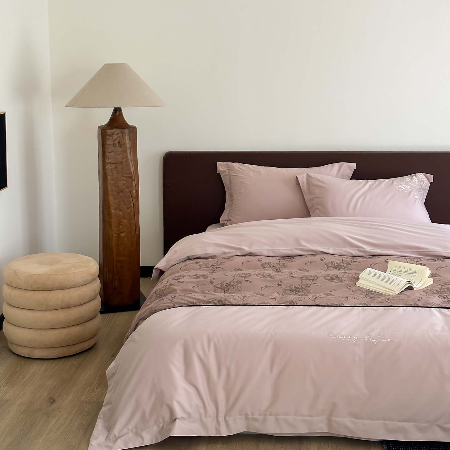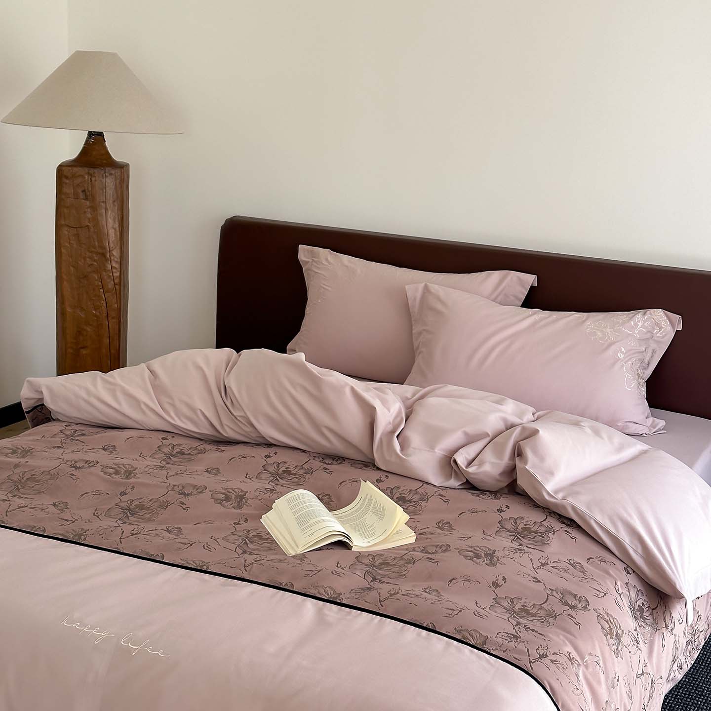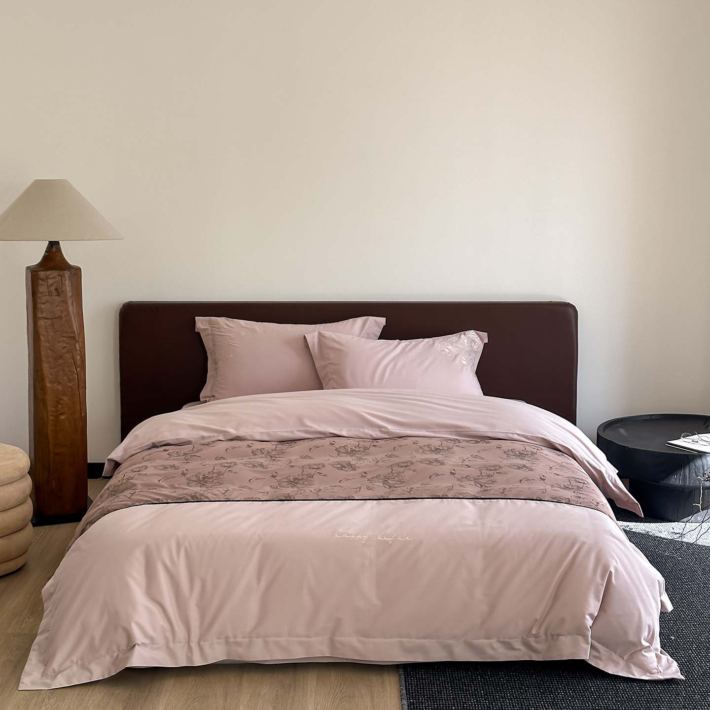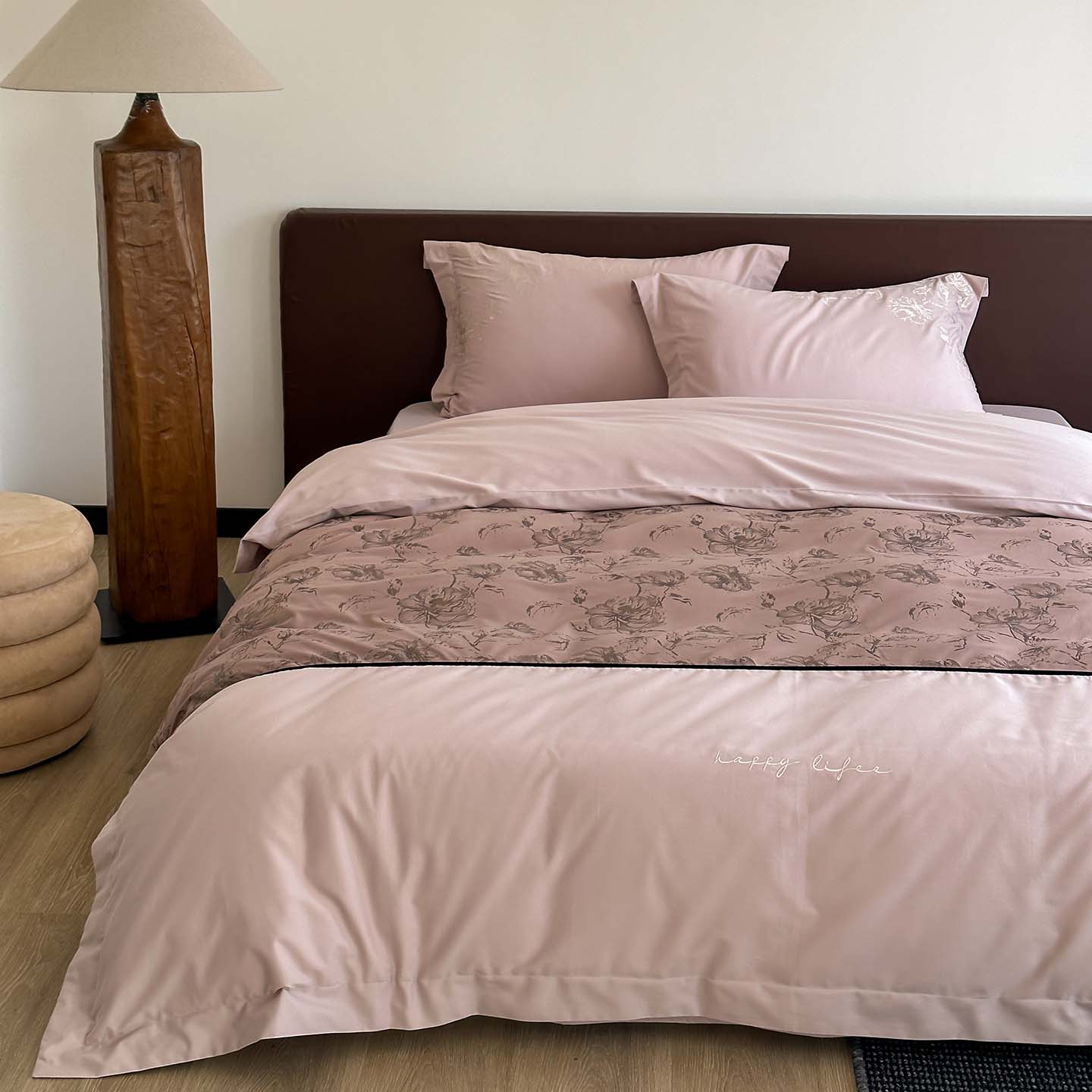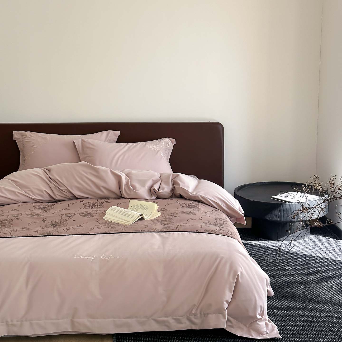 (总)赫帛 2026新款50s数码全棉轻磨毛四件套-暖叶,暖叶-粉色