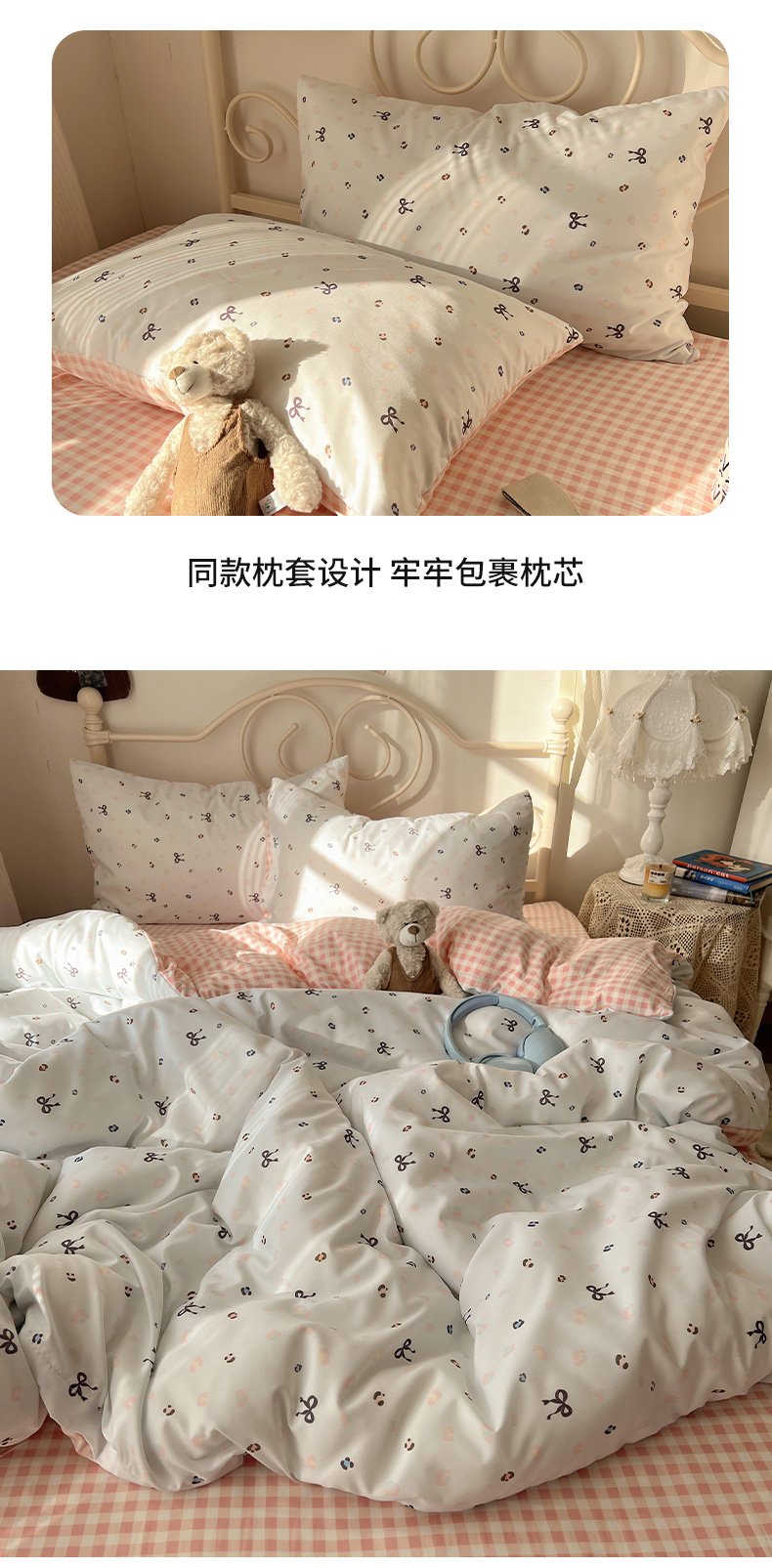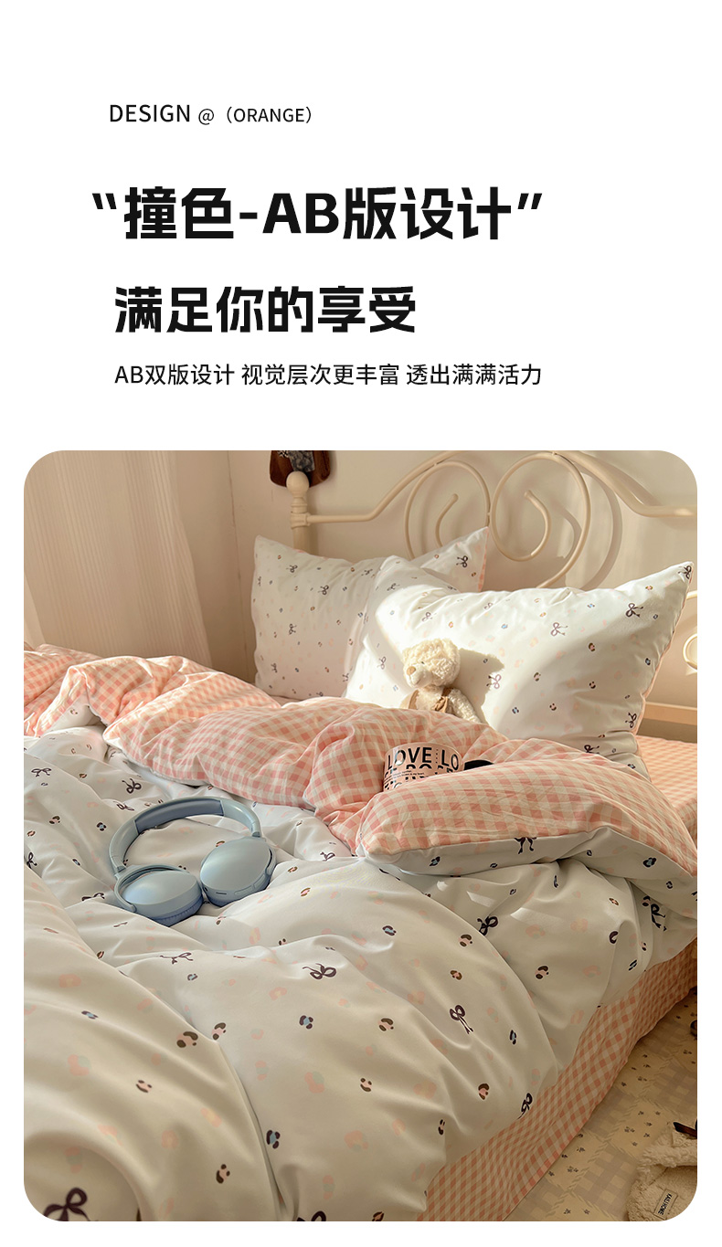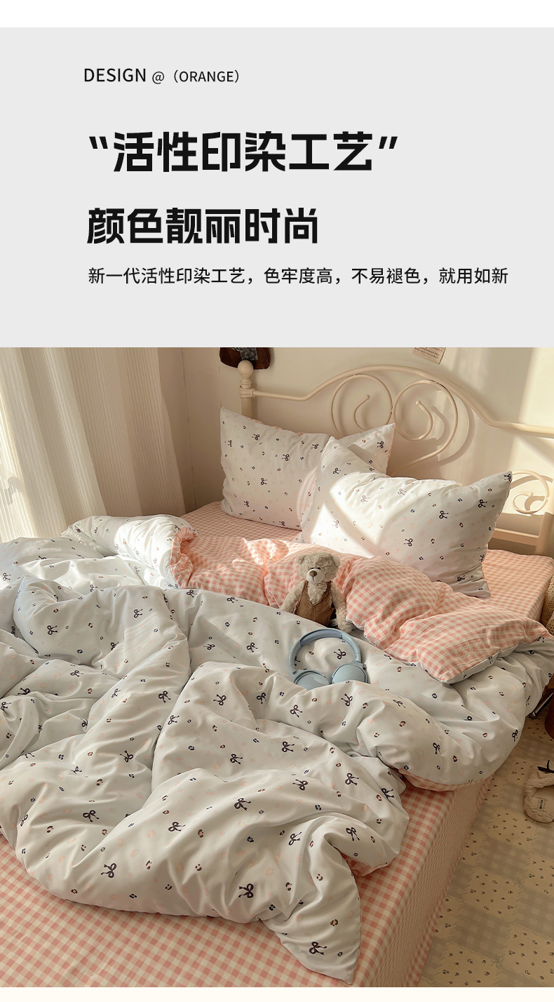当前位置: 91家纺网 > 商品网购 > 床品套件 > 四件套 > 水洗棉四件套 > 繁花家居 2026简单款水洗棉四件套学生床三件套 粉格小豹纹