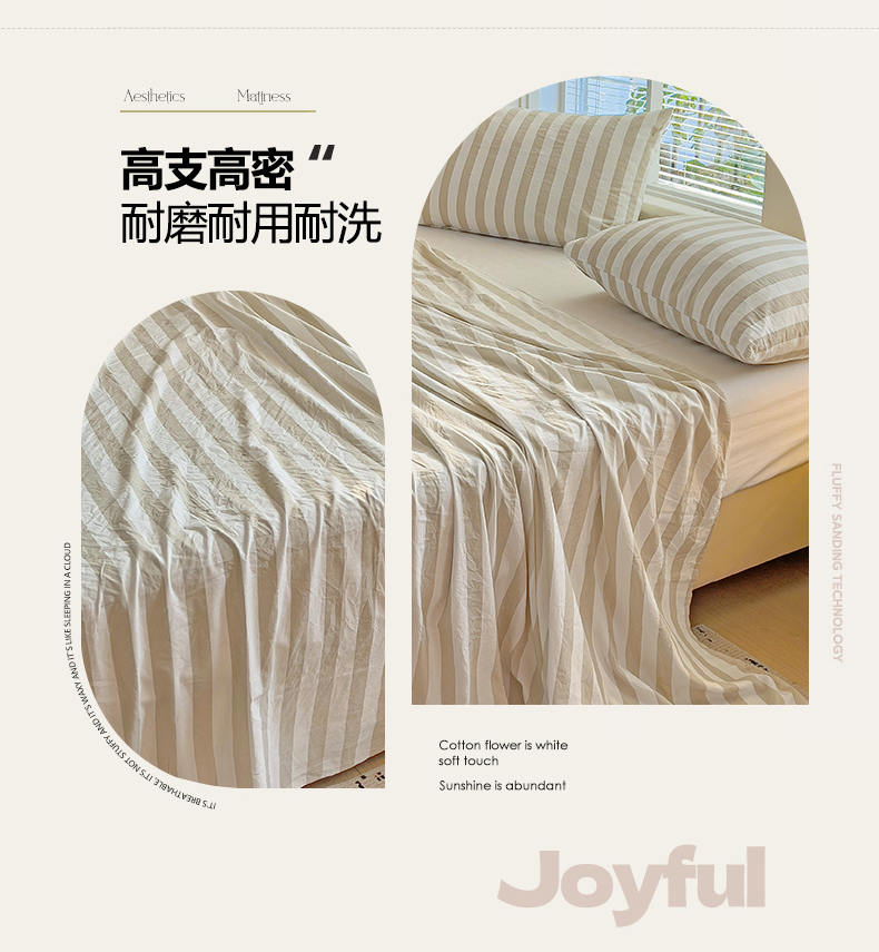 商品名称:爱彼家纺 2026春夏新款中条床单水洗棉亲肤柔软床单三件套-条纹系列一 奶咖中条