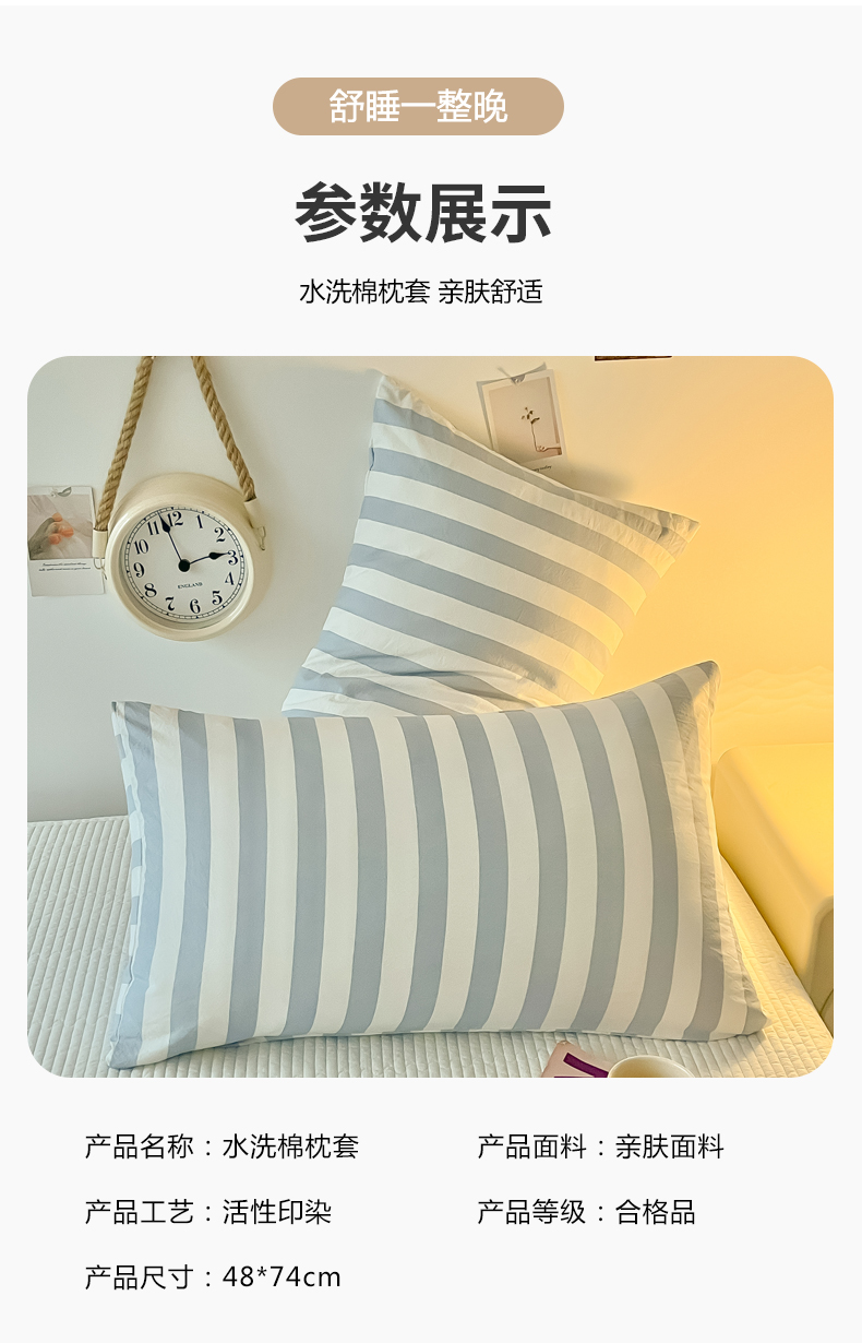 爱彼家纺 2026新款条纹系列中条枕套一只一对装亲肤柔软-春夏新品 水洗棉条纹青绿