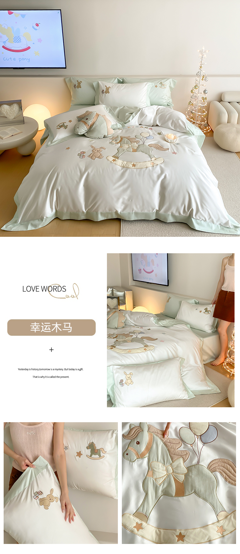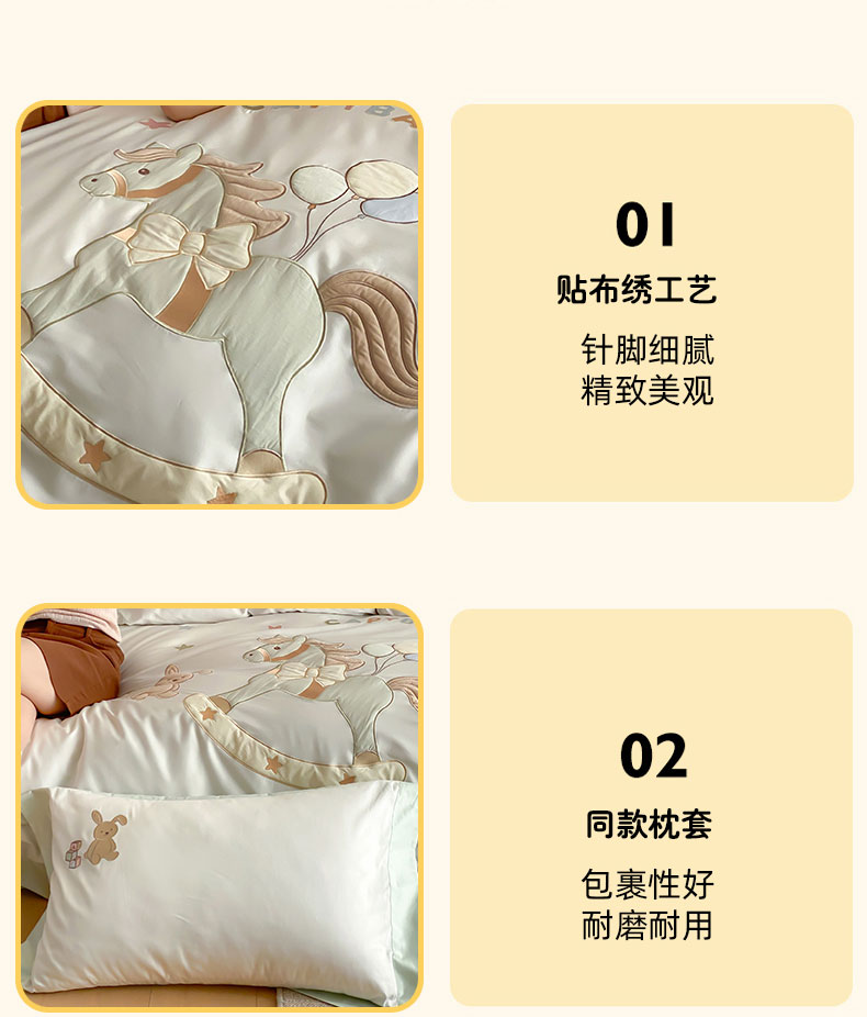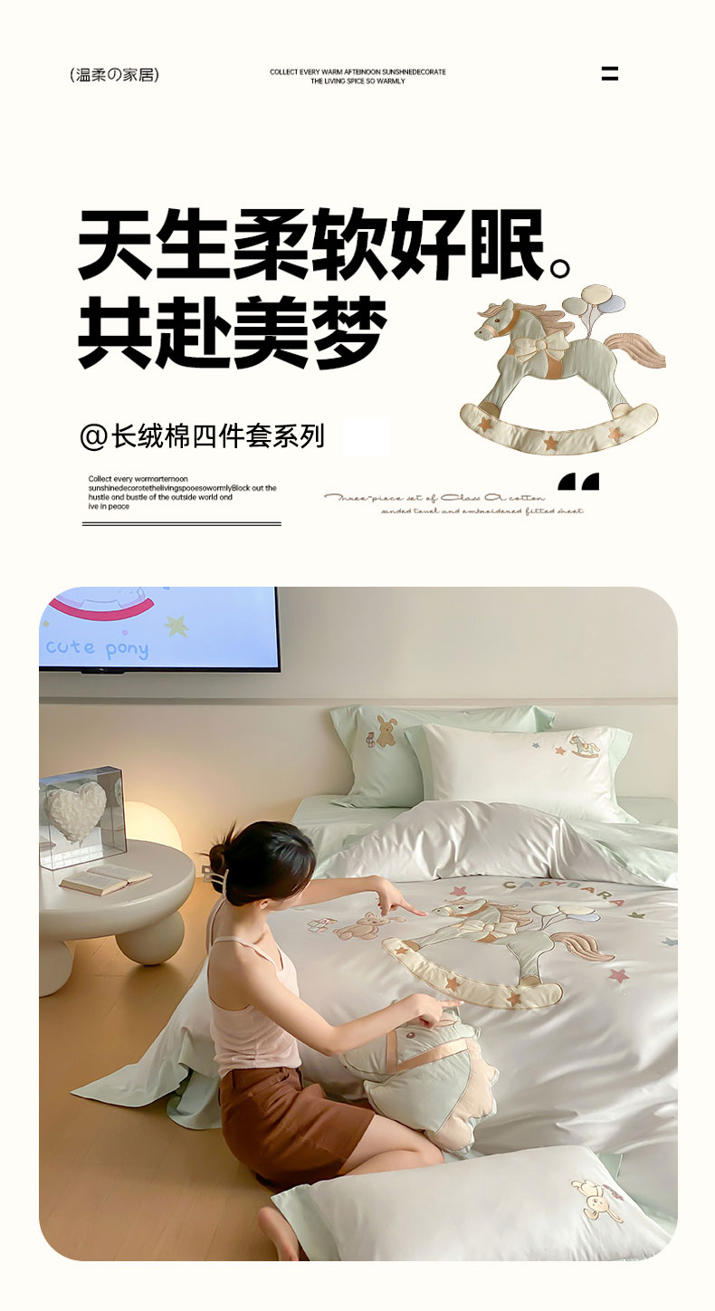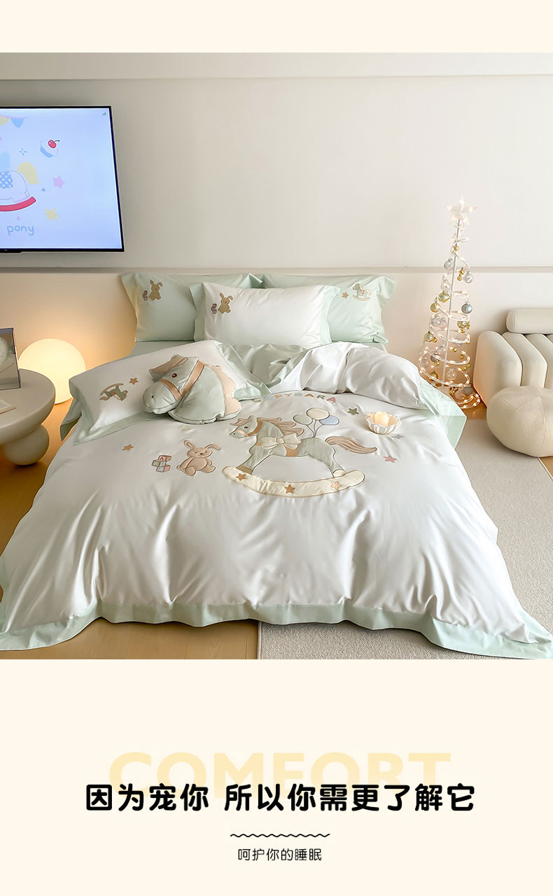 当前位置: 91家纺网 > 商品网购 > 床品套件 > 四件套 > 全棉活性四件套 > (总)FORTWO家纺原创设计(FOR TWO家纺) 2026新款50长绒棉拼角贴布绣四件套-幸运木马
