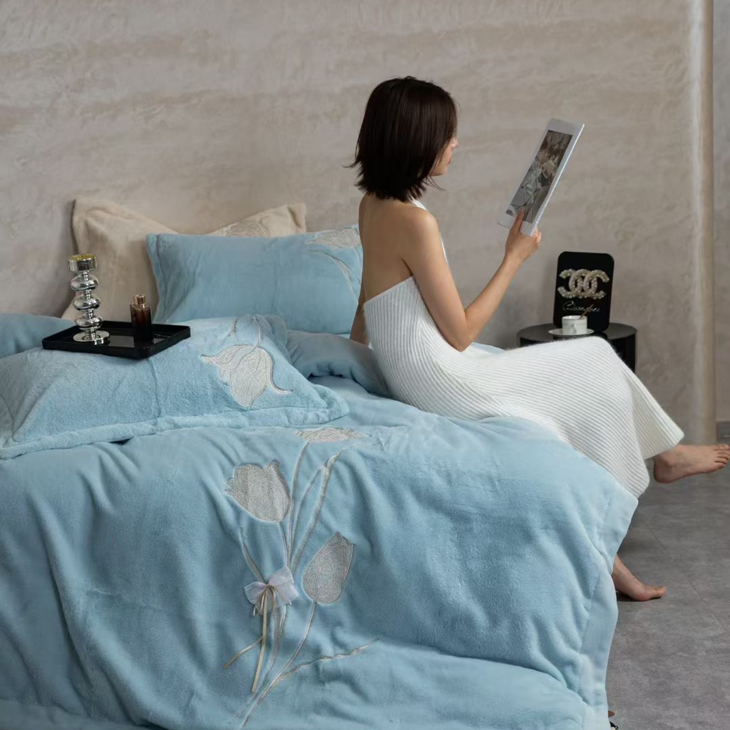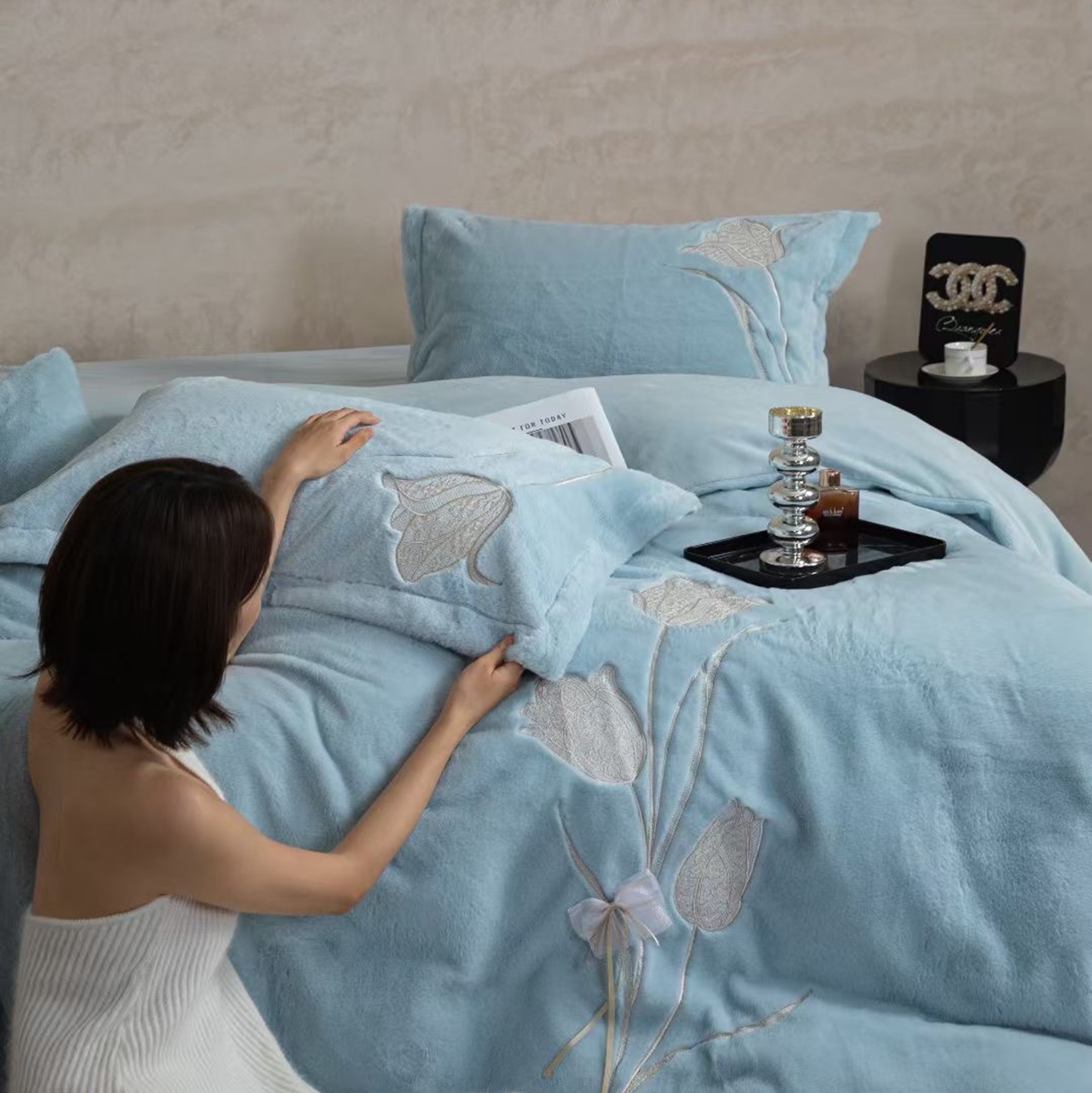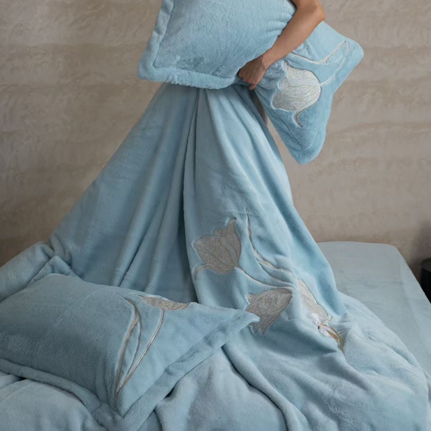 (总)2026新款高端高克重水貂绒四件套-漫枝系列,漫枝 豆绿,漫枝 灰色,漫枝 咖色,漫枝 蓝色,漫枝 玉色