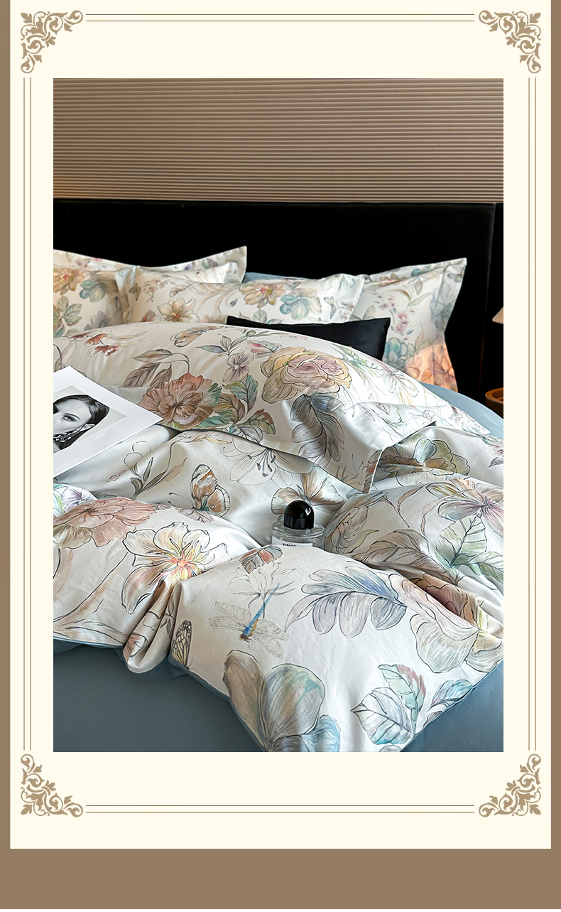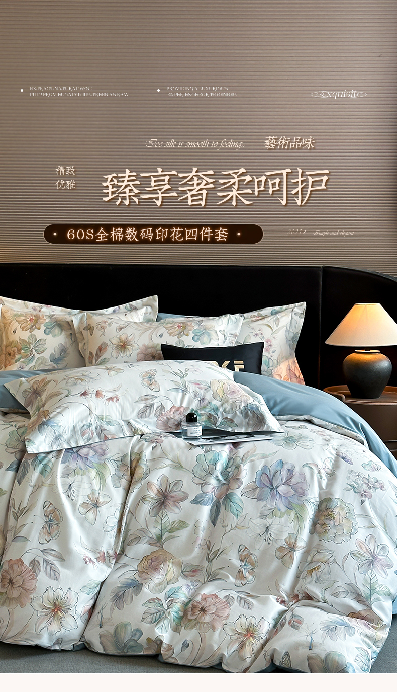 蓝米卡夫 2026春季新款-60S长绒棉数码印花贡缎系列四件套(礼盒) 凝香玉露