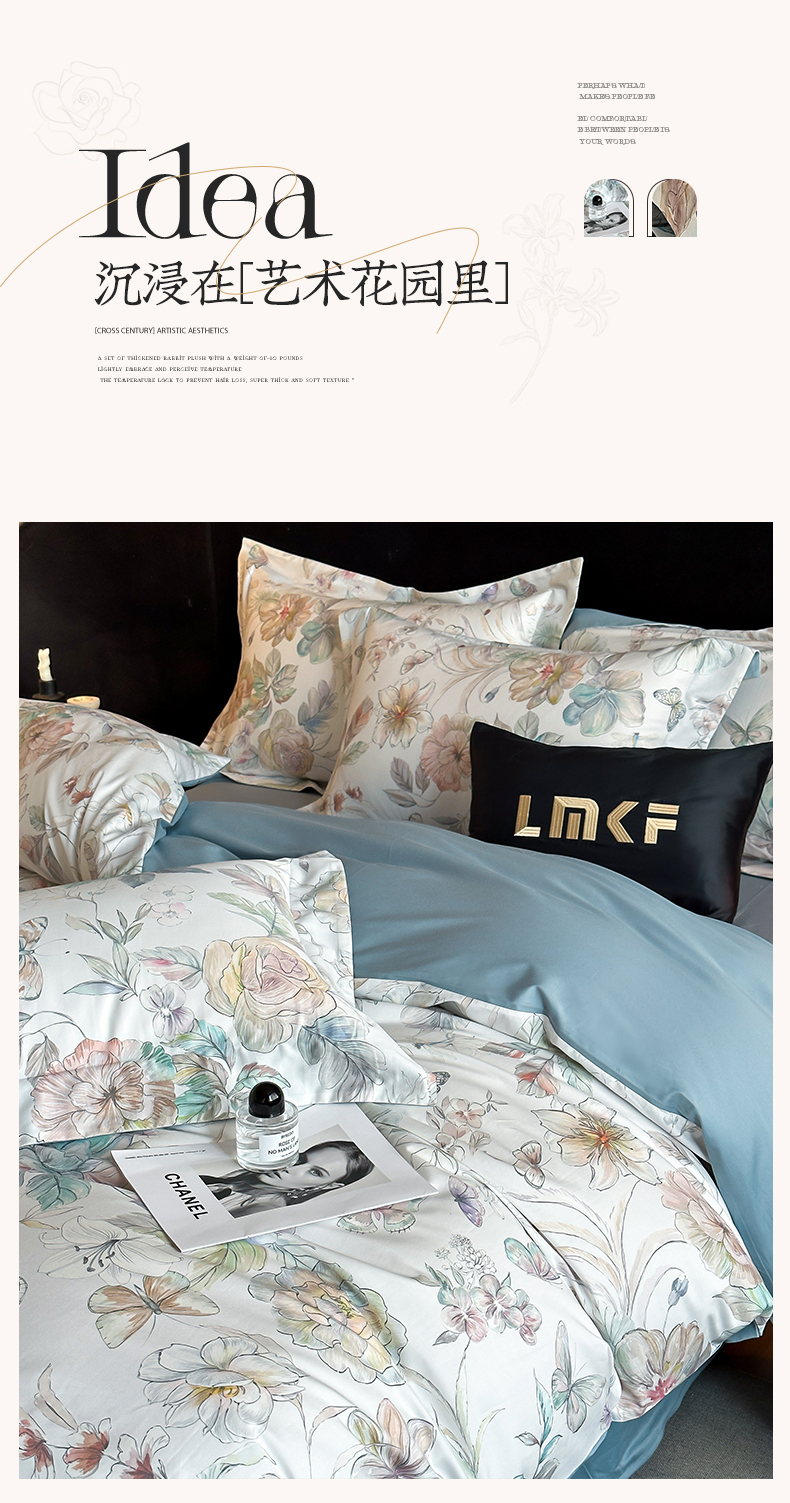 (总)蓝米卡夫 2025秋冬-A类棉麻全棉数码印花50S*50S双股磨毛公主风系列(礼盒包装)【如需买家秀联系15996631948】 ,清逸花蝶,茶间萌兔,花间墨韵,幻彩雅韵,静雅花韵,雀语花枝