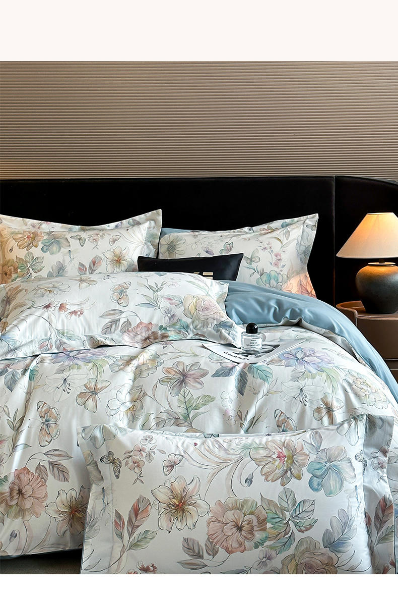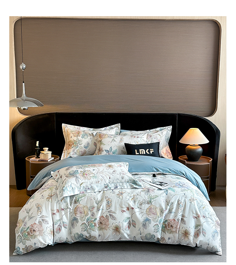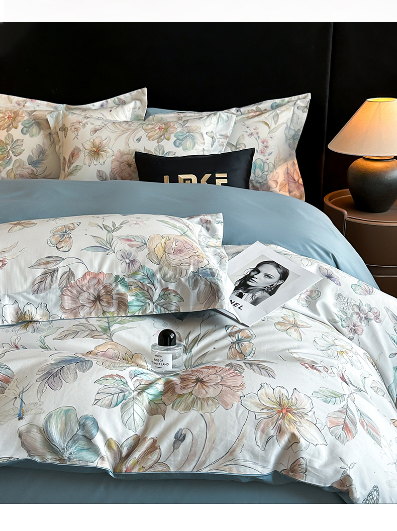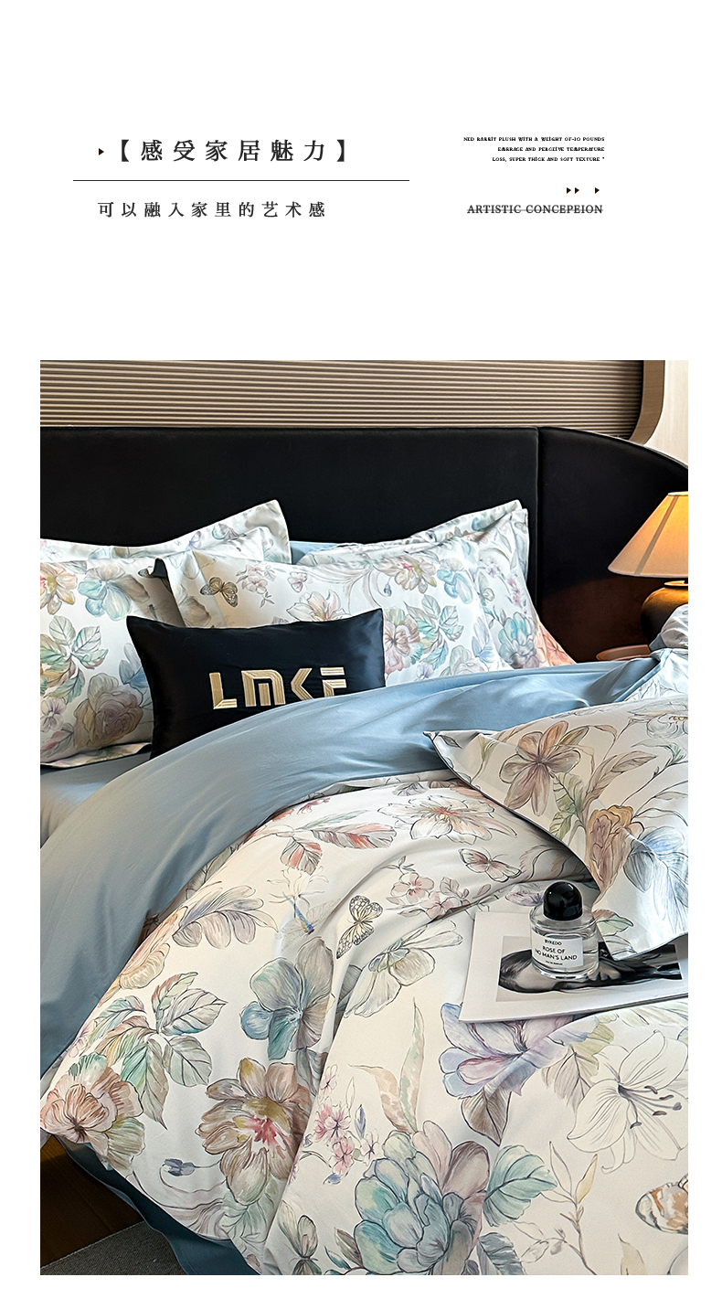 商品名称:蓝米卡夫 2026春季新款-60S长绒棉数码印花贡缎系列四件套(礼盒) 凝香玉露