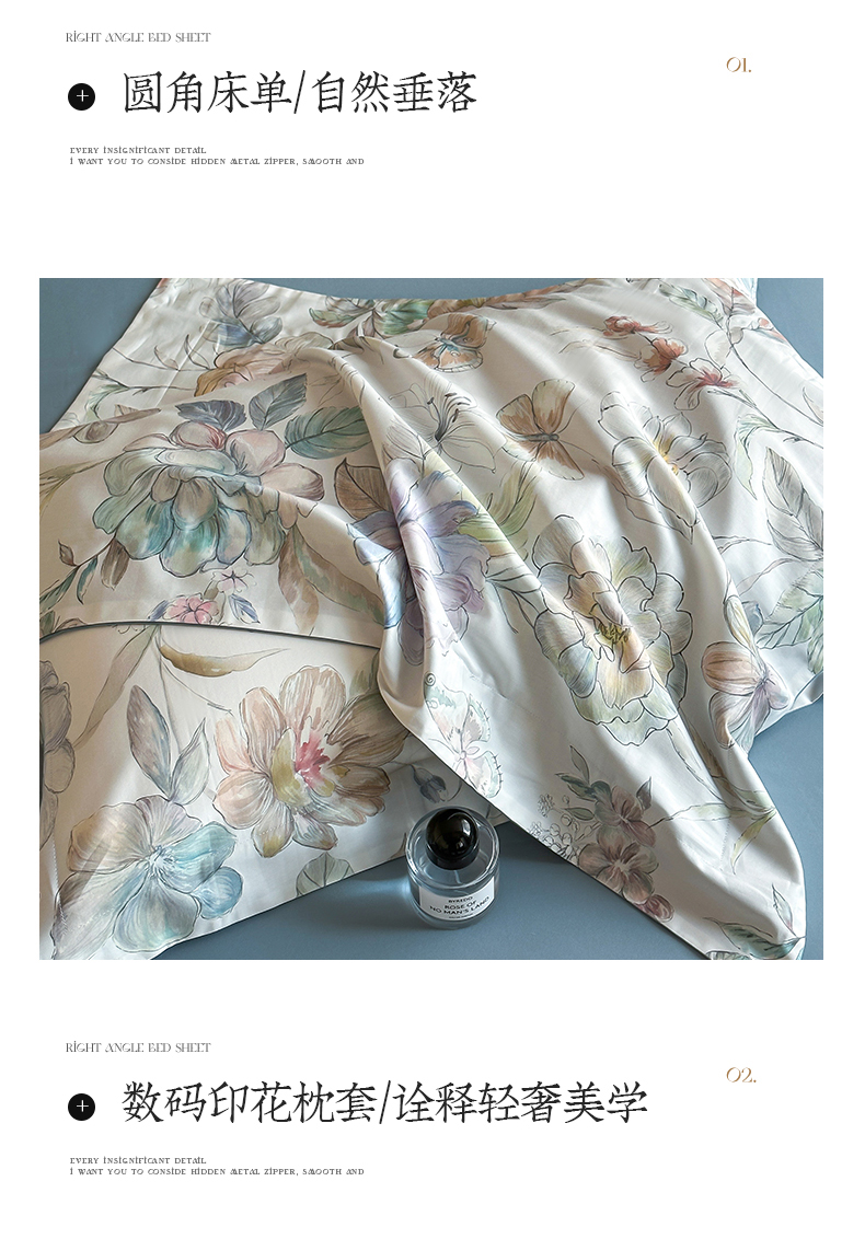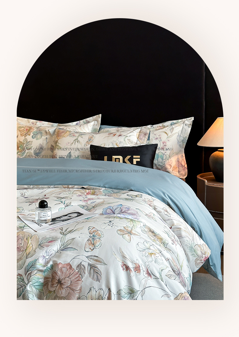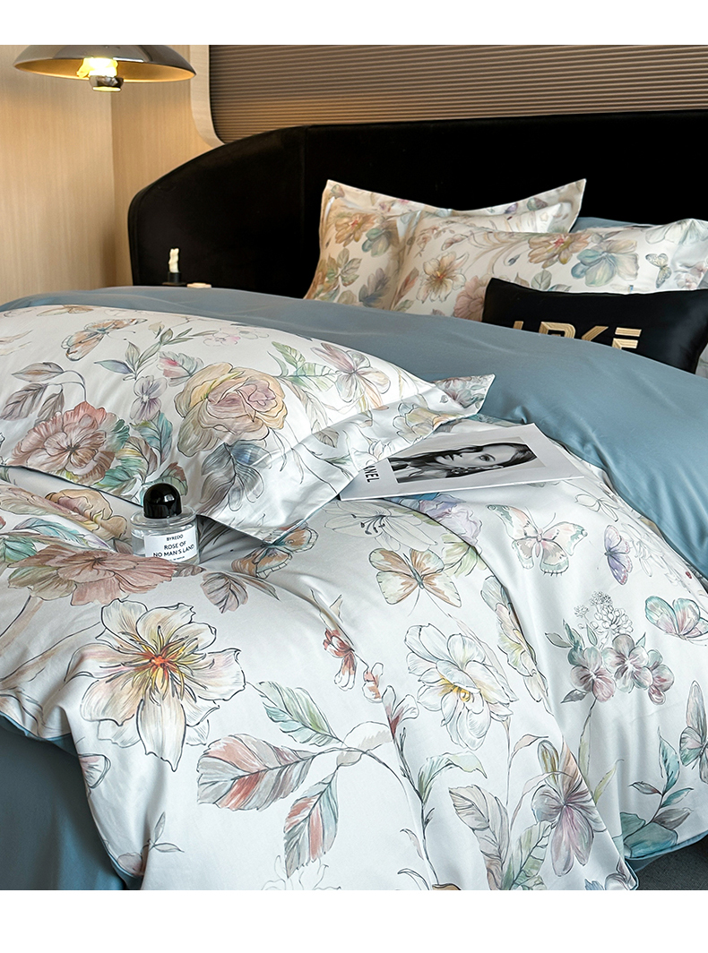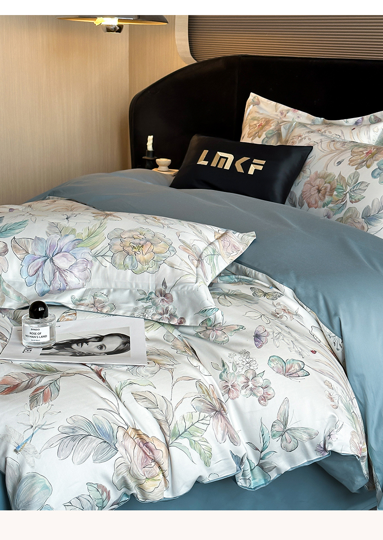 商品名称:蓝米卡夫 2026春季新款-60S长绒棉数码印花贡缎系列四件套(礼盒) 凝香玉露