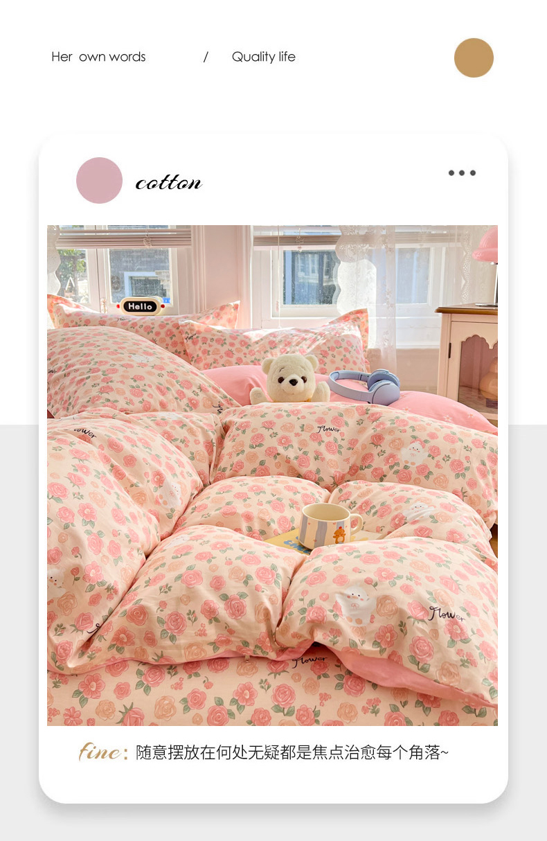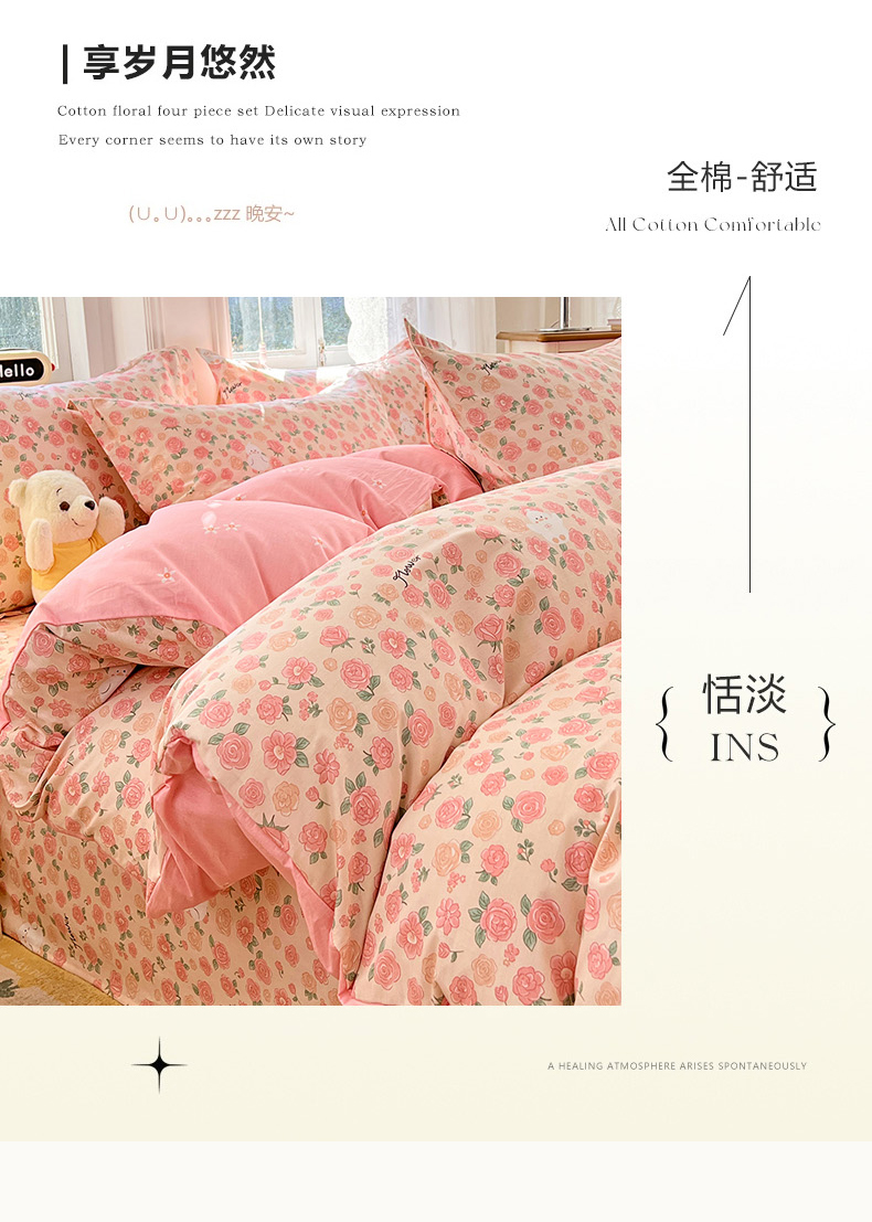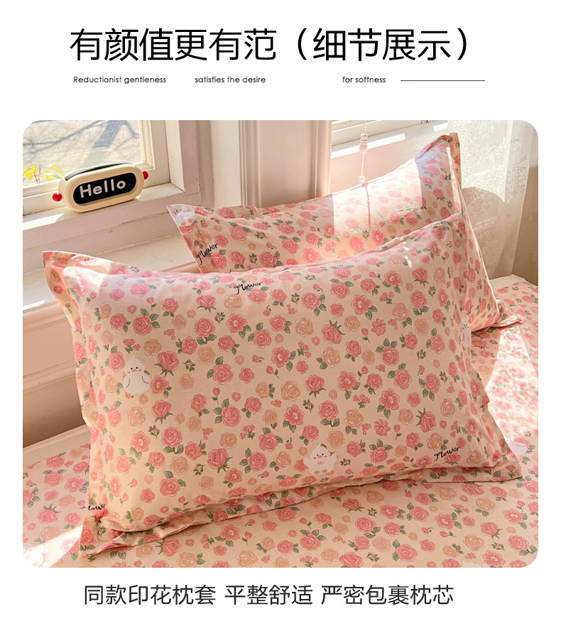 商品名称:世爵 2026春夏新款全棉纯棉印花小清新四件套 浓情玫瑰