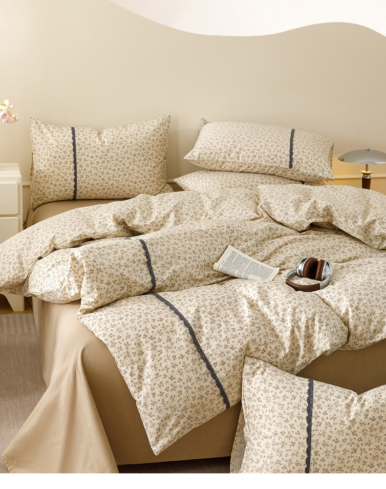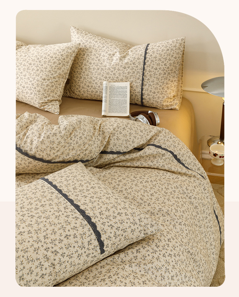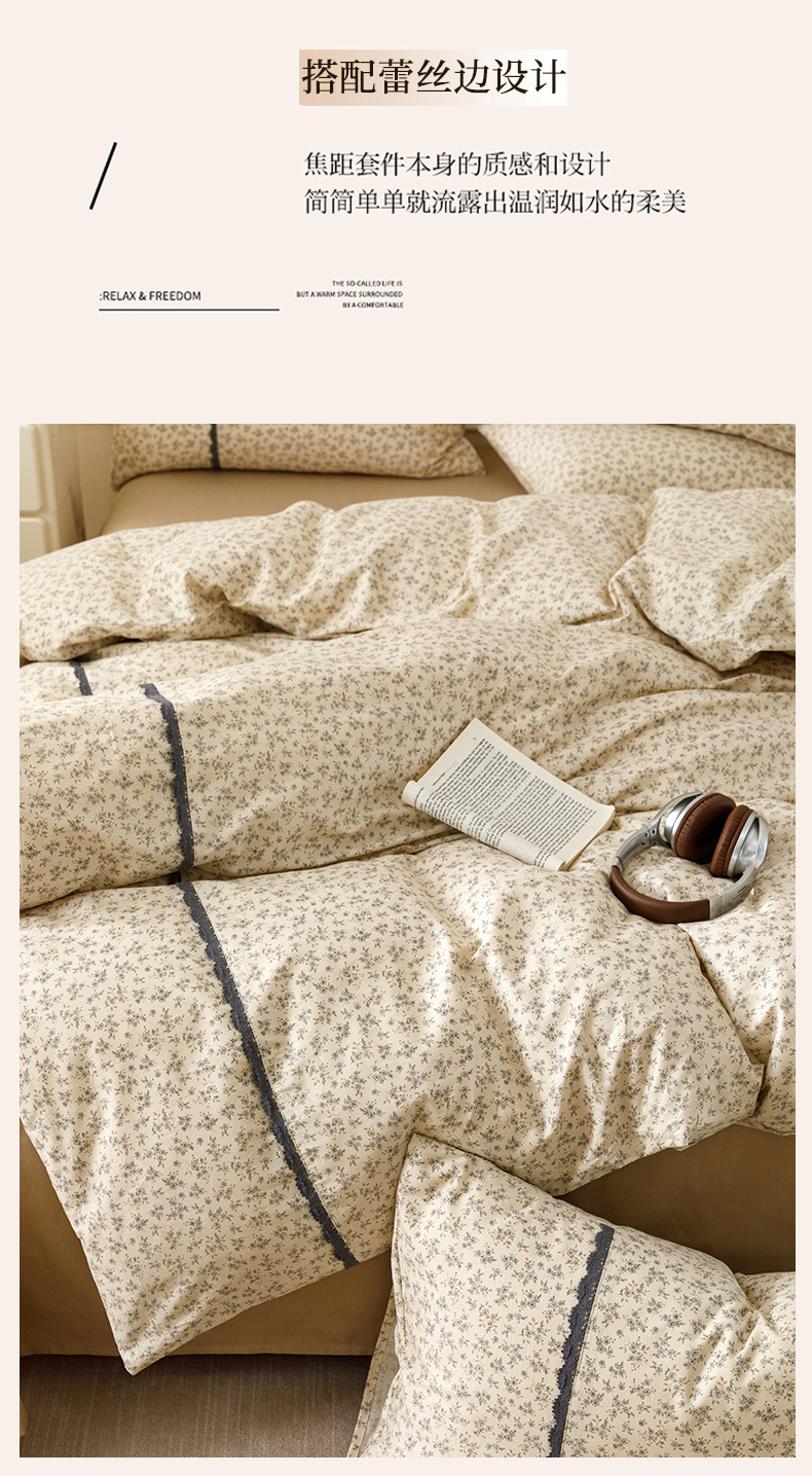 当前位置: 91家纺网 > 商品网购 > 床品套件 > 四件套 > 全棉普通四件套 > 简宜家居(朝初家纺) 2026新款13070全棉纯棉40支斜纹蕾丝四件套 初朵