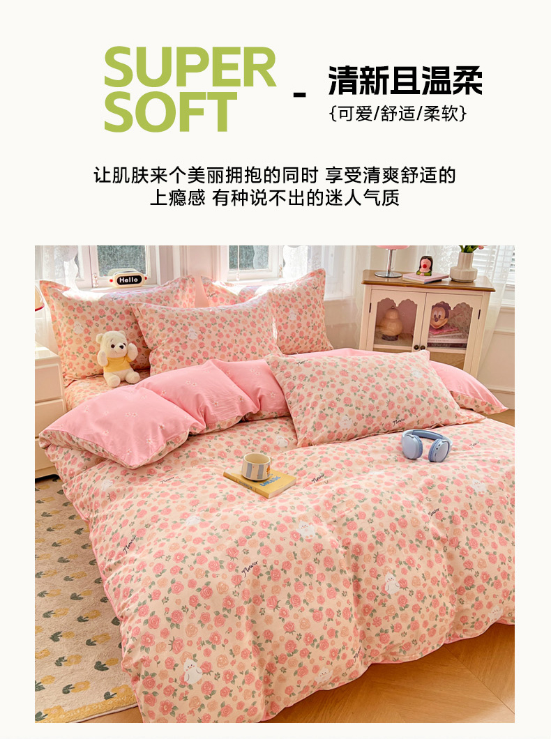 • 91家纺网 家纺一手货源 找家纺 世爵 2026新款全棉纯棉印花小清新单被套单品系列 浓情玫瑰