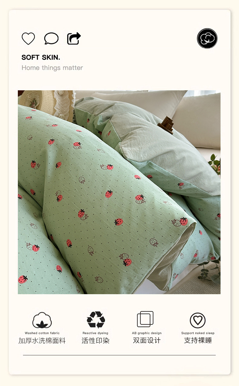 (总)家贝爱 2026新款加厚水洗棉被套被套单件,草莓点点,丛林蘑菇,浮梦花影,莱茵花畔,沐雅-咖,沐雅-绿,轻婉花语,素夕,甜蜜小熊,童趣时光,晚秋花语,星空小象
