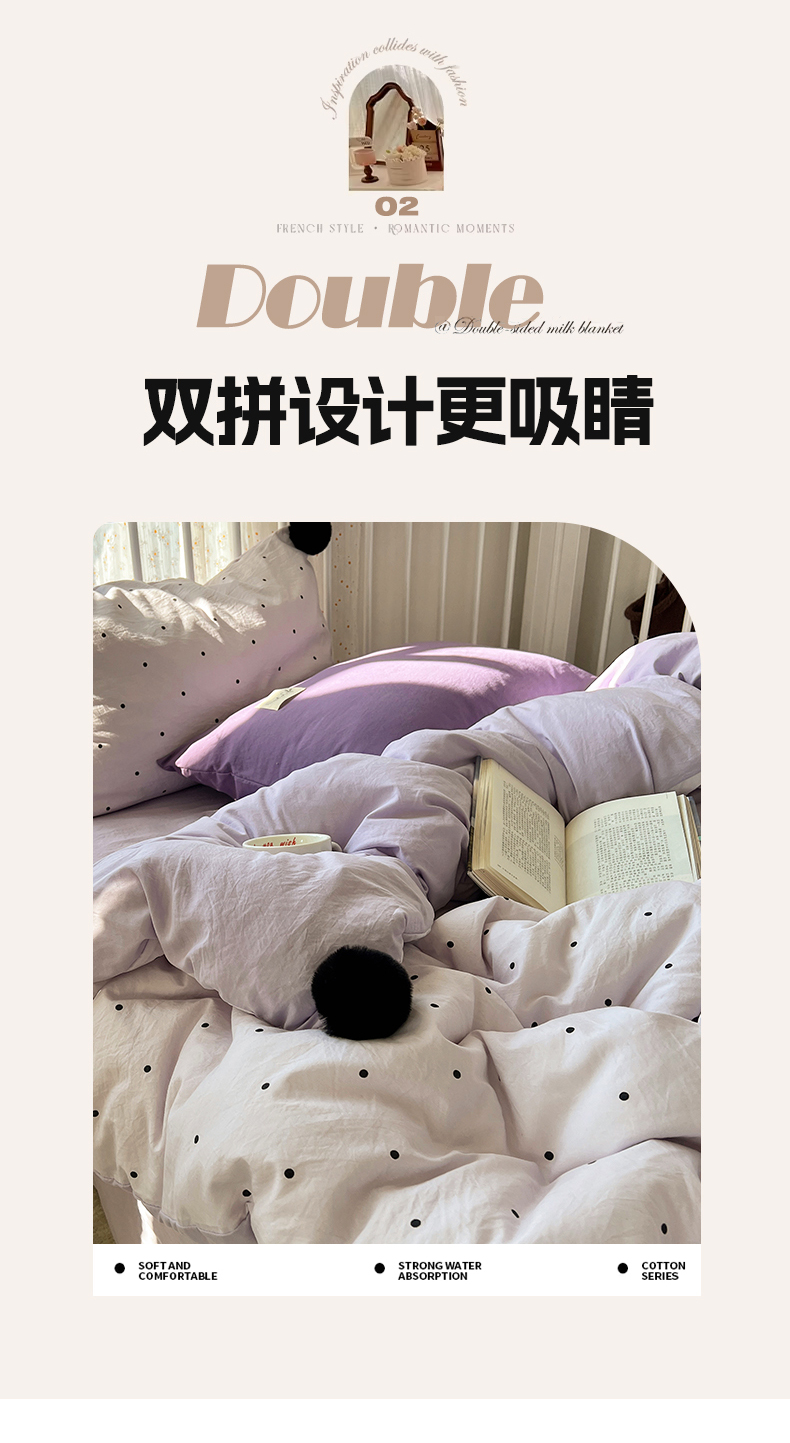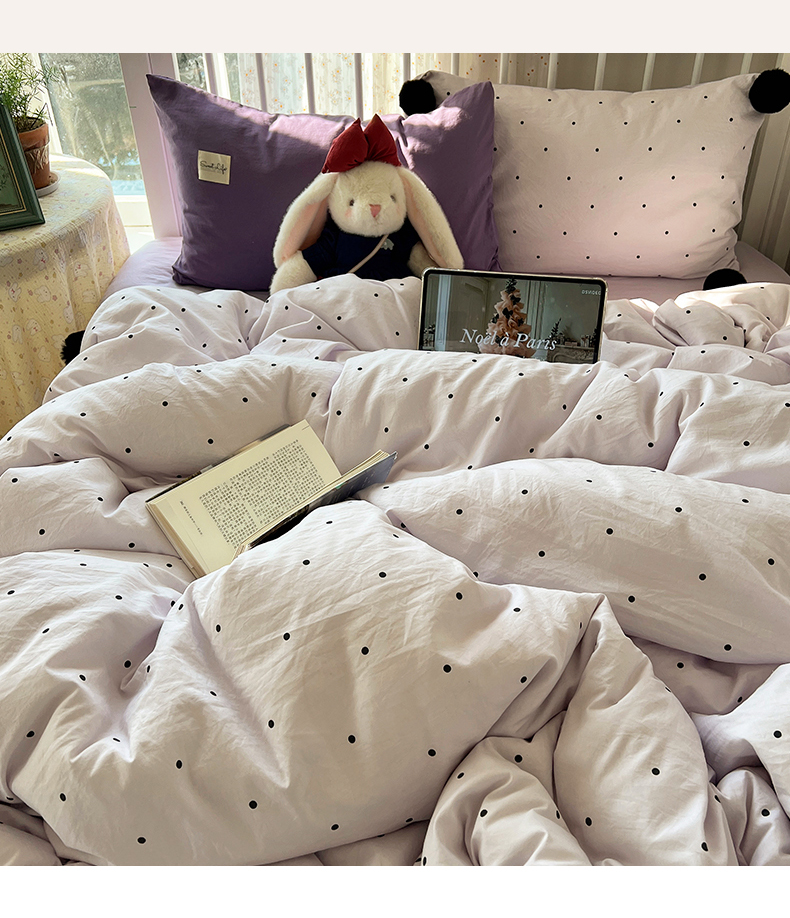 (总)轻奢坊 2026新款水洗棉波点可拆卸毛球四件套,紫波点-枕套混搭,粉波点-枕套波点,粉波点-枕套混搭,蓝波点-枕套波点,蓝波点-枕套混搭,绿波点-枕套波点,绿波点-枕套混搭,米波点-枕套波点,米波点-枕套混搭,紫波点-枕套波点