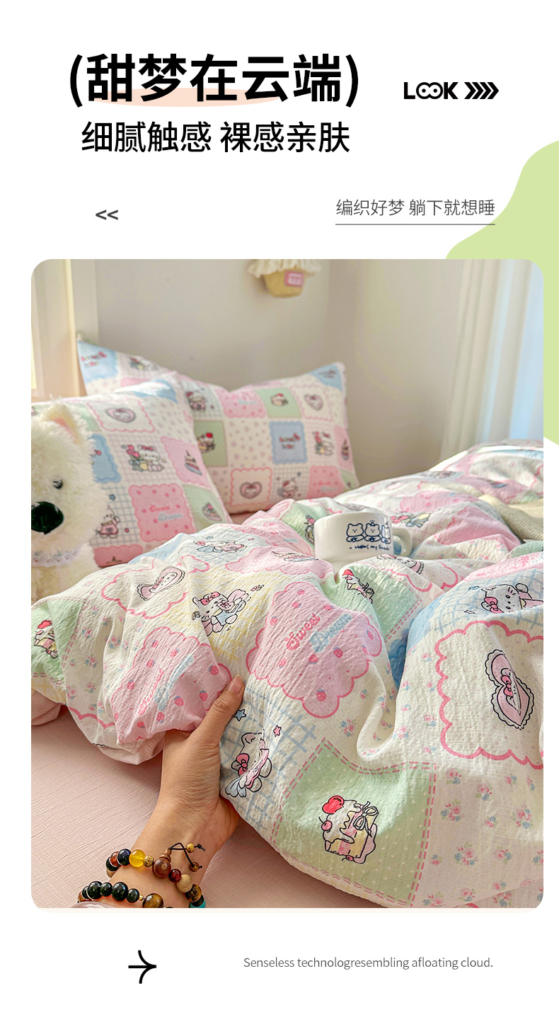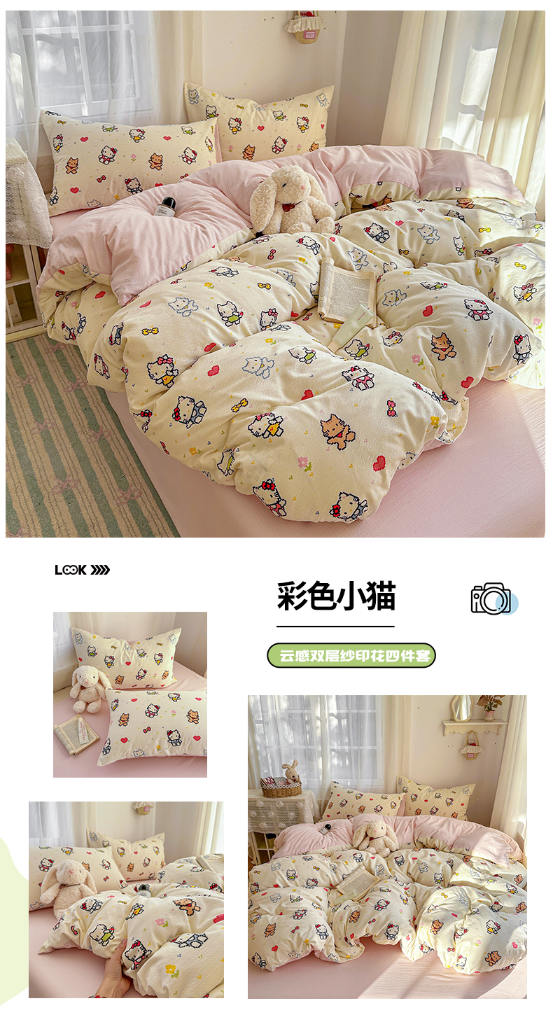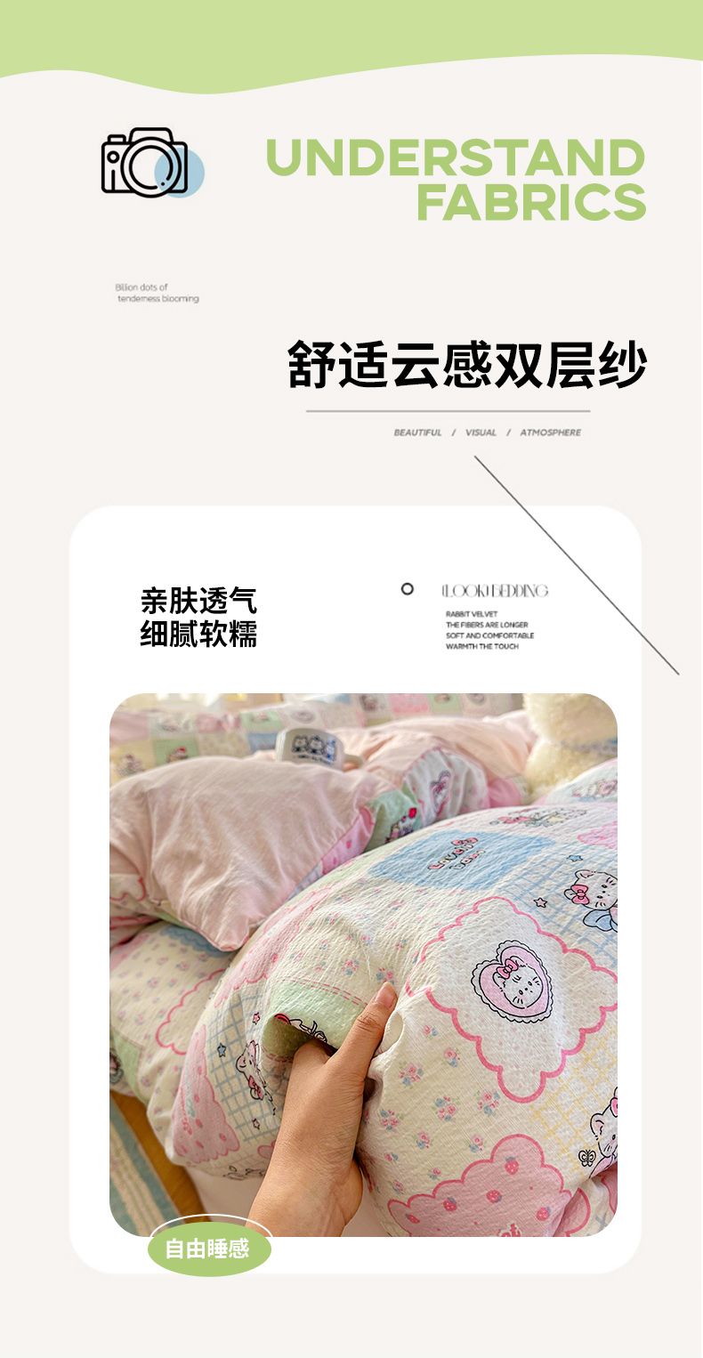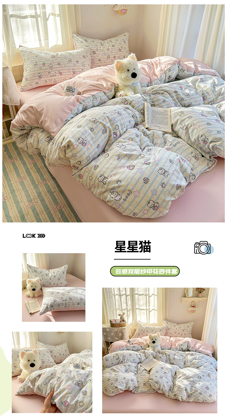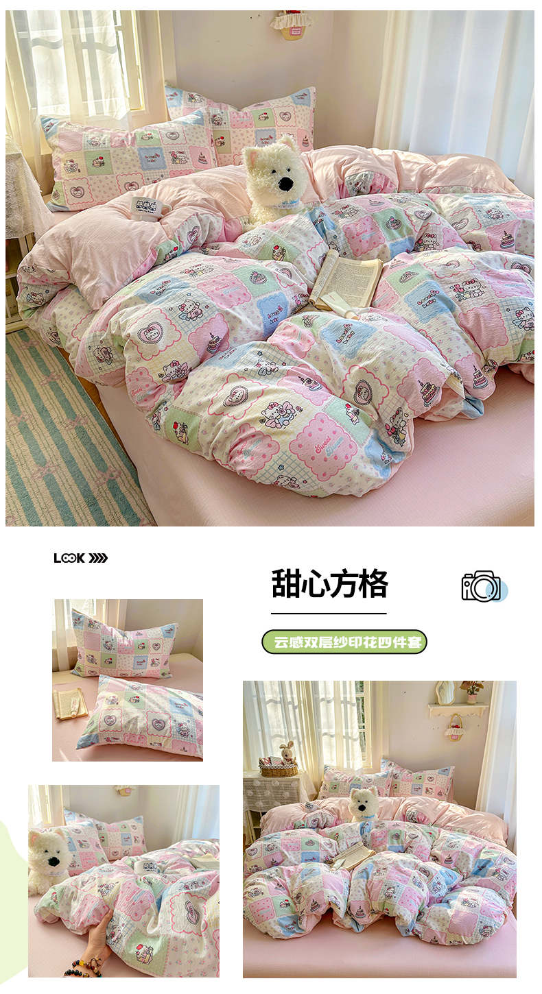 当前位置: 91家纺网 > 商品网购 > 床品套件 > 四件套 > 其它四件套 > 宏源家纺 2026新款云感提花双层纱四件套 甜心方格
