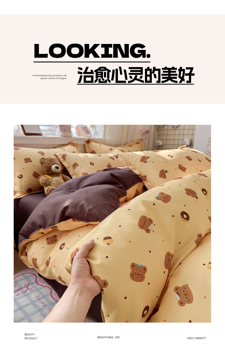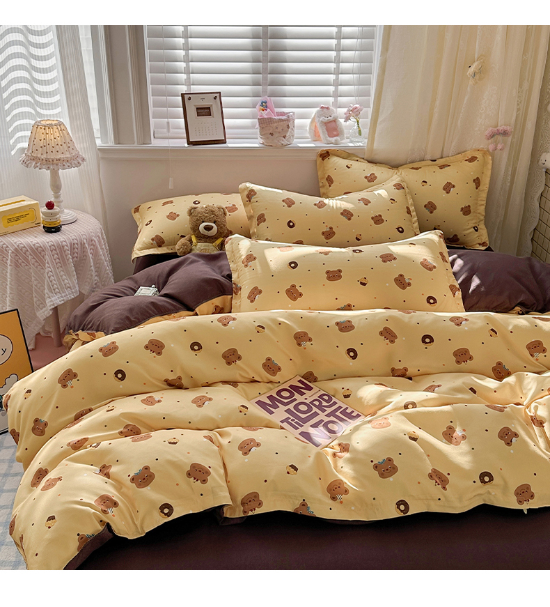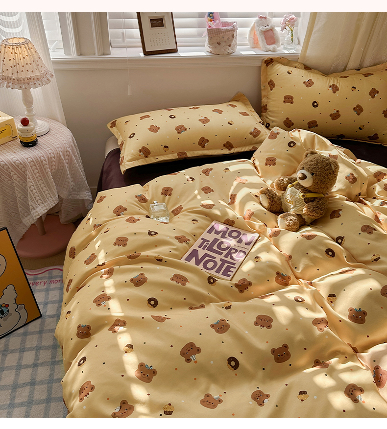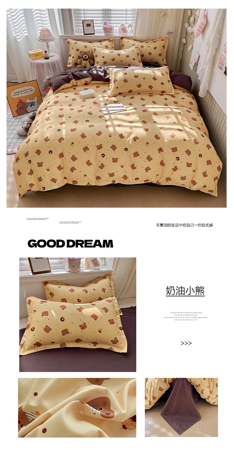 商品名称:卡斯诺家纺馆 2026新款A类亲肤芦荟棉四件套 下载文件包含买家秀 奶油小熊