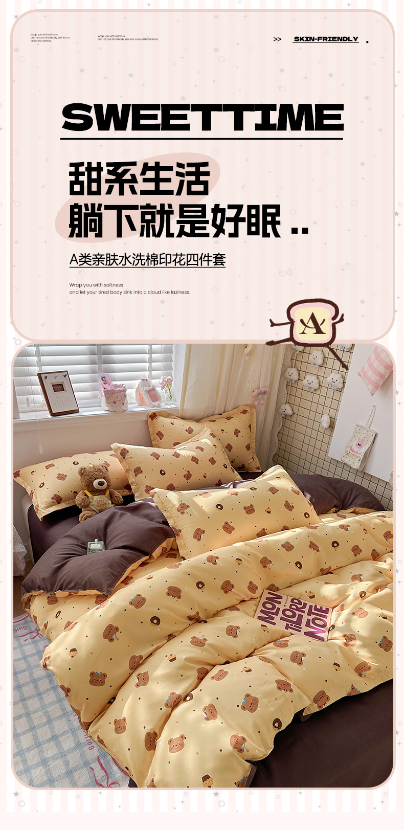 (总)卡斯诺 2025新款A类水洗云朵棉四件套(下载包包含买家秀),黑喵,布丁小熊,春风十里,果缤纷,玫瑰之约,梦幻雨林,牧野小新,浅兮,倾城之恋,小咖熊,邂逅,一缕阳光,郁颜,悦颜,紫悦