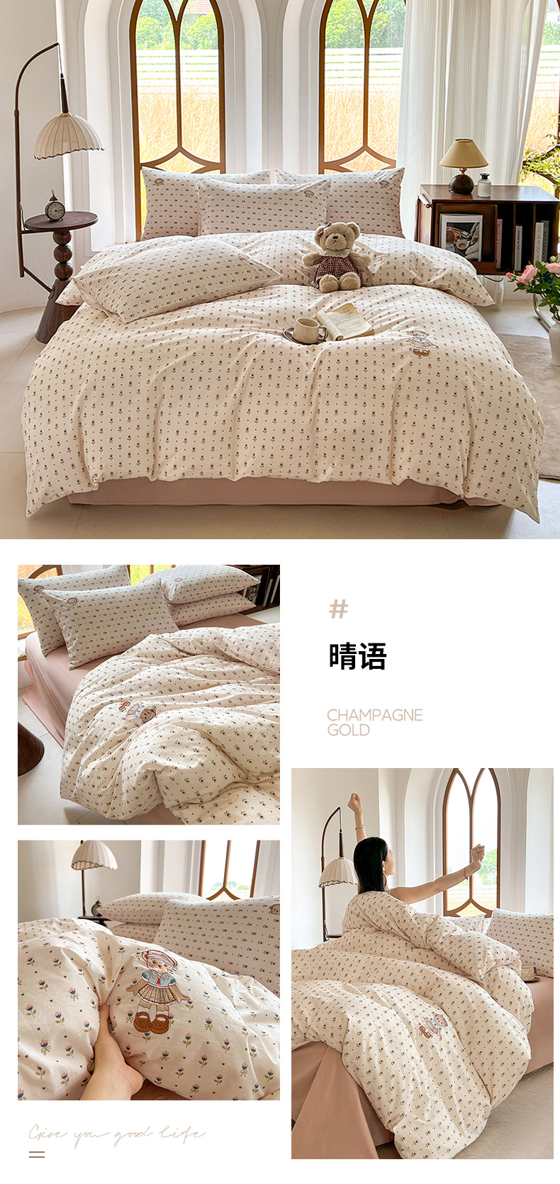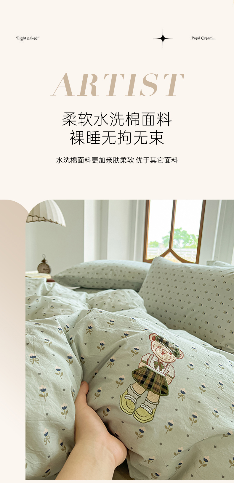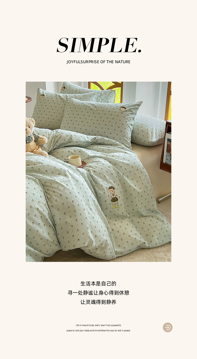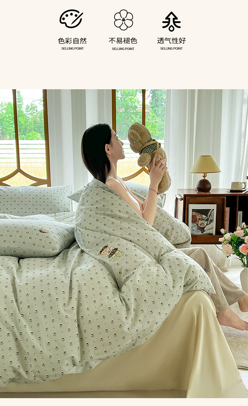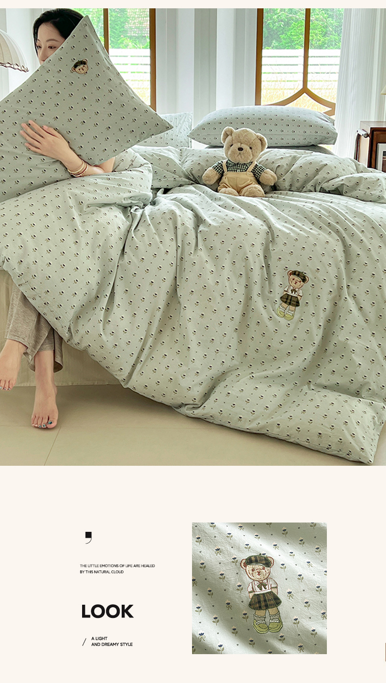 当前位置: 91家纺网 > 商品网购 > 床品套件 > 四件套 > 水洗棉四件套 > 欣晴家纺 2026新款软糯云朵棉水洗棉刺绣三件套四件套嘟嘟小熊系列(风格1) 花涧