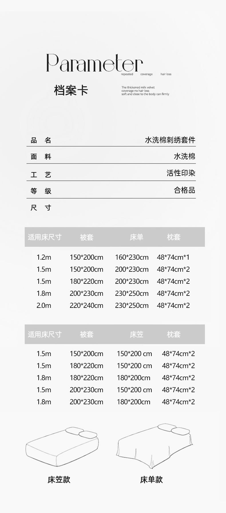 【床笠款】1.8四件套-被套180x220 | ¥65.00 |