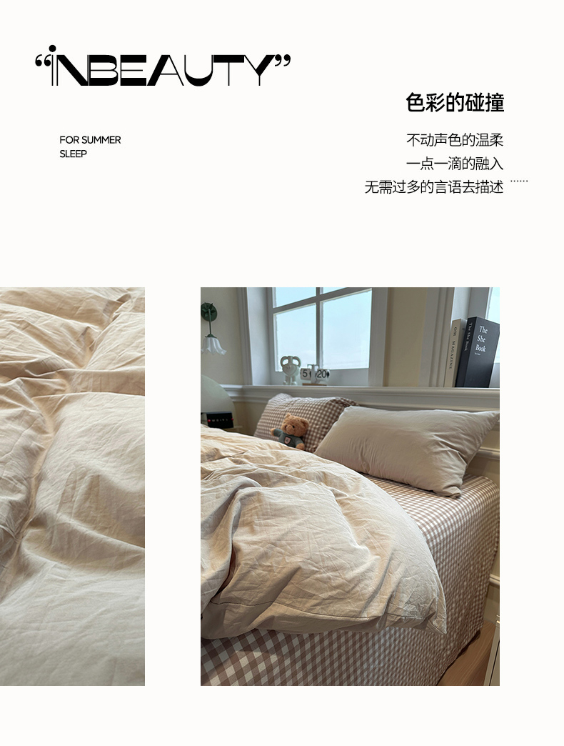 欣晴家纺 2026新款软糯水洗棉条格无印宜家风混搭系列被套单件单品被套 混搭米驼