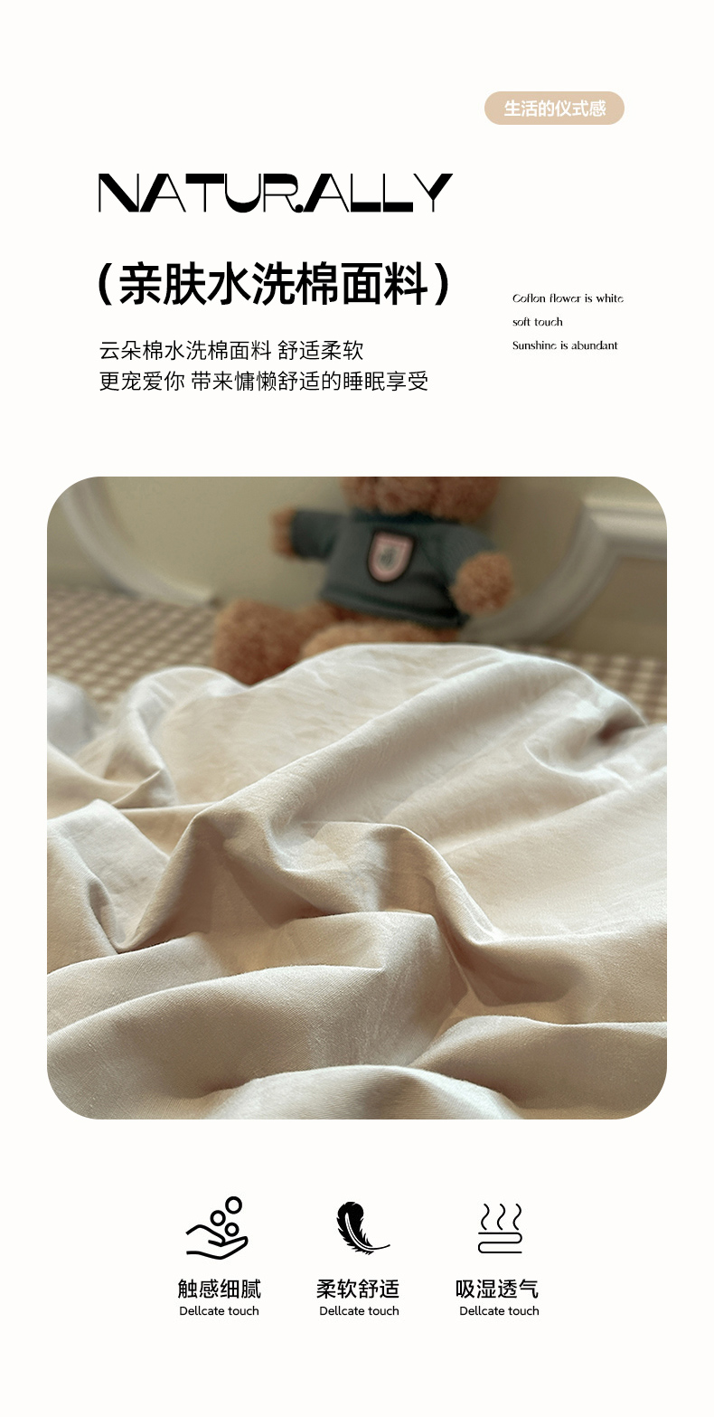 (总)欣晴家纺 2026新款软糯云朵棉水洗棉刺绣三件套四件套嘟嘟小熊系列(风格1),尘香,芳华,花涧,花影,流萤,清风,晴语,邂逅