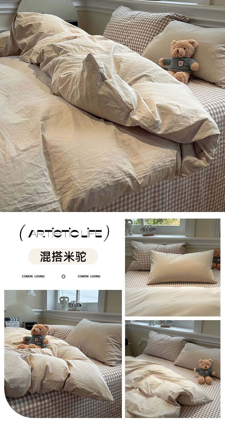 (总)欣晴家纺 2025新款软糯水洗棉条格无印宜家风混搭三件套四件套(风格2),混搭粉格,混搭灰条,混搭咖格,混搭咖条,混搭蓝格,混搭米黄,混搭米驼,混搭深灰