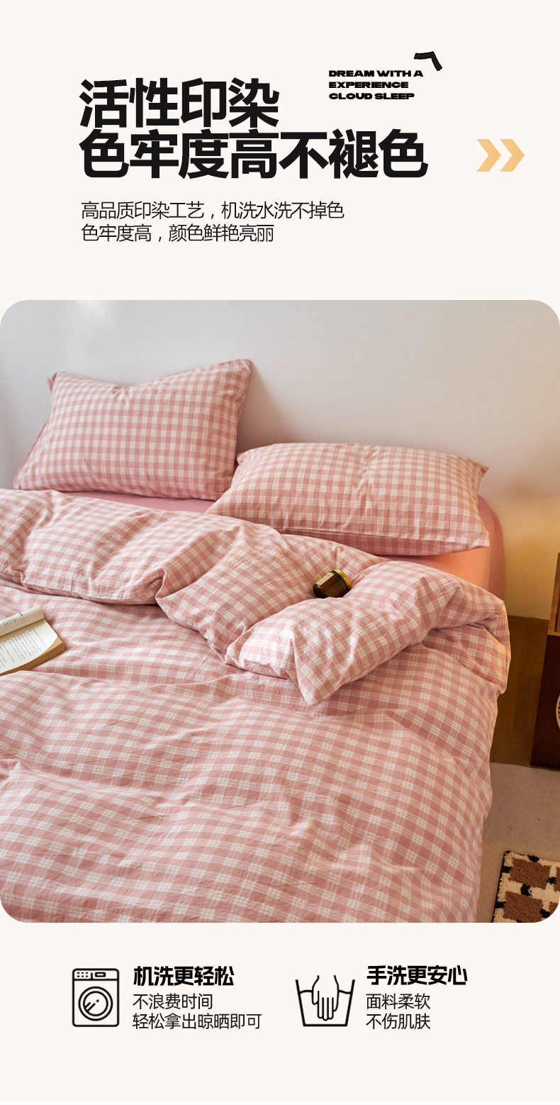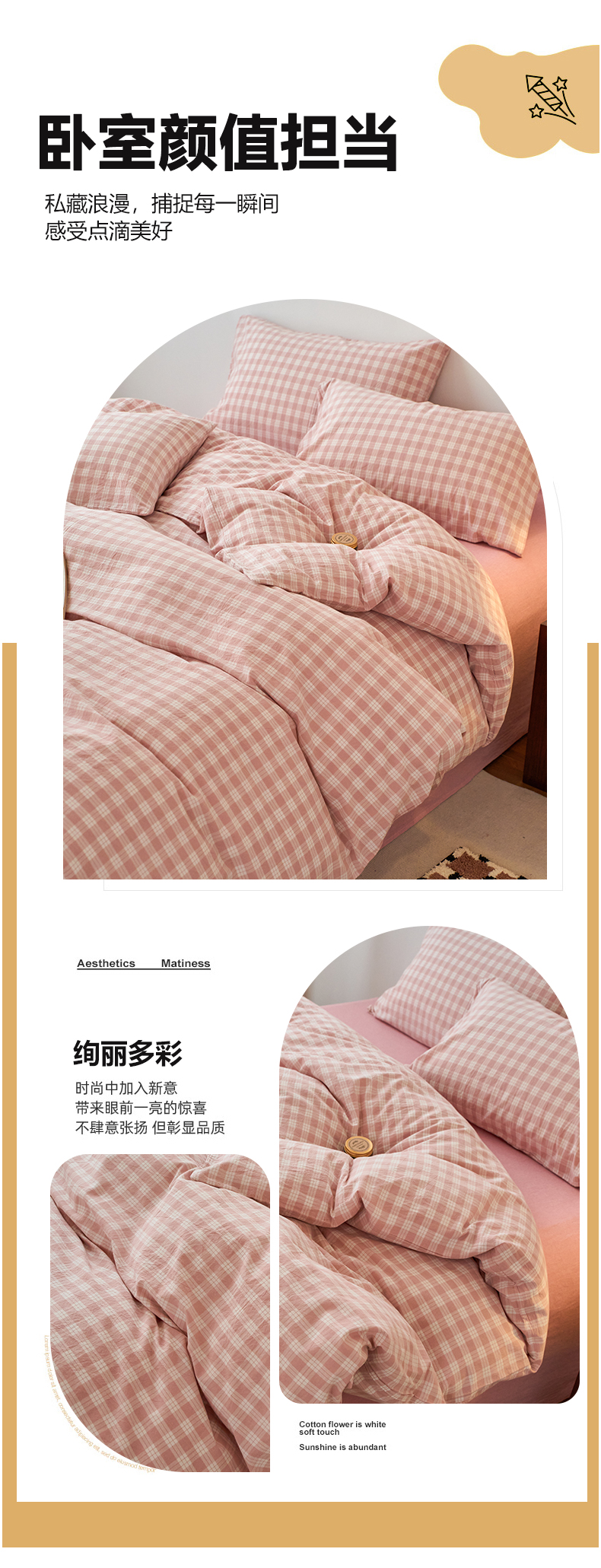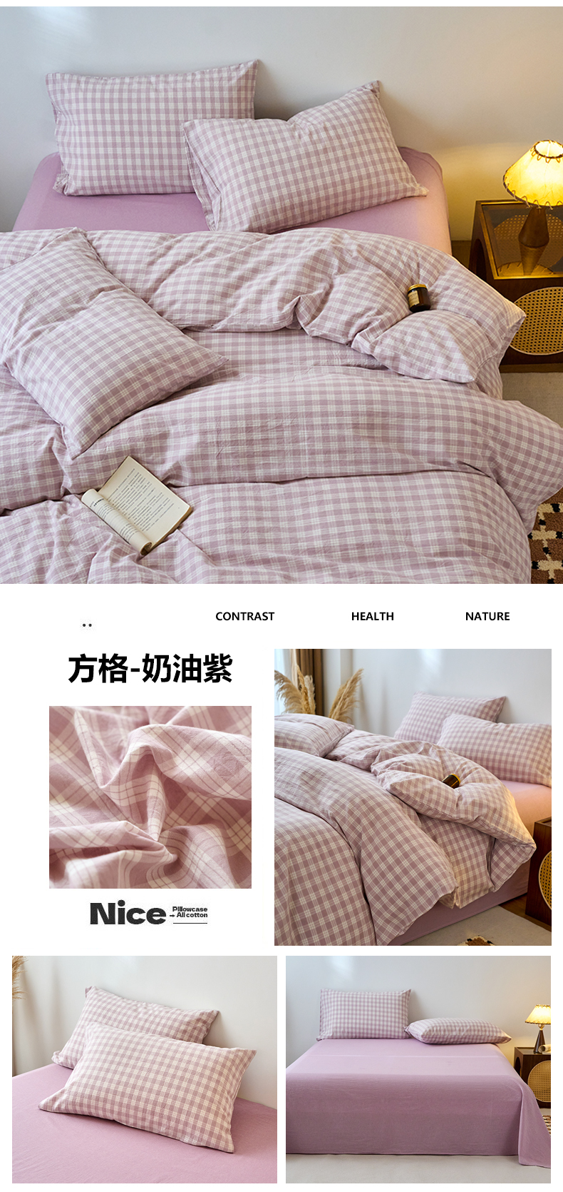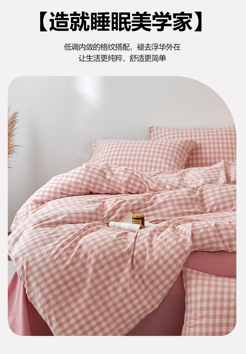 当前位置: 91家纺网 > 商品网购 > 床品套件 > 四件套 > 全棉普通四件套 > 兰紫橙家纺 2026新款全棉纯棉水洗棉四件套方格朵拉 方格-奶油粉