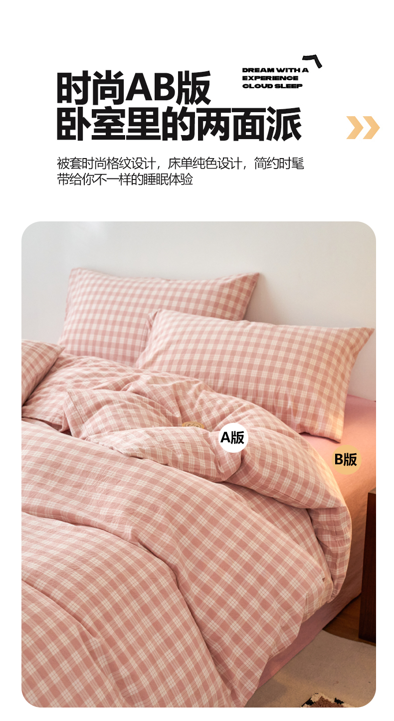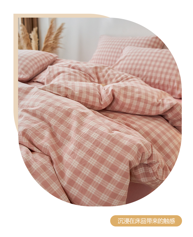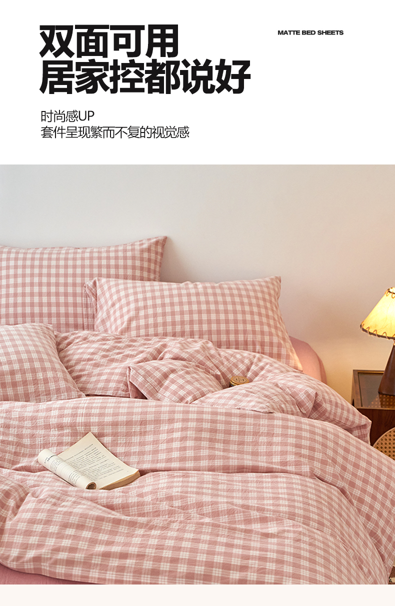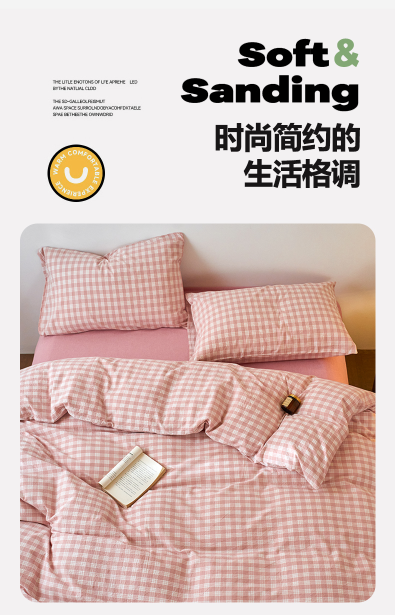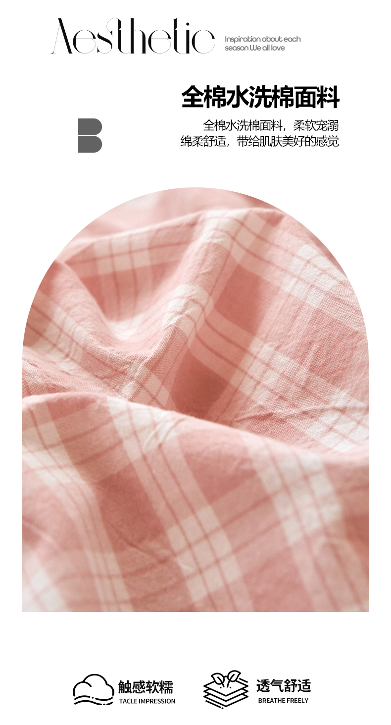 当前位置: 91家纺网 > 商品网购 > 床品套件 > 四件套 > 全棉普通四件套 > 兰紫橙家纺 2026新款全棉纯棉水洗棉四件套方格朵拉 方格-奶油粉