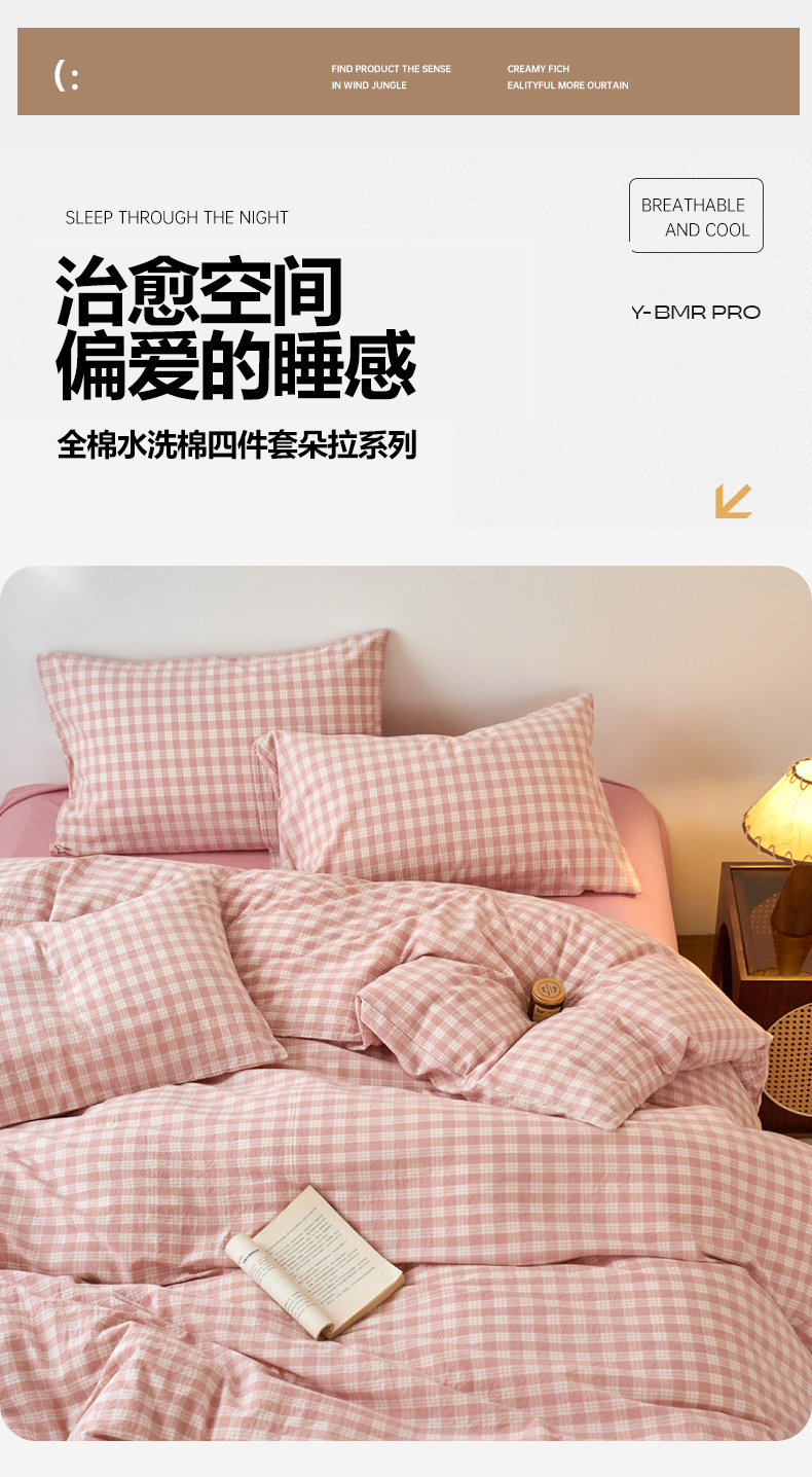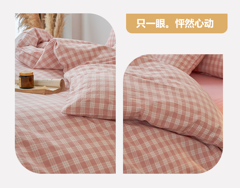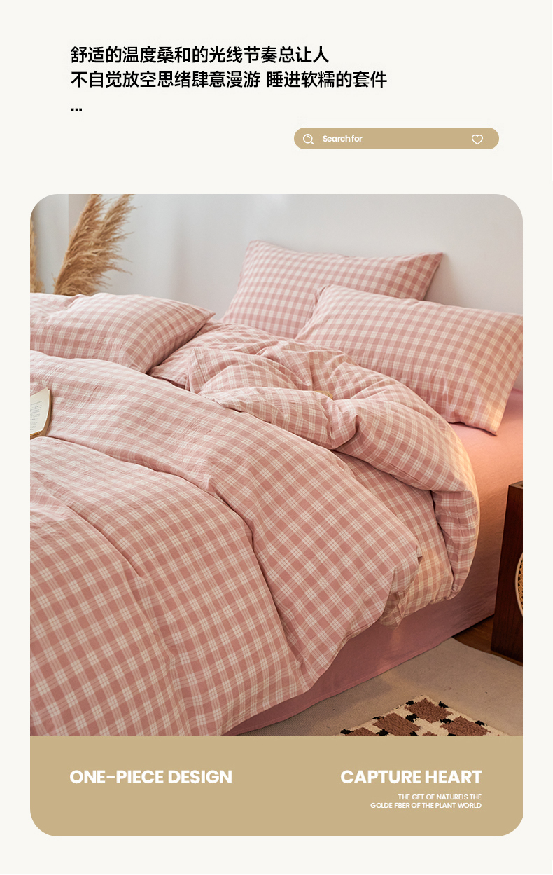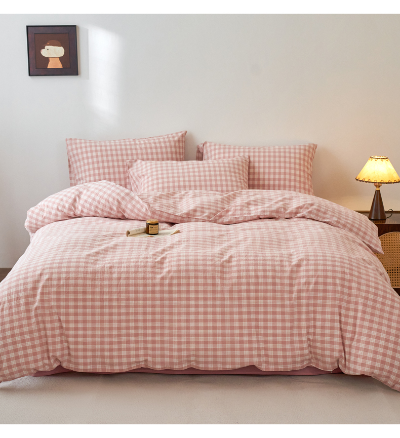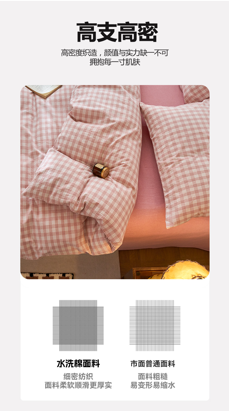 当前位置: 91家纺网 > 商品网购 > 床品套件 > 四件套 > 全棉普通四件套 > 兰紫橙家纺 2026新款全棉纯棉水洗棉四件套方格朵拉 方格-奶油粉
