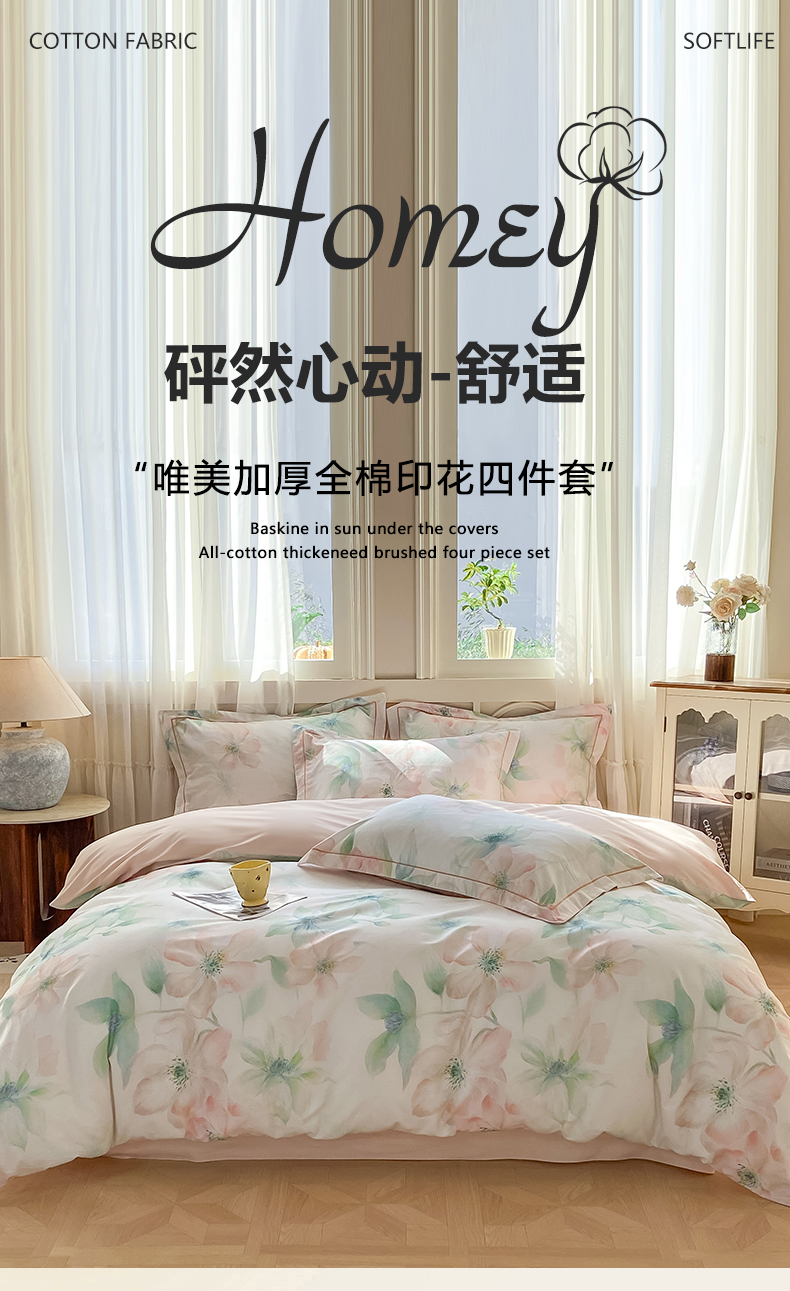 当前位置: 91家纺网 > 商品网购 > 床品套件 > 四件套 > 全棉普通四件套 > XIWEN-希文家纺 2026新款40支全棉纯棉13376数码印花四件套-第一批 晓城时光