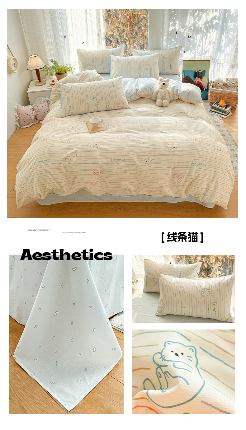 (总)吉象家纺 2026春夏新款全棉纯棉印花四件套,可爱星人,爱心小龙,鼻涕狗,嘟嘟小熊,花园梦梦,萌星,免兔野餐会,甜酱小猫(粉),兔兔梦境 米,熊熊时光,眼镜狗狗