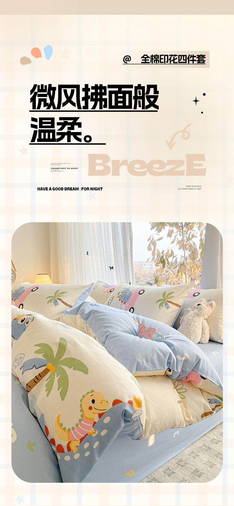 (总)吉象家纺 2026新款高支密全棉印花四件套,睡梦熊,布偶假期,彩虹木马,春游手记,点点小熊,度假恐龙,快乐小马,妙趣乐园,奶酪小可爱,秋日乐园,三小只,甜梦小精灵,童话花町,童年小事,温柔花朵熊,小小宇航员,星际仔仔,星星漫游记