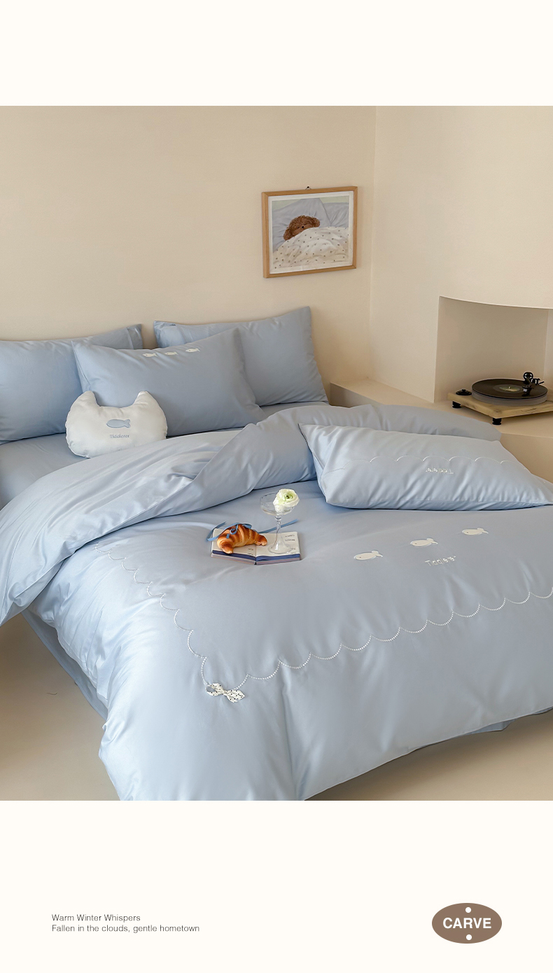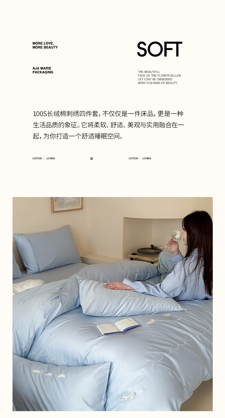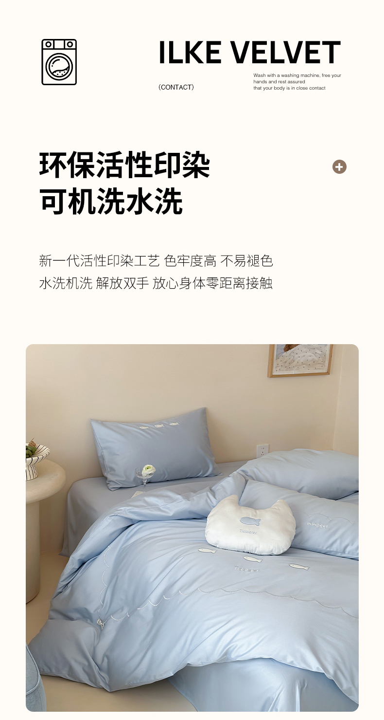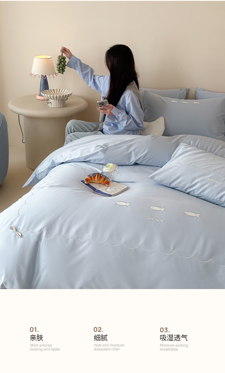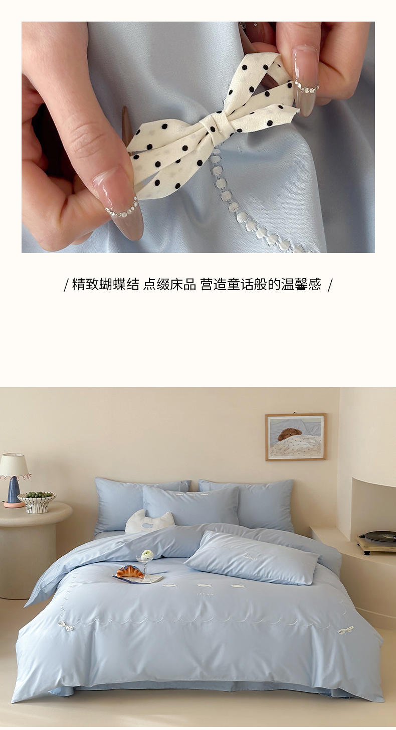当前位置: 91家纺网 > 商品网购 > 床品套件 > 四件套 > 长绒棉四件套 > 极简 2026新款100S长绒棉刺绣四件套-萌趣小鱼(小号控价258标准288加大308) 萌趣小鱼-蓝