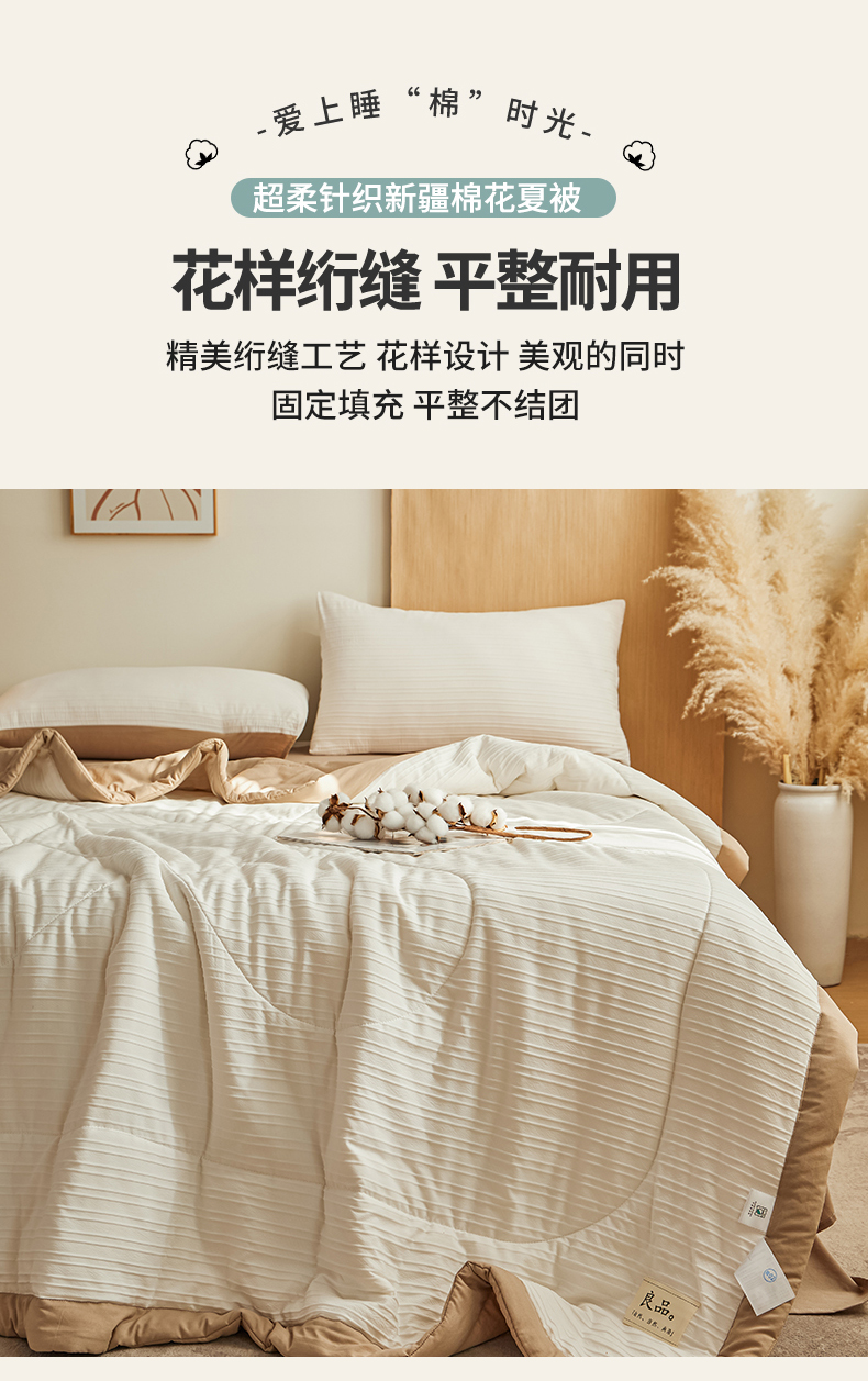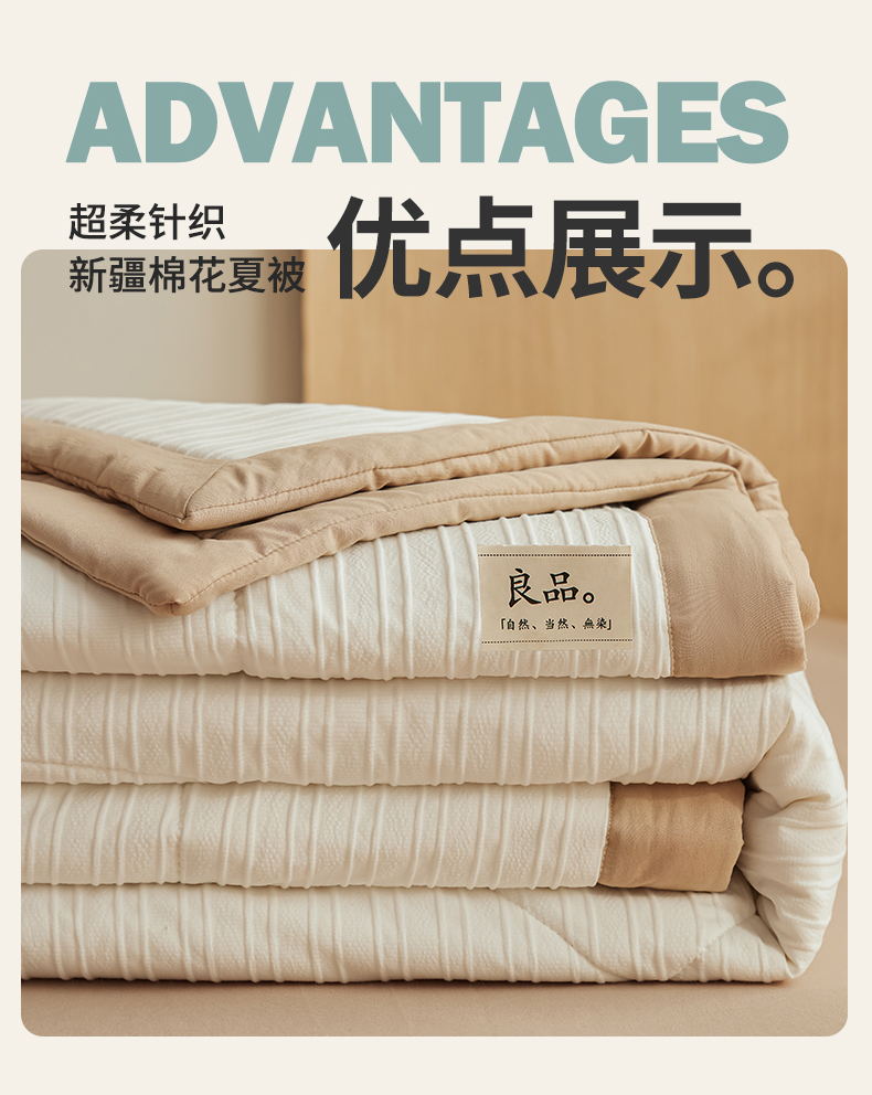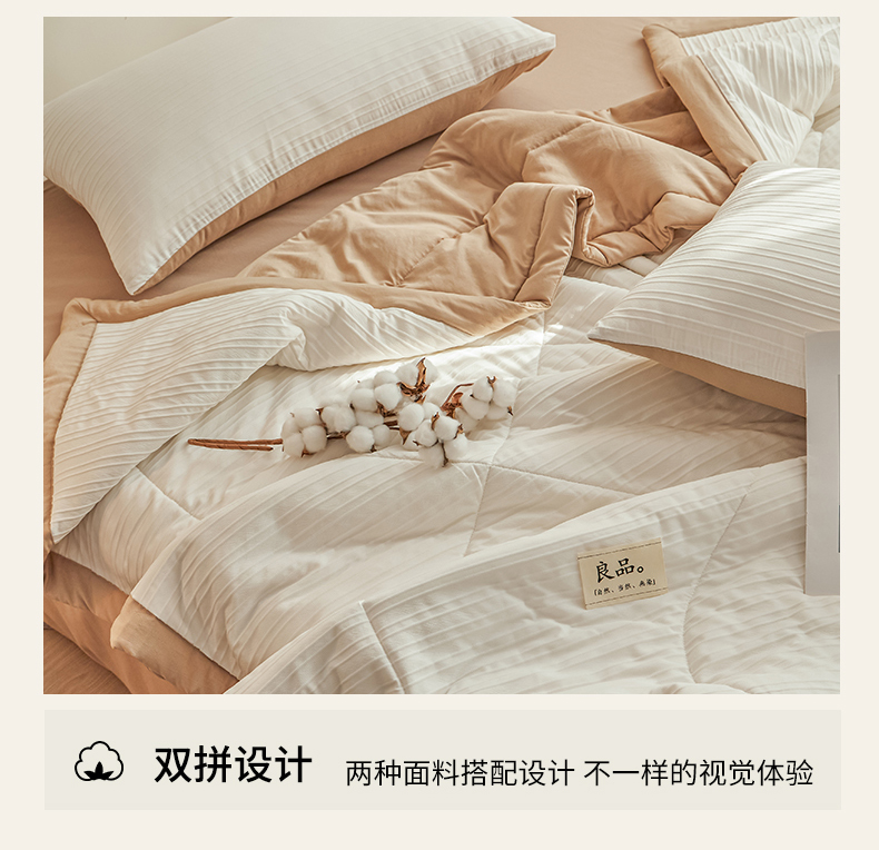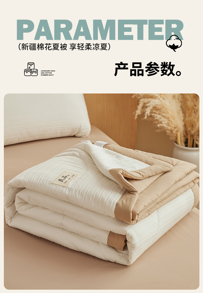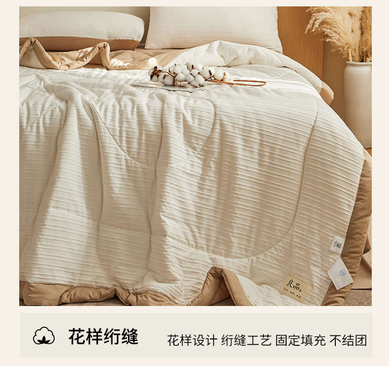 商品名称:尊妙被业 2026新款良品条白100%新疆棉花夏被 良品条白+咖