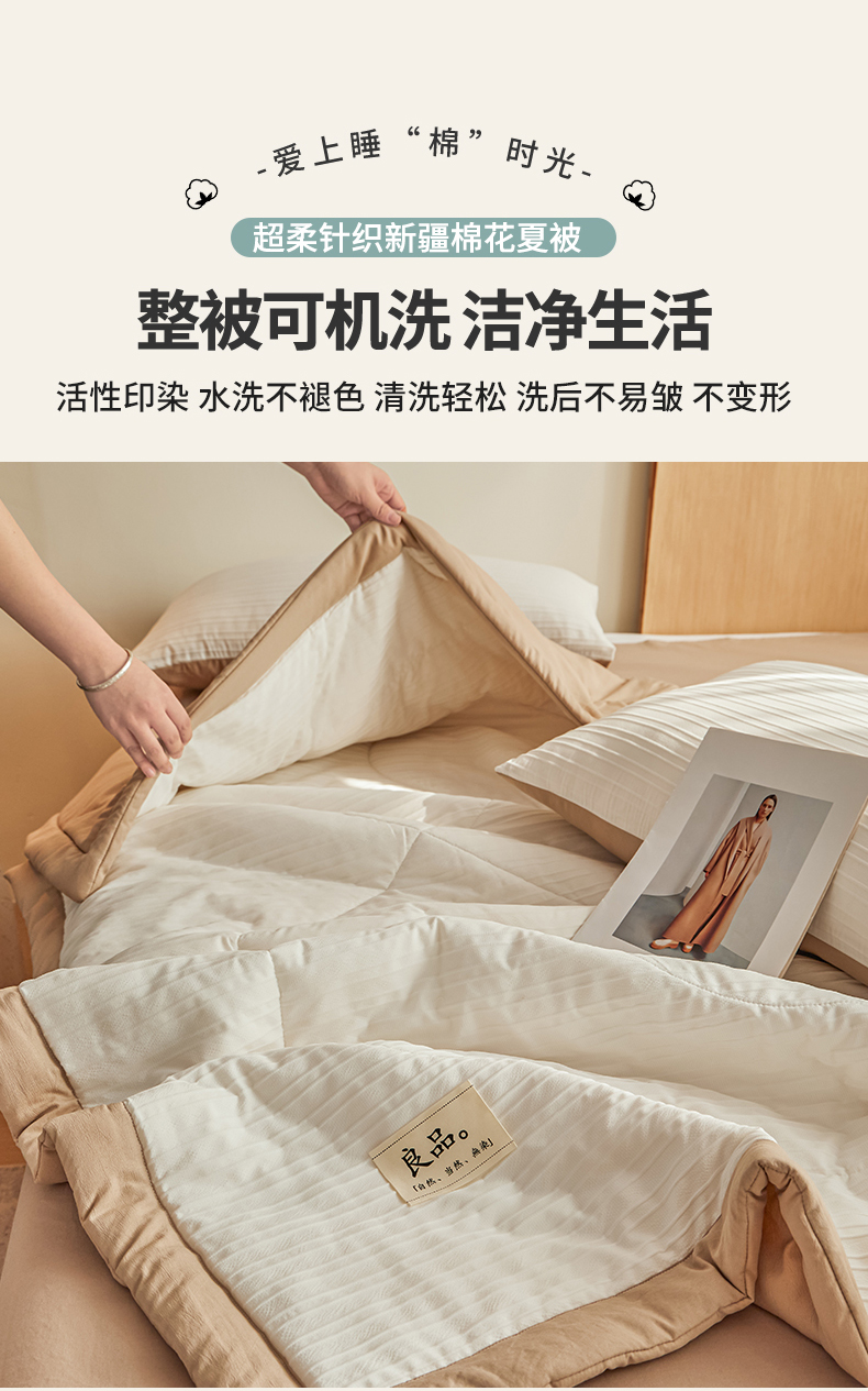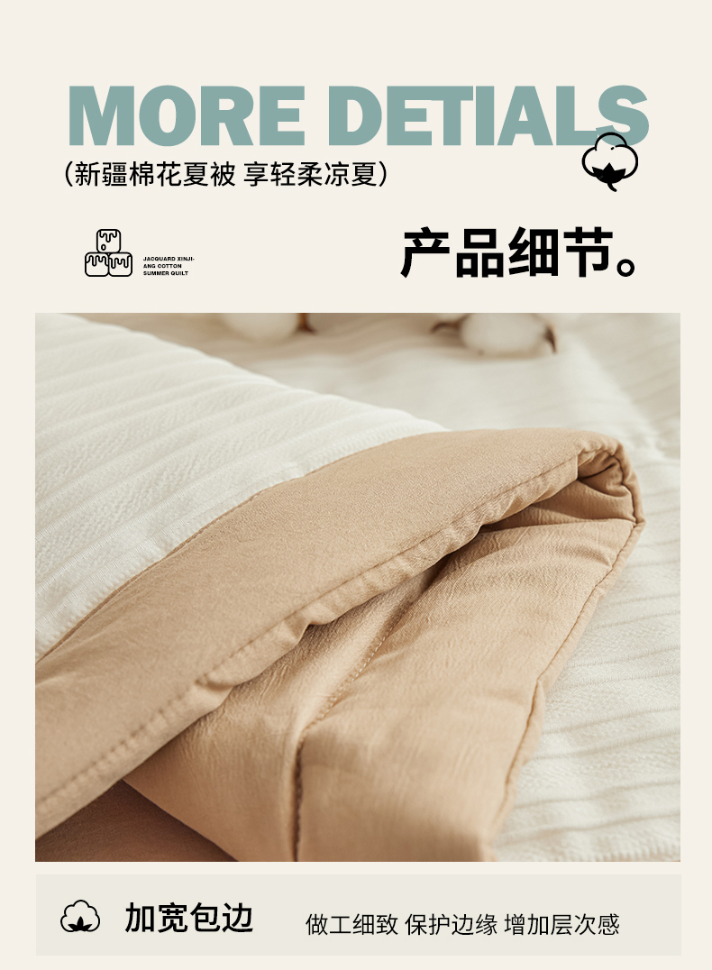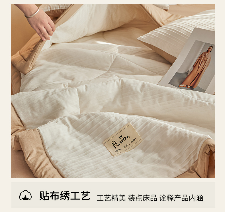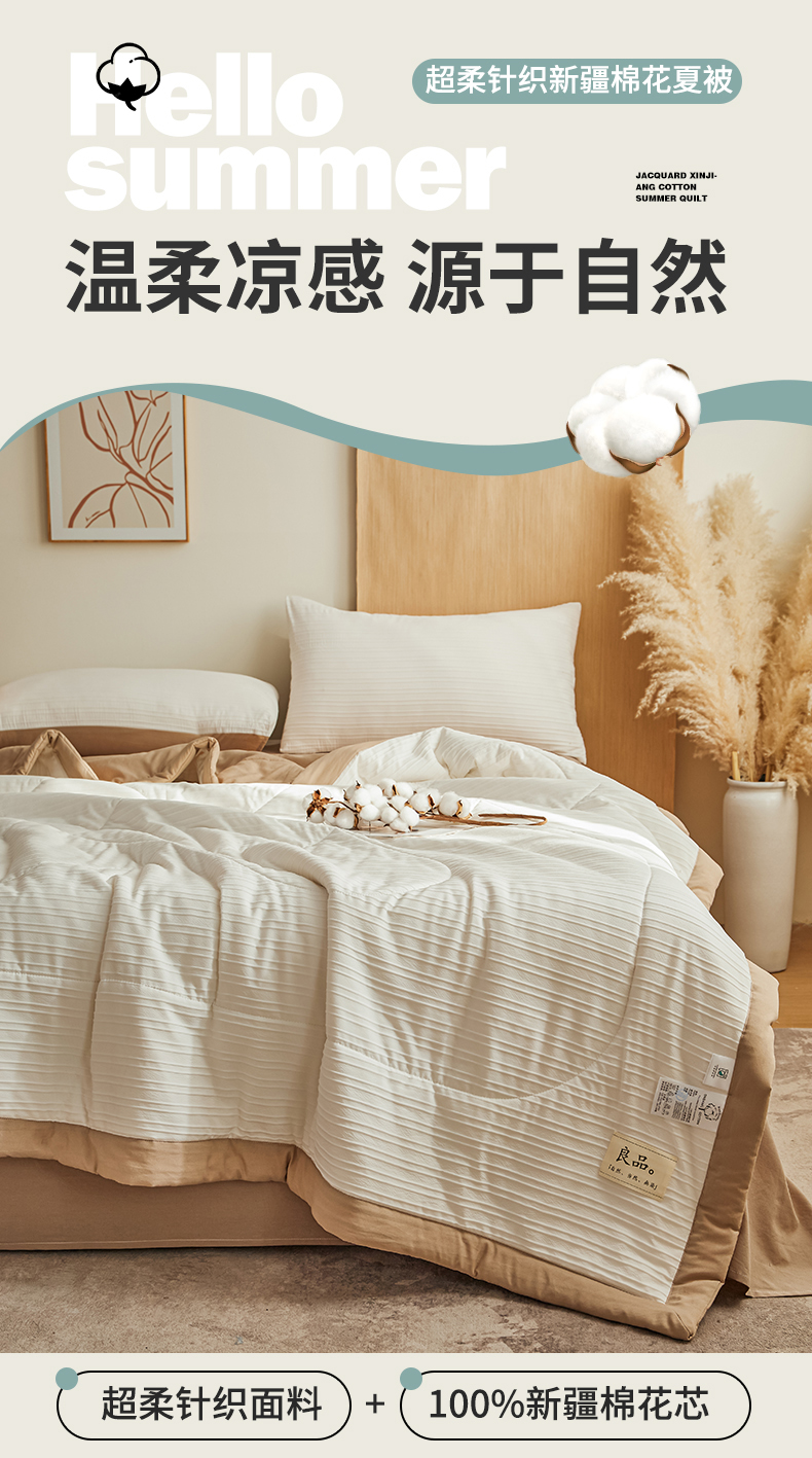 商品名称:尊妙被业 2026新款良品条白100%新疆棉花夏被 良品条白+咖
