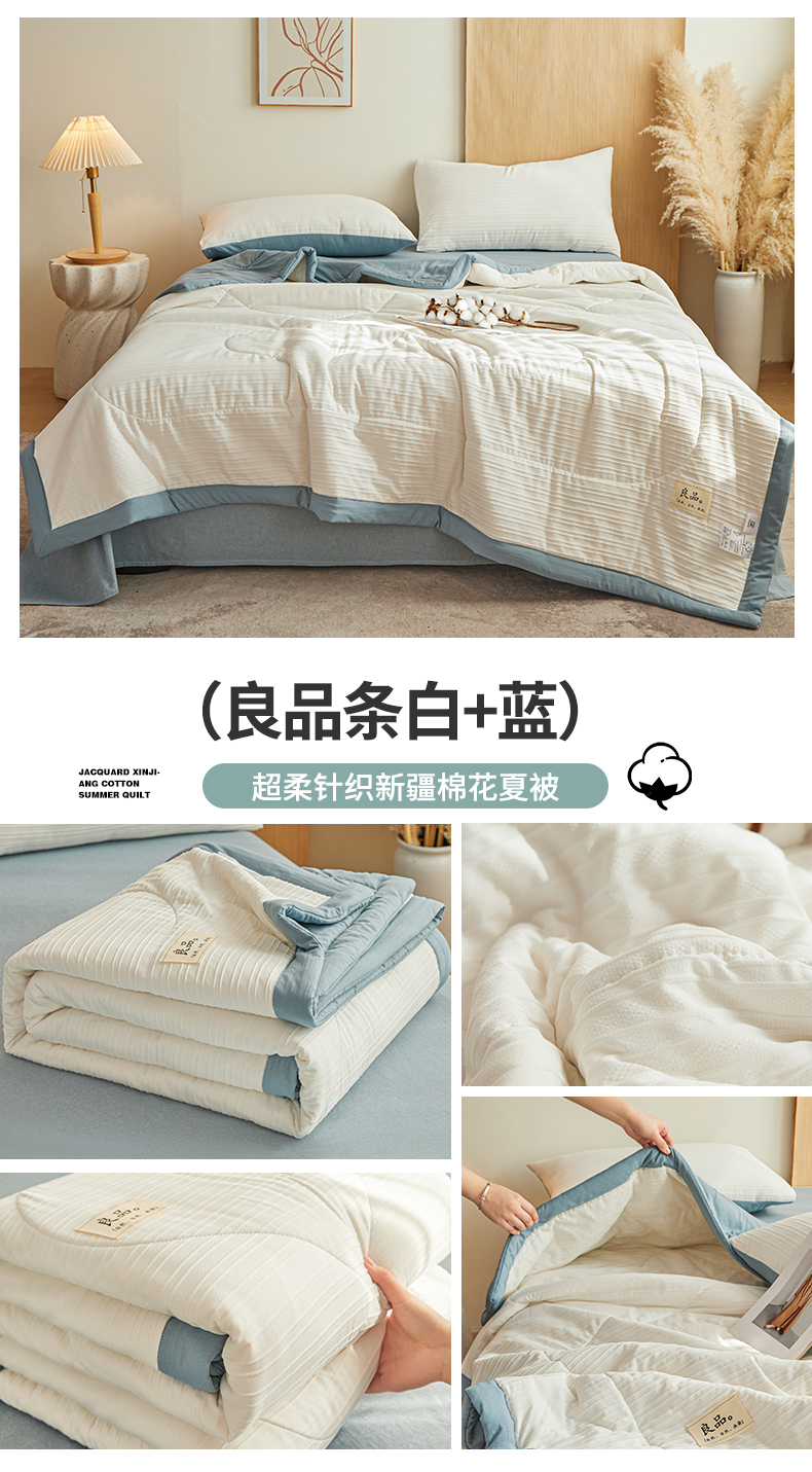 (总)尊妙被业 2026新款良品条白100%新疆棉花夏被,良品条白+粉,良品条白+咖,良品条白+蓝,良品条白+绿