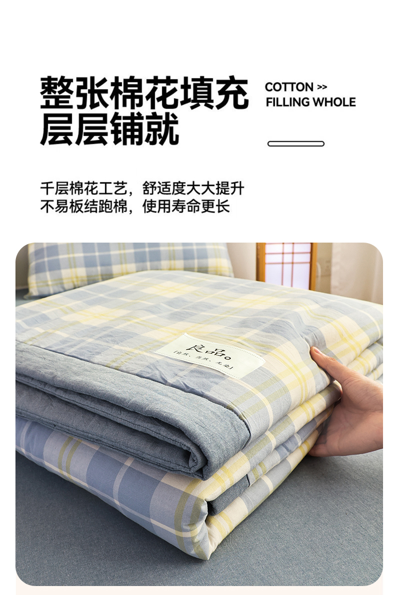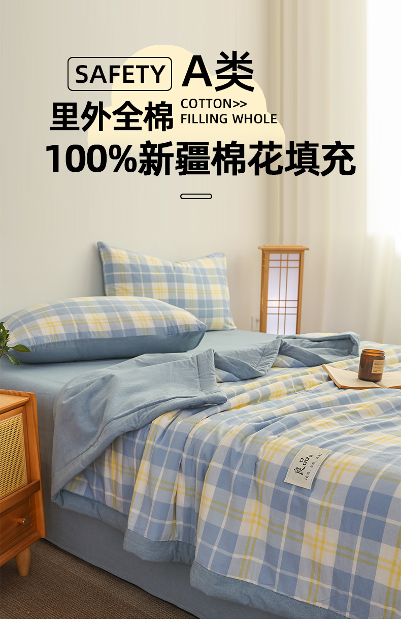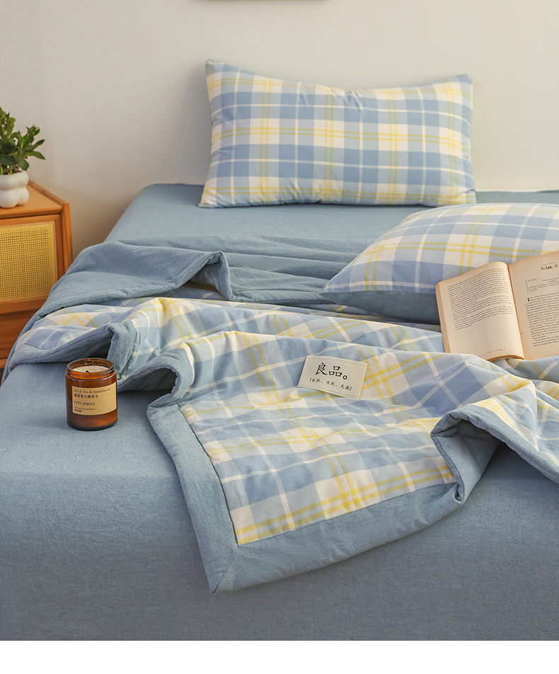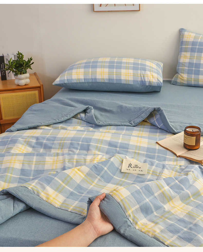 • 91家纺网 家纺一手货源 找家纺 尊妙被业 2026全棉色织水洗全棉棉花夏被 被子被芯 夏被四件套(格子款) 爱格兰