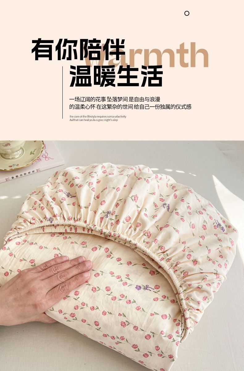 • 91家纺网 家纺一手货源 找家纺 圣比熊 2026新款A类云朵棉亲肤四季款床笠席梦思床罩全包床单三件套 花漾甜心