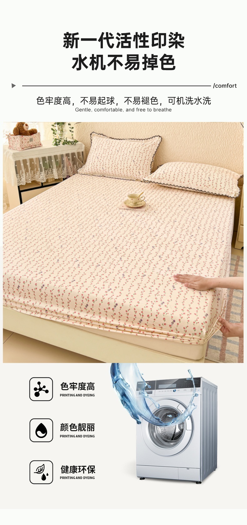 圣比熊 2026新款A类云朵棉亲肤四季款床笠席梦思床罩全包床单三件套 花漾甜心