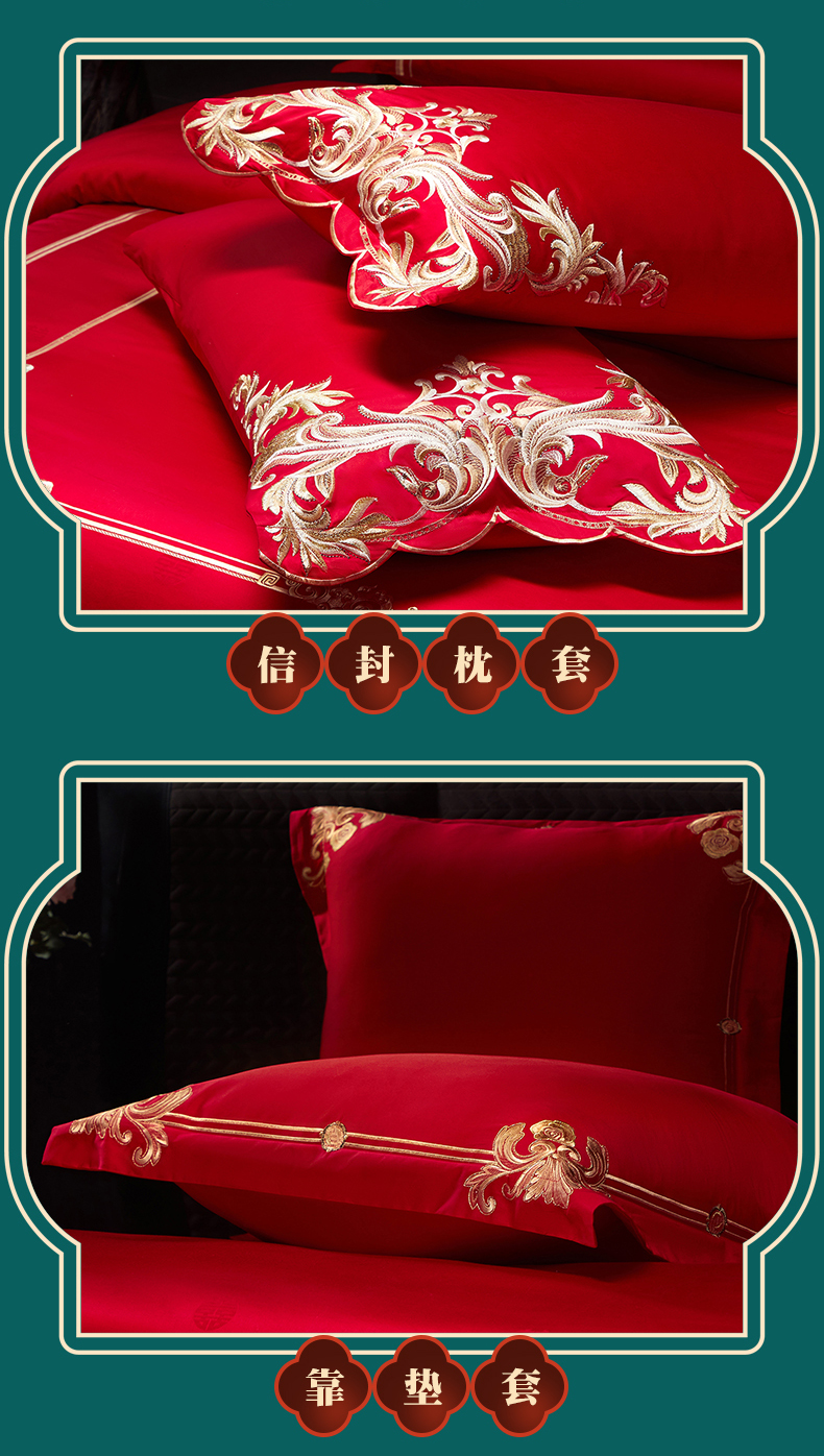 当前位置: 91家纺网 > 商品网购 > 床品套件 > 四件套 > 提花四件套 > 红番天婚庆 2025新款全棉纯棉提花刺绣四件套 贵族盛典-金