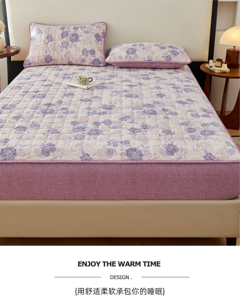 圣比熊 2026新款原麻夹棉床笠机洗家用防滑透气四季款加厚床罩床垫床单保护套三件套-新款 春风序