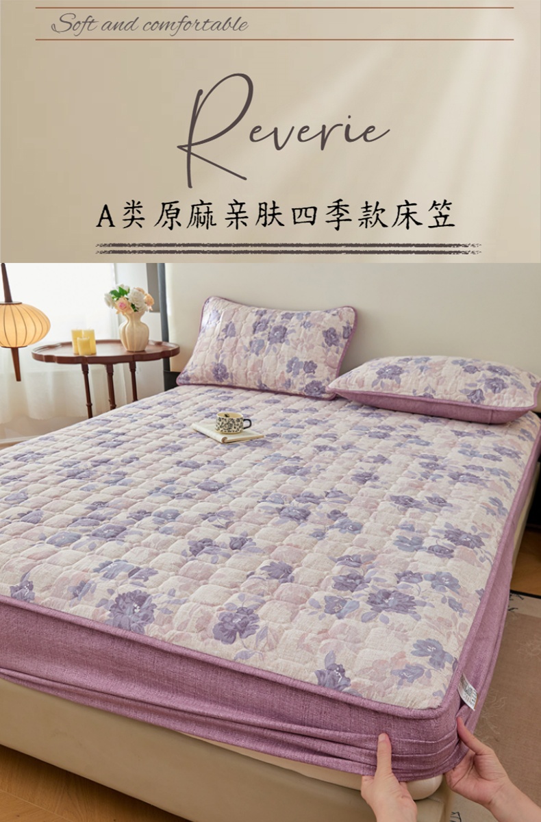• 91家纺网 家纺一手货源 找家纺 圣比熊 2026新款原麻夹棉床笠机洗家用防滑透气四季款加厚床罩床垫床单保护套三件套-新款 春风序