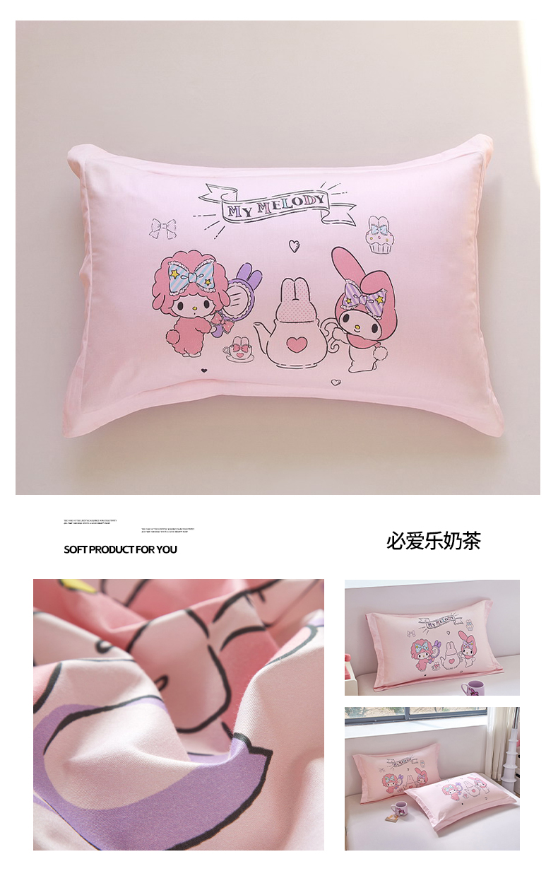 商品名称:蘭菲家纺 2026新款全棉三丽欧印花卡通单品枕套 必爱乐奶茶
