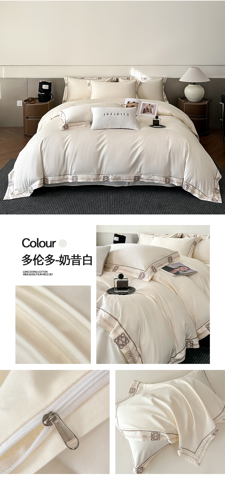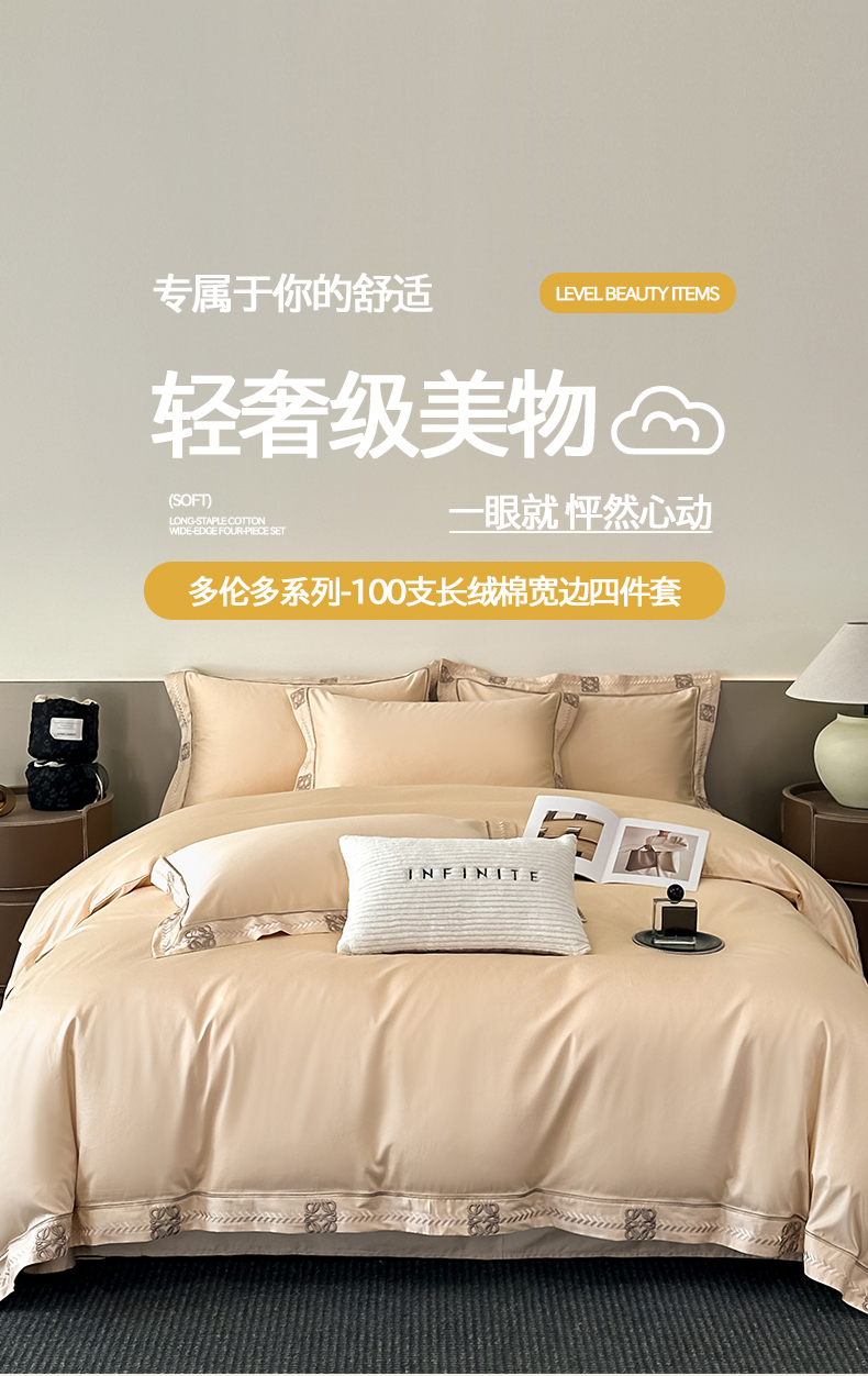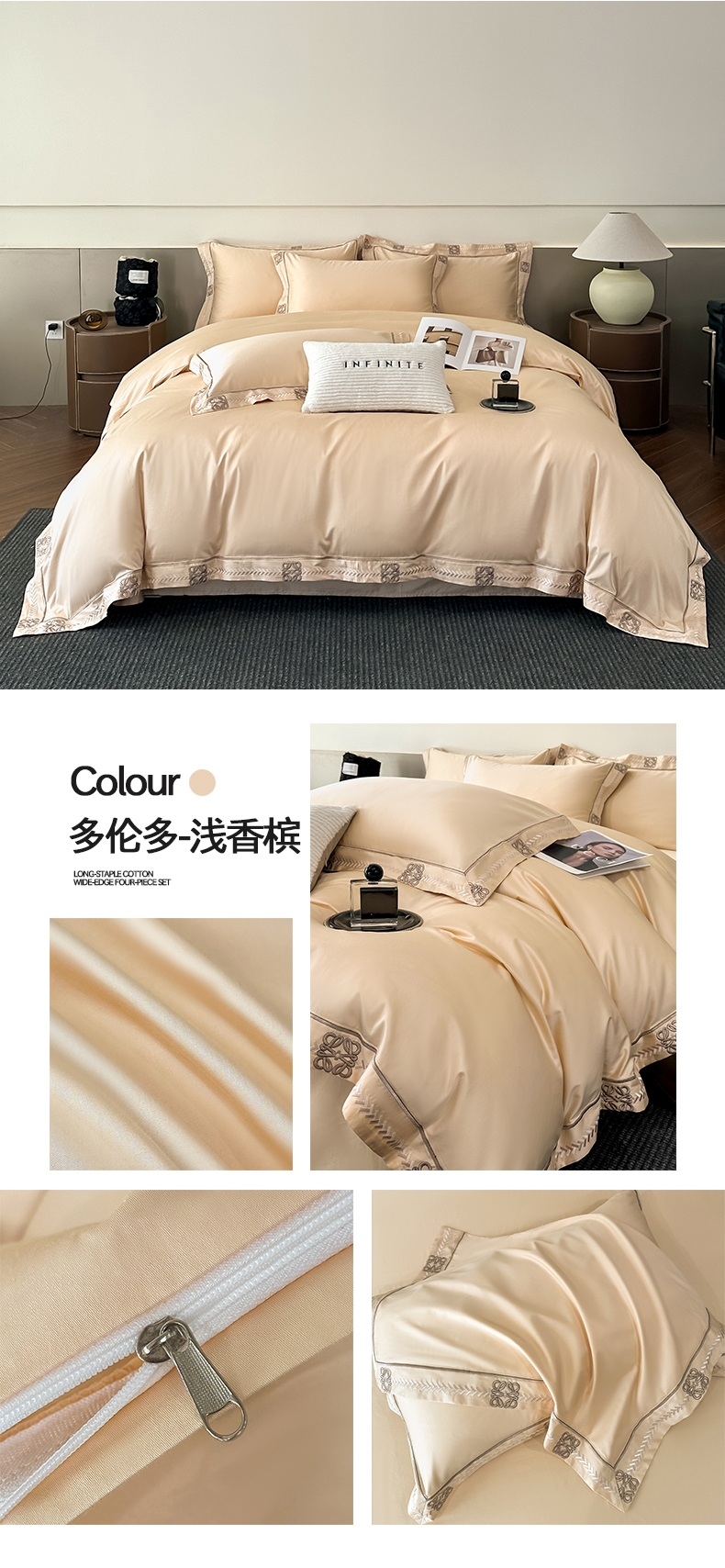 当前位置: 91家纺网 > 商品网购 > 床品套件 > 四件套 > 其它四件套 > 置顶家纺 2026春夏新款多伦多系列亲肤刺绣拼角四件套 多伦多-浅香槟